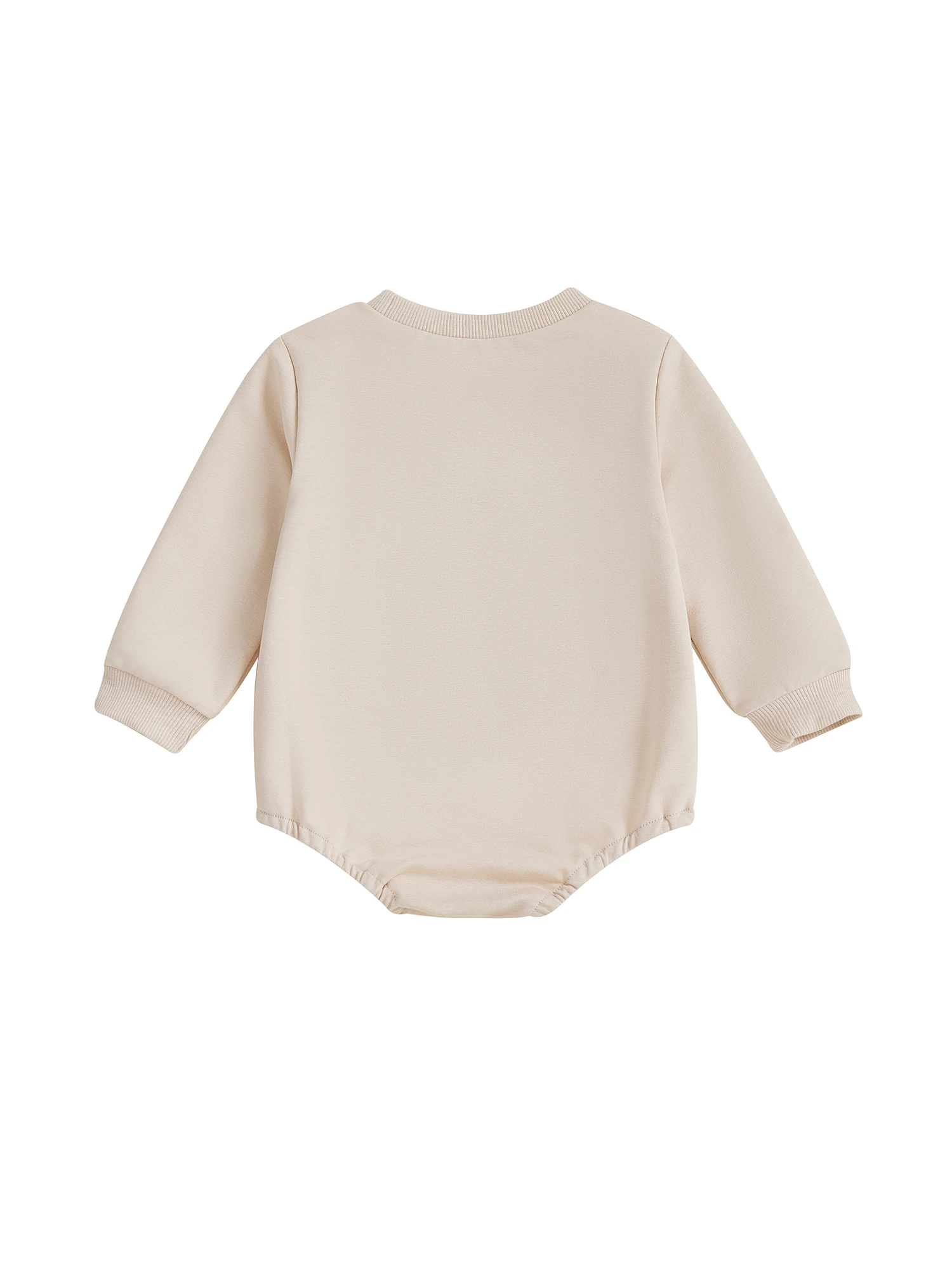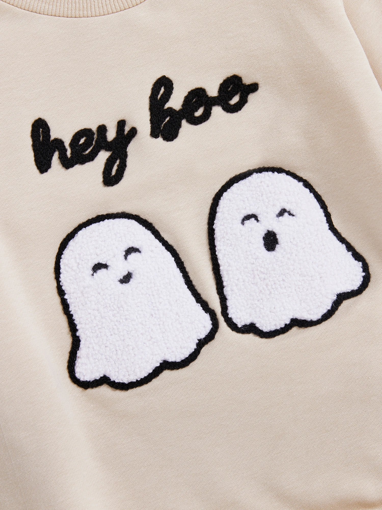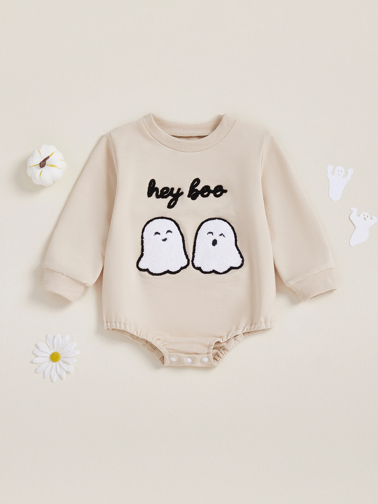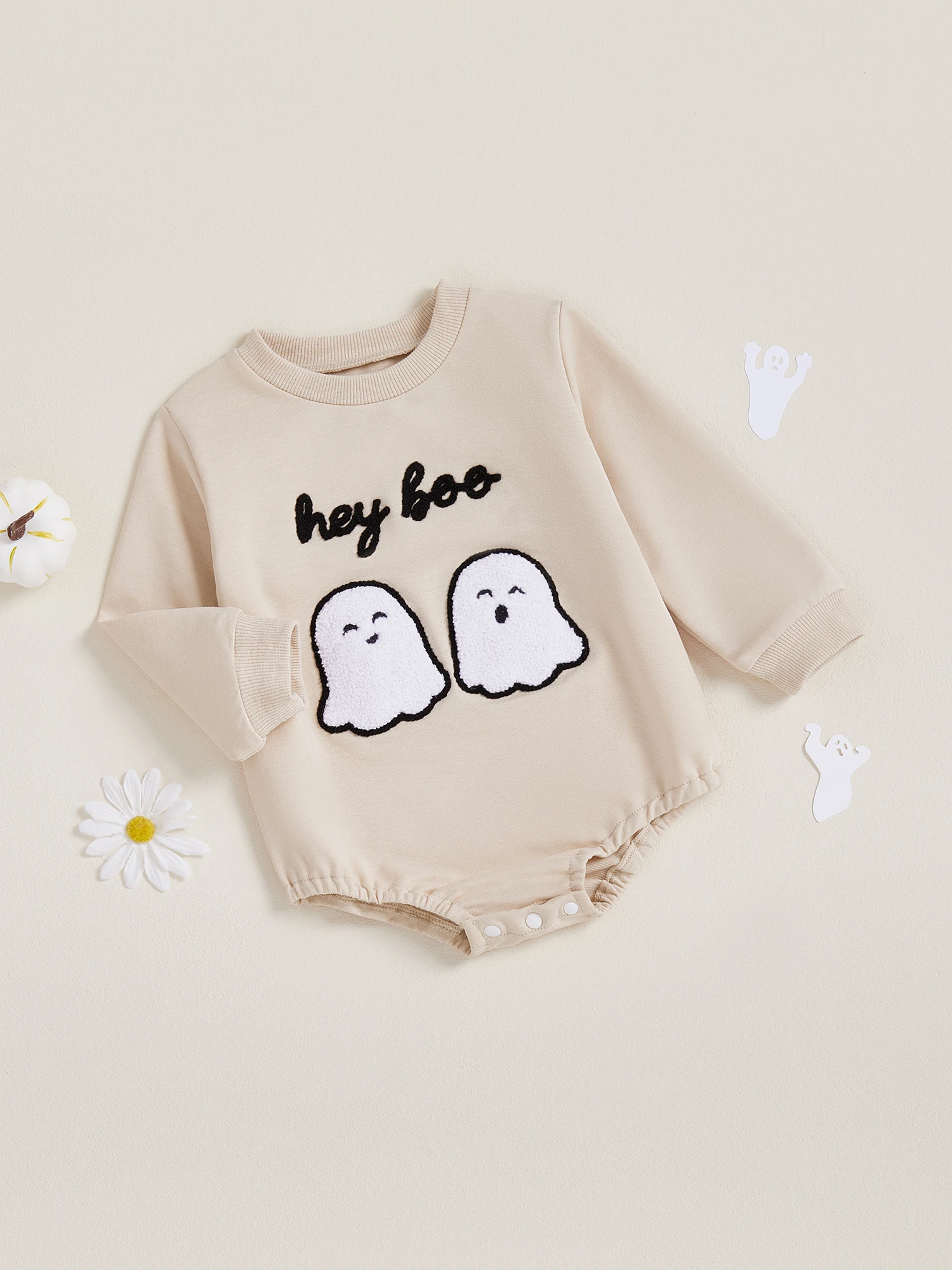 0-18M Newborn Baby Halloween Romper Letter Ghost Embroidered Crew Neck Long Sleeve Jumpsuit for Fall