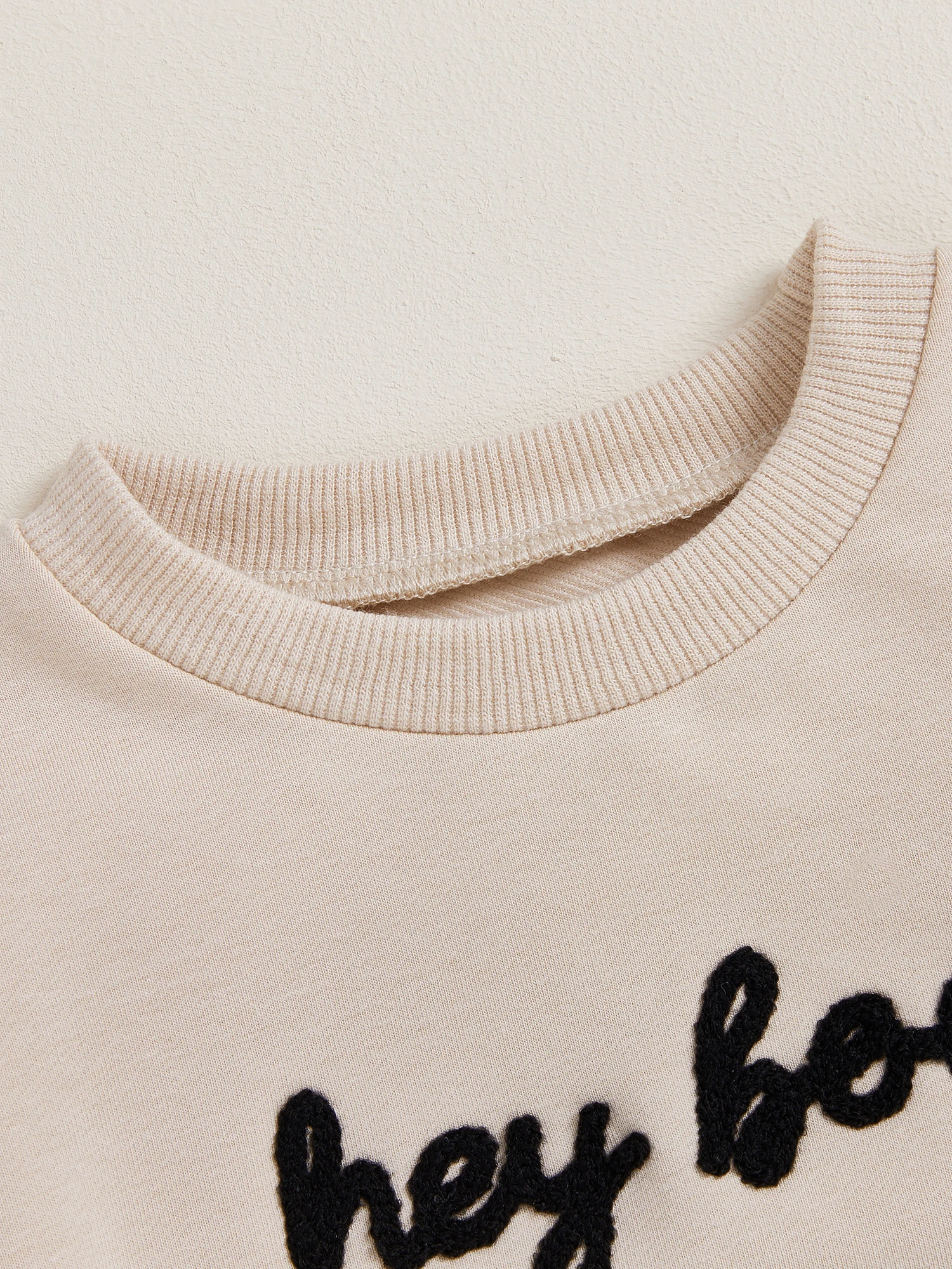 Baby Halloween Romper Letter Ghost Embroidered Crew Neck Long Sleeve Jumpsuit for FallSize (cm)