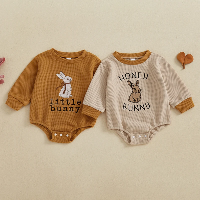 0-24M Baby Girls Boys Sweatshirts Rompers Easter Clothes Rabbit Letter Embroidery Long Sleeve Spring Bodysuits Jumpsuits