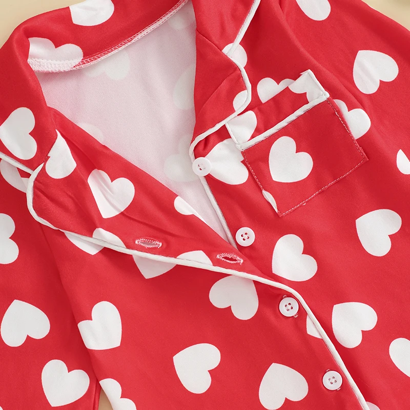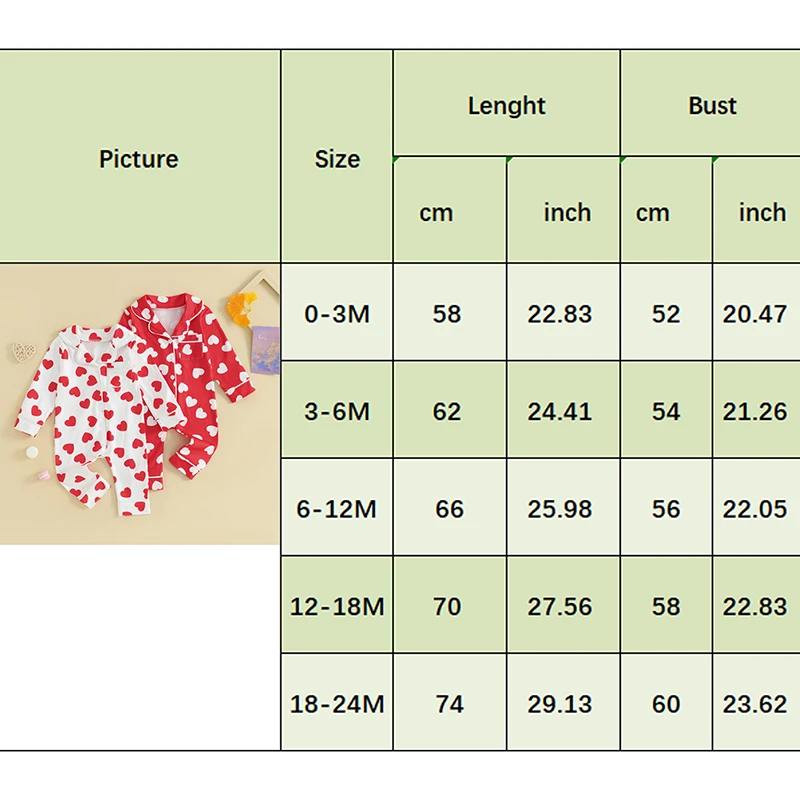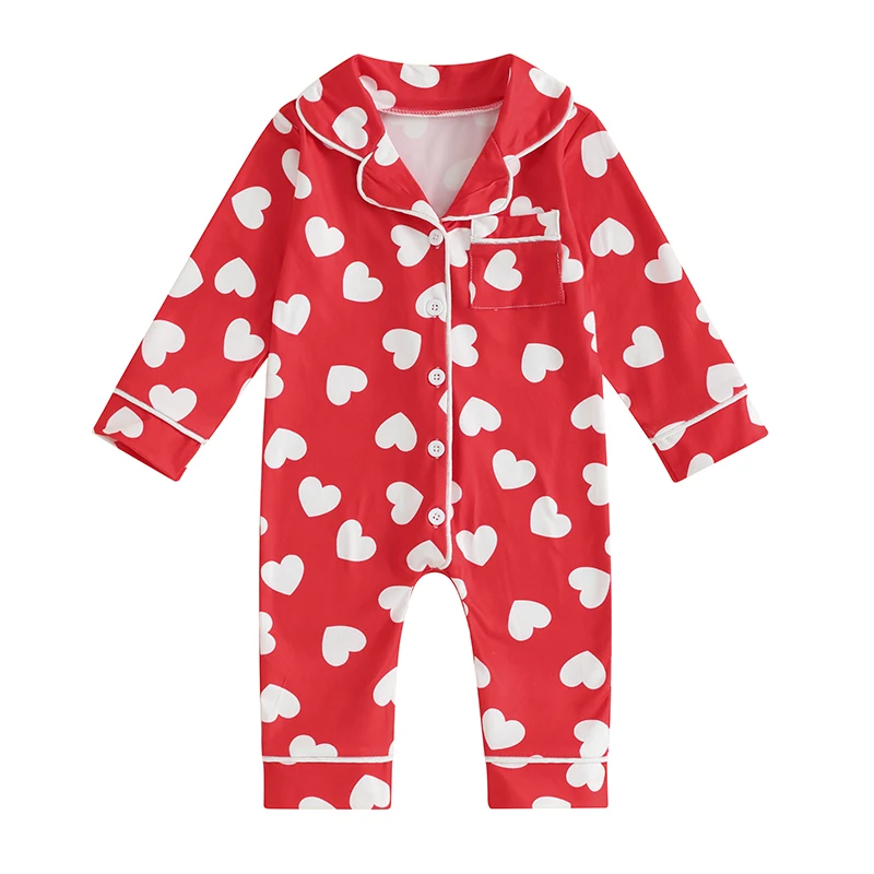 0-24M Baby Pajamas Jumpsuits Heart Print Lapel Button Up Long Sleeve Romper Boys Girls Sleepwear Newborn Infant Clothes Homewear