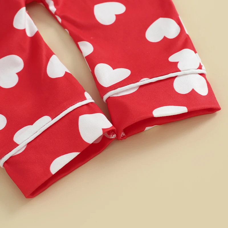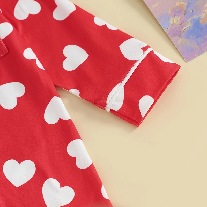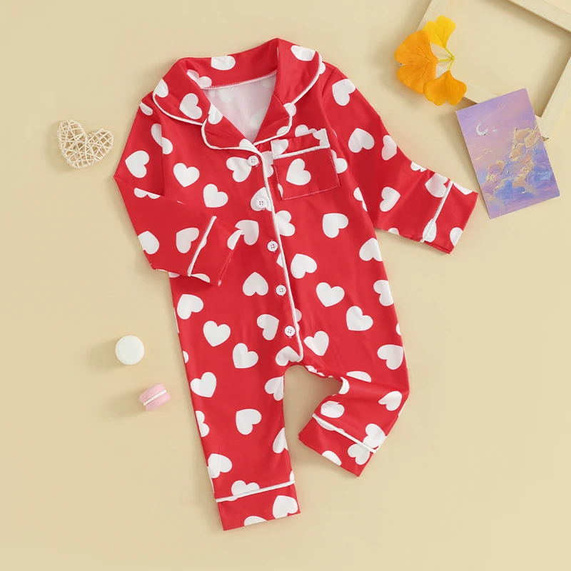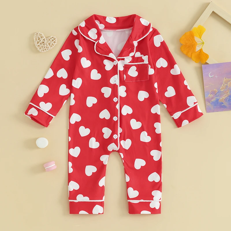 Baby Boys Girls Pajamas Jumpsuits Long Sleeve Lapel Collar Heart Print Button Up Rompers Newborn Clothes