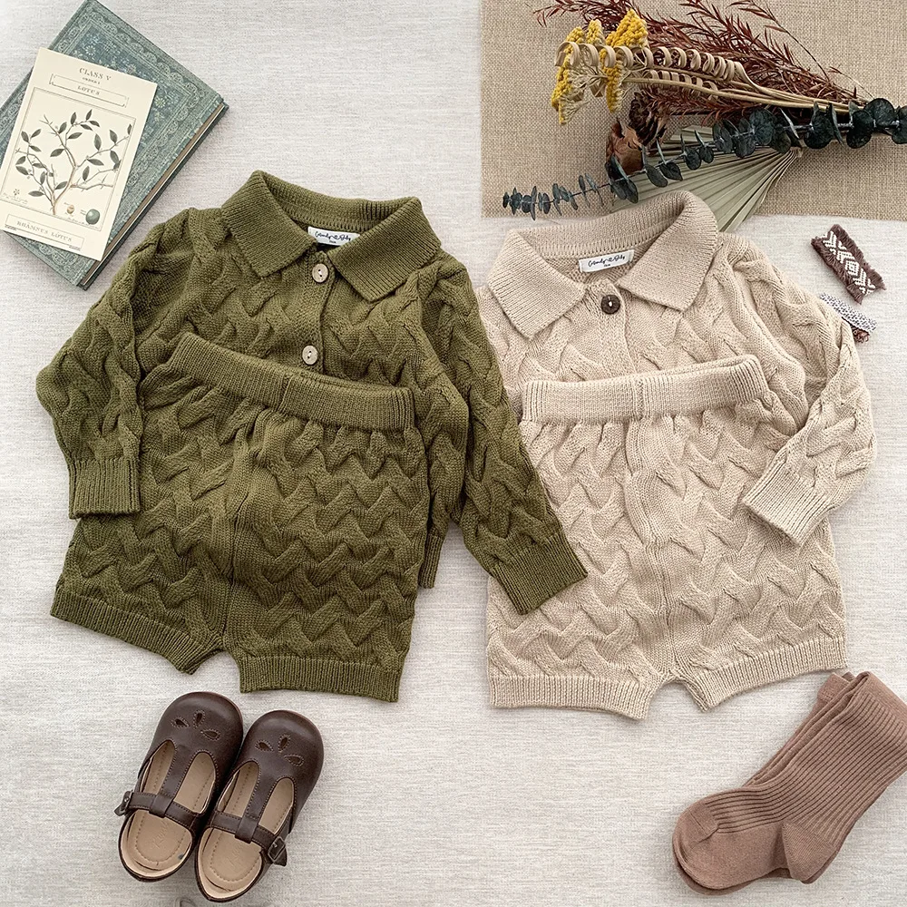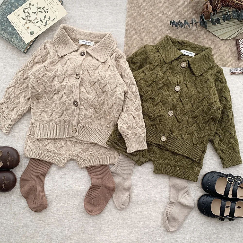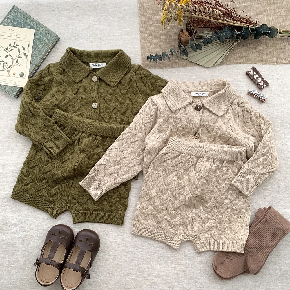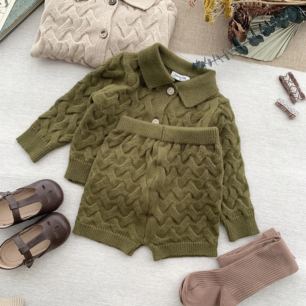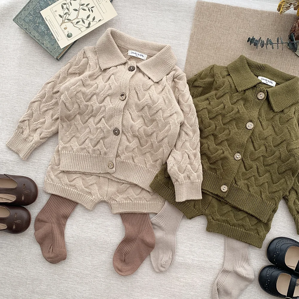 Knit Sweater Cardigan + Shorts Suit Baby Clothes Suit