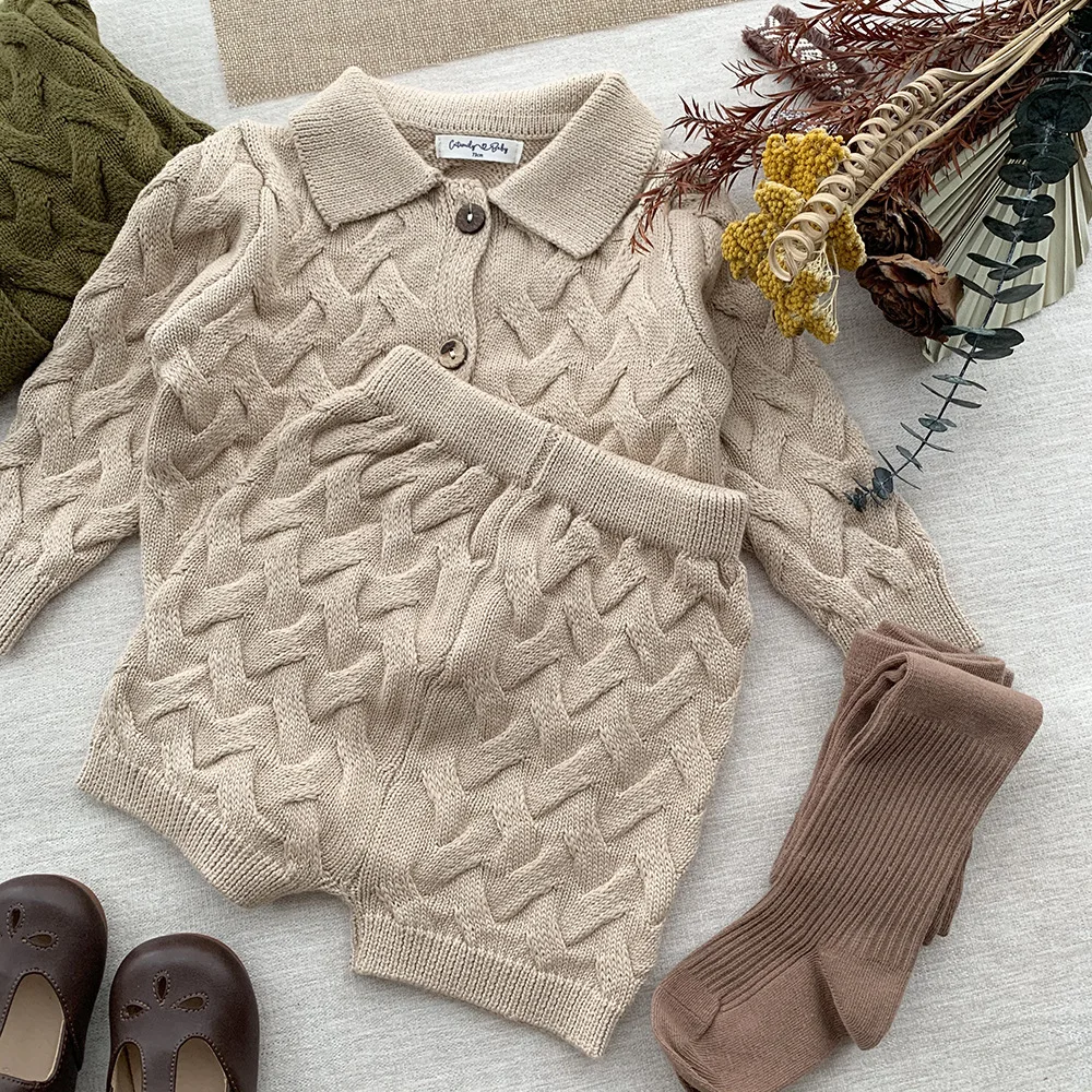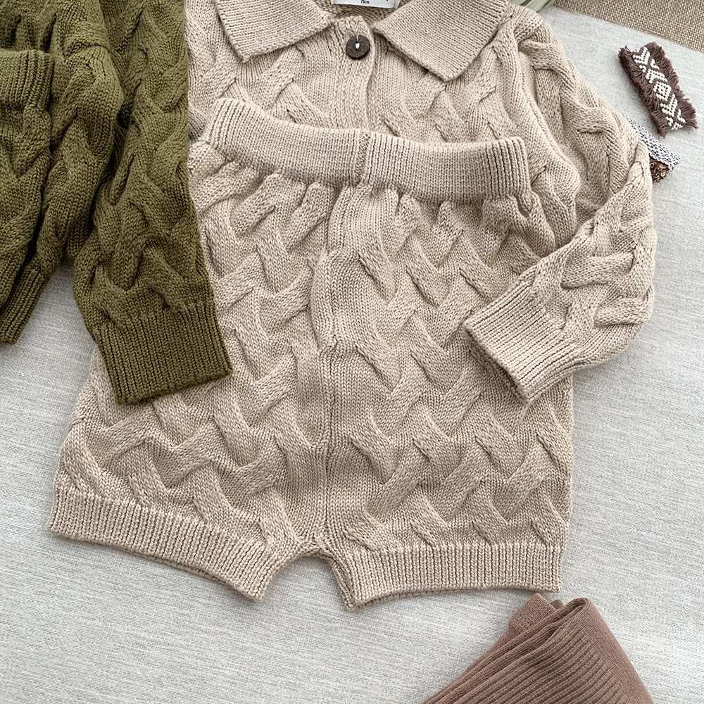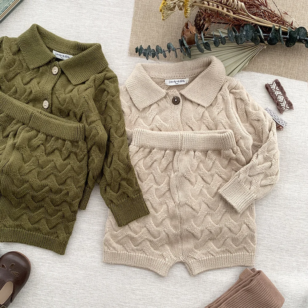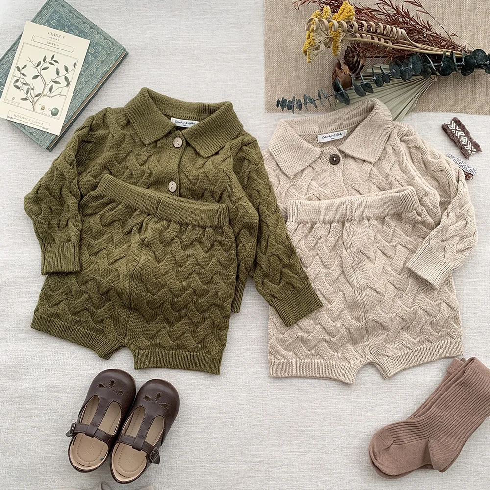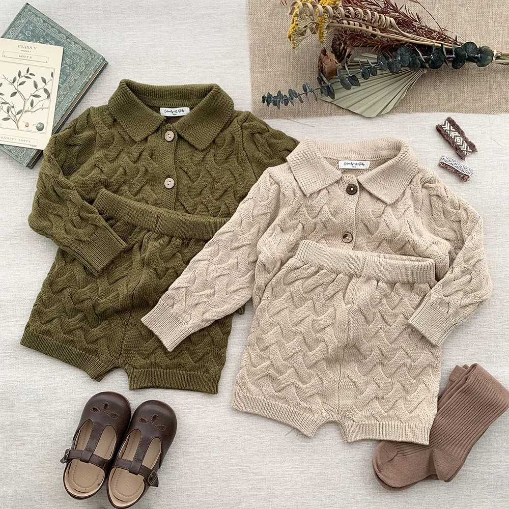 Knit Sweater Cardigan + Shorts Suit Baby Clothes Suit