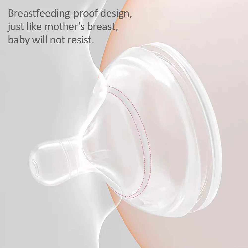 1. A bottle designed specifically for babies aged 0-3 years old, made of food grade silicone material, soft and bite resistant, restoring the authenticity of breast milk, without sinking, and with smooth water flow