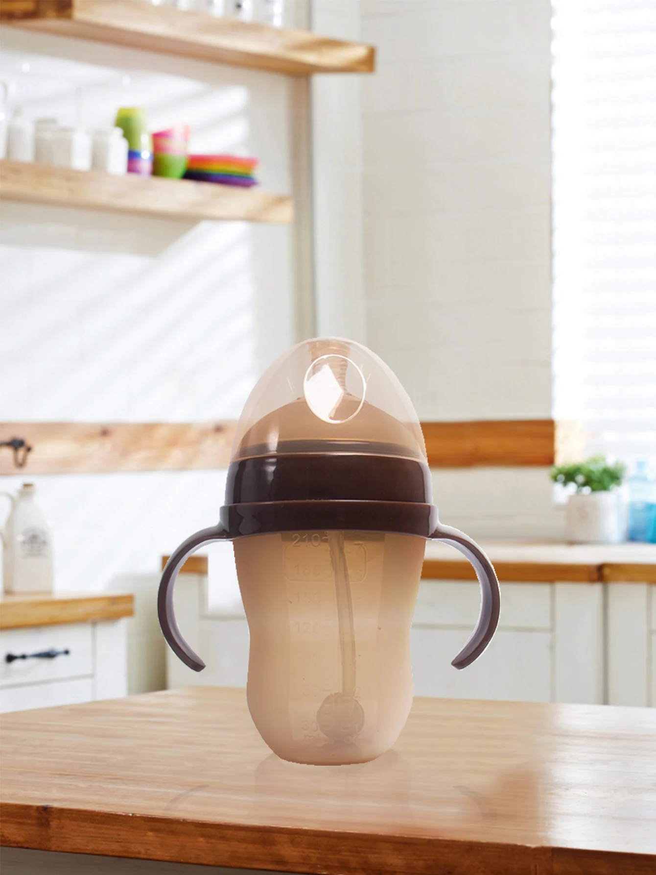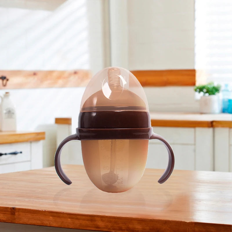 1Pc Silicone Baby Bottle 150ml/240ml Soft Durable against drops Big Mouth Pacifier Head Silicone with Handle and Gravity Ball