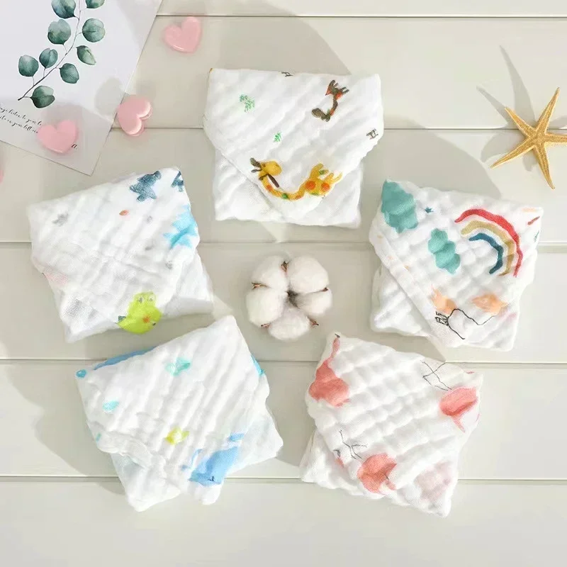 1pcs/5pcs Baby Towels 25*25CM 6 Layers Cotton Muslin Soft Infant Hand Towel Handkerchief Bathing Washcloth Newborn Baby Items