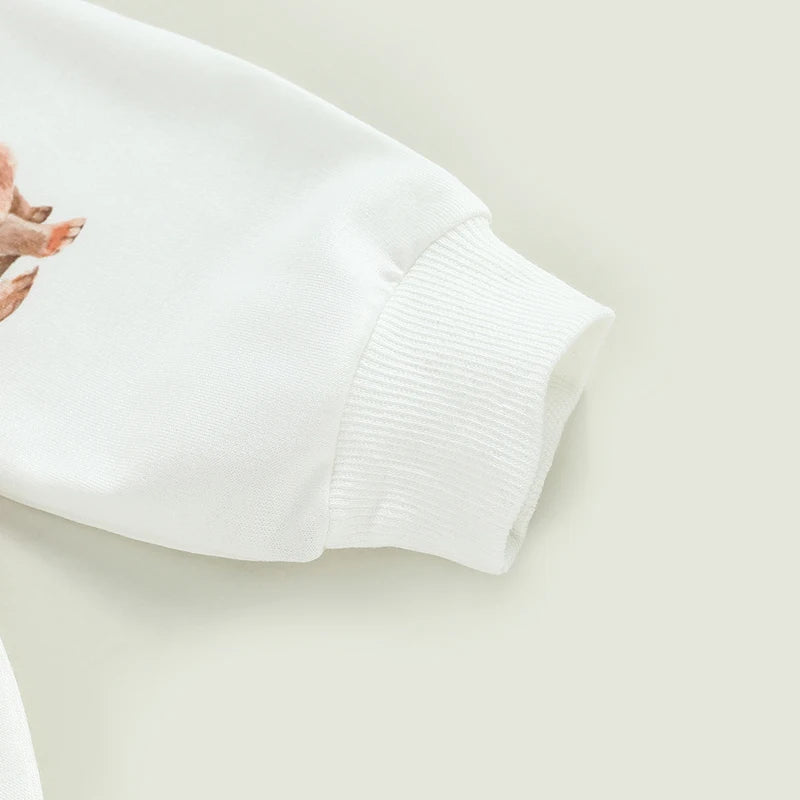 Easter Toddler Girls Clothes Set Rabbit Print Long Sleeve Crew Neck Sweatshirts and Solid Color Flare Pants 2Pcs SuitSize chart:(cm/inch)