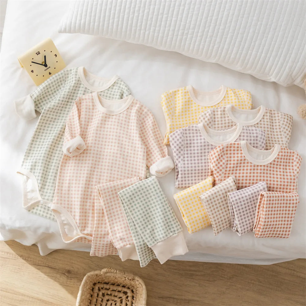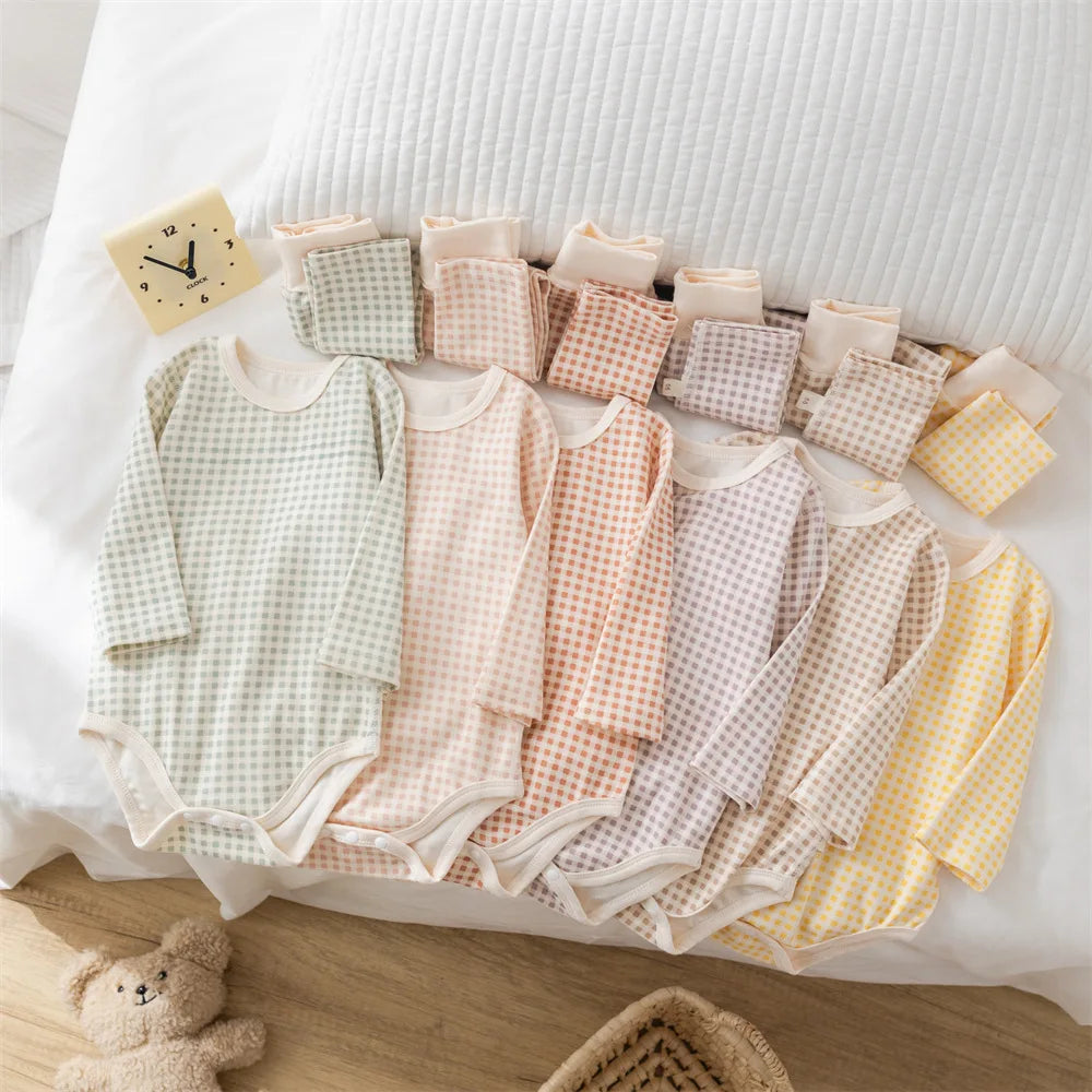 2024 Autumn Baby Pajamas Set 0-2Y Toddler Boys Plaid Bodysuit+Pants Underwear 2Pcs Girls Homewear Suit Toddler Sleep Clothing