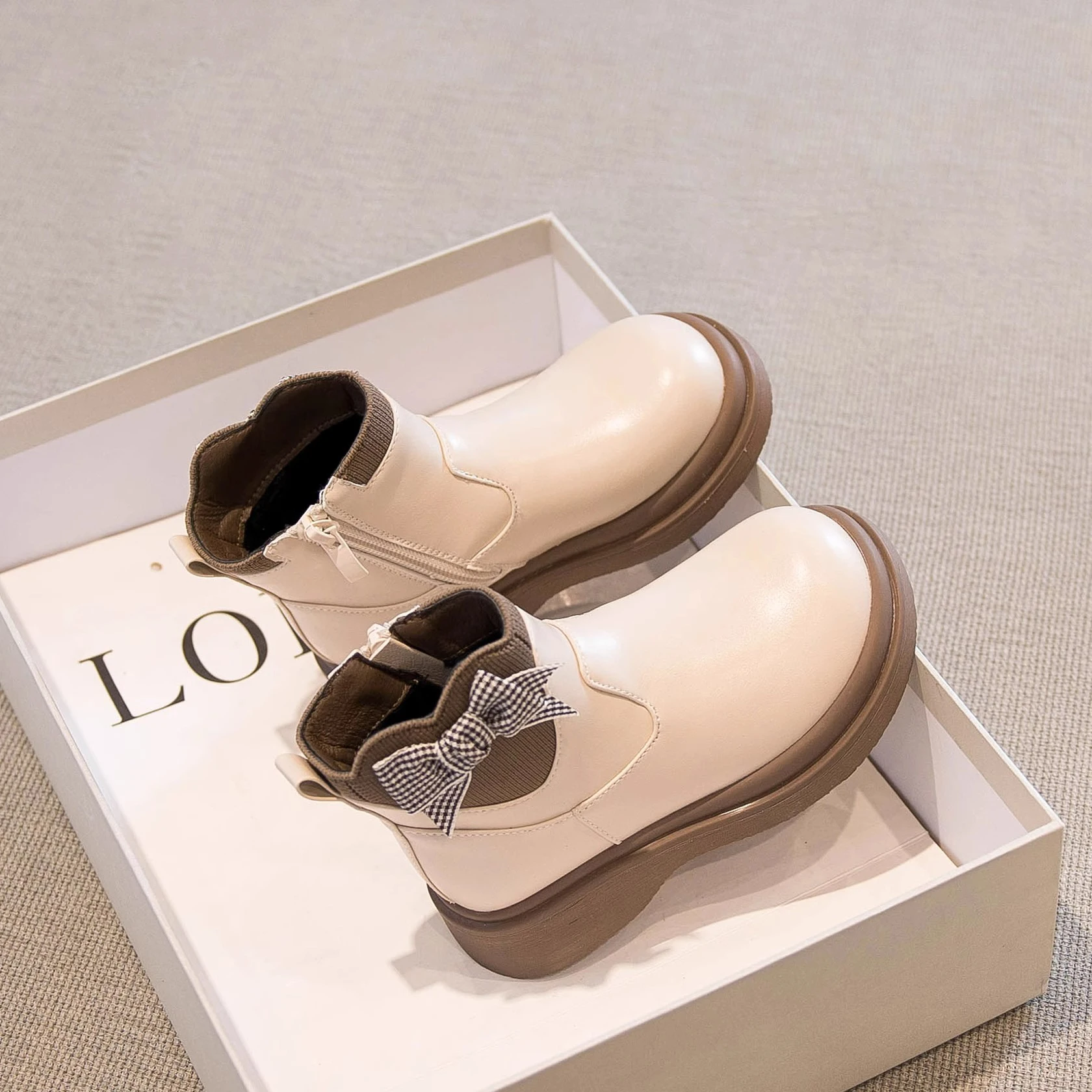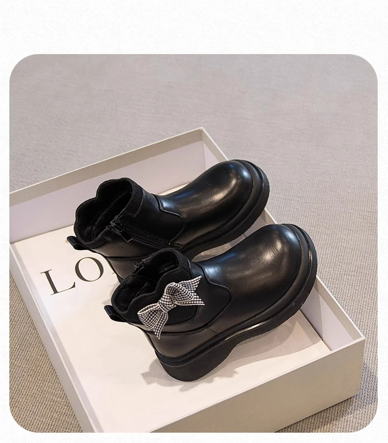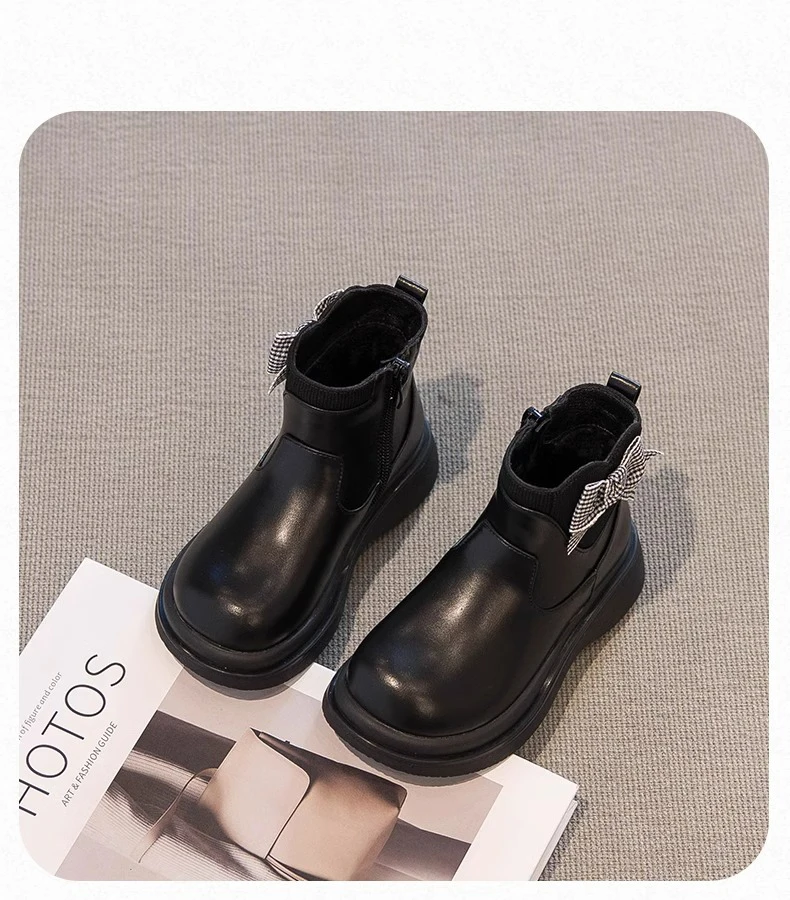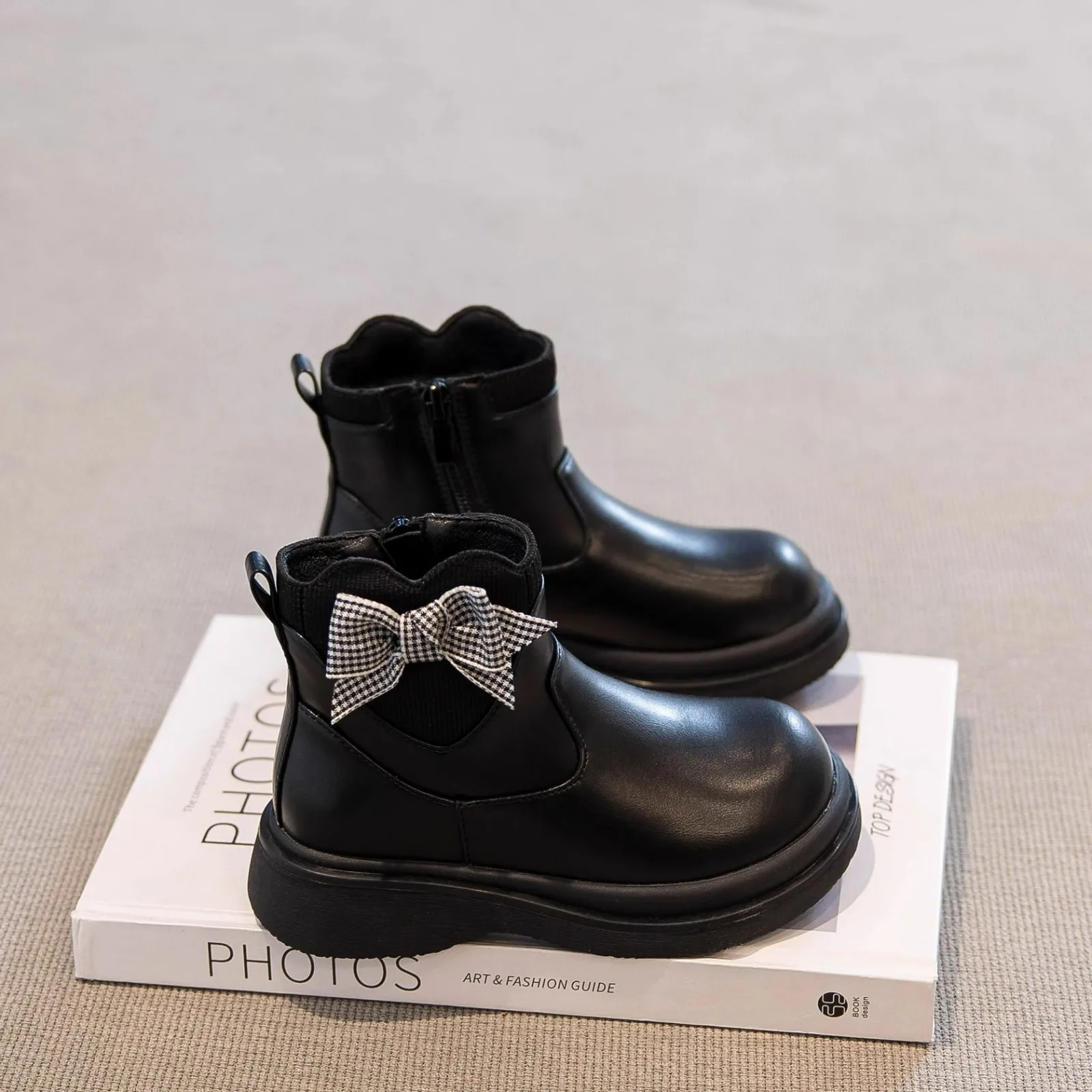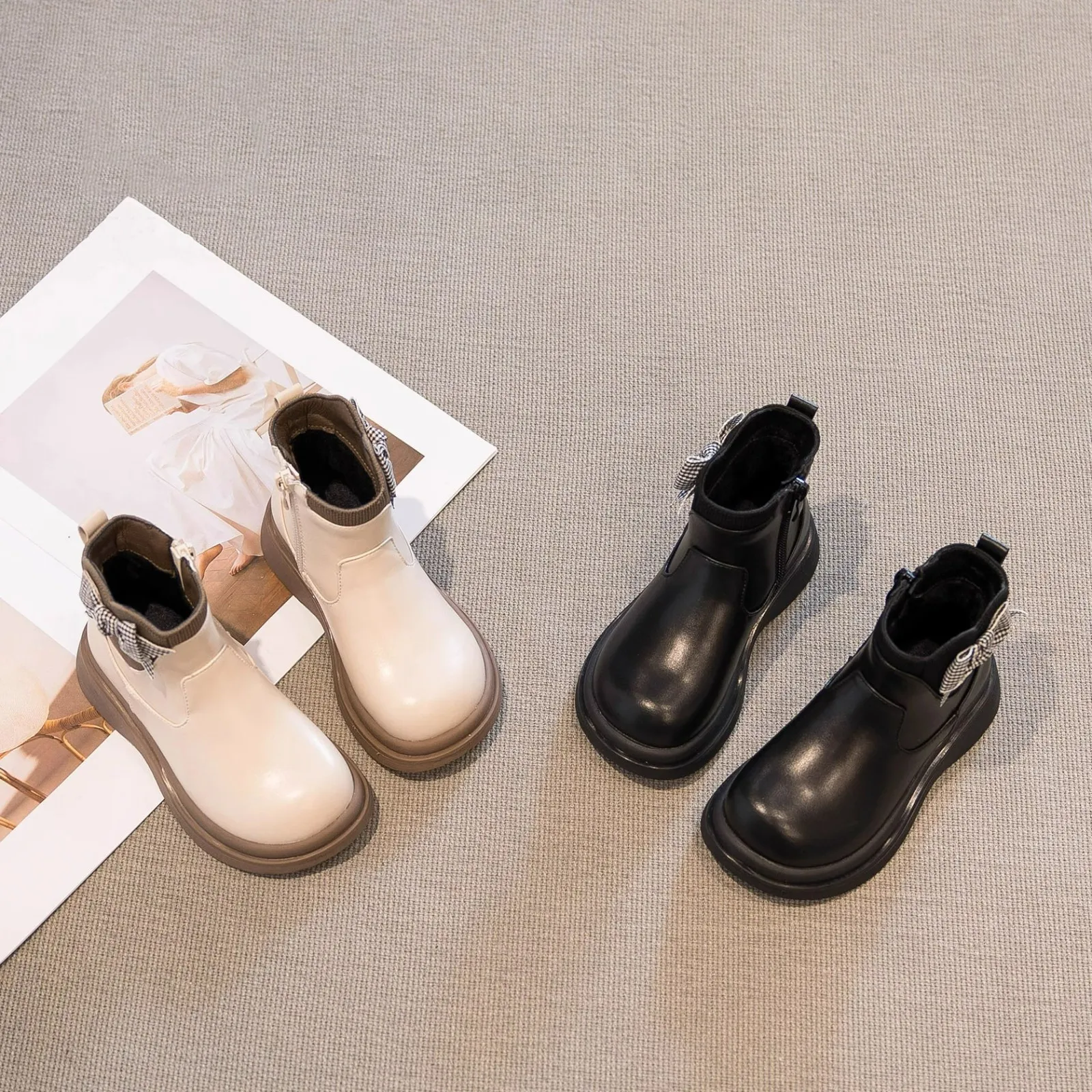 2025 Autumn Winter New Children's Boots Fashionable Single Boots for Girls Children' Boots Girls' Short Boots with Fleece