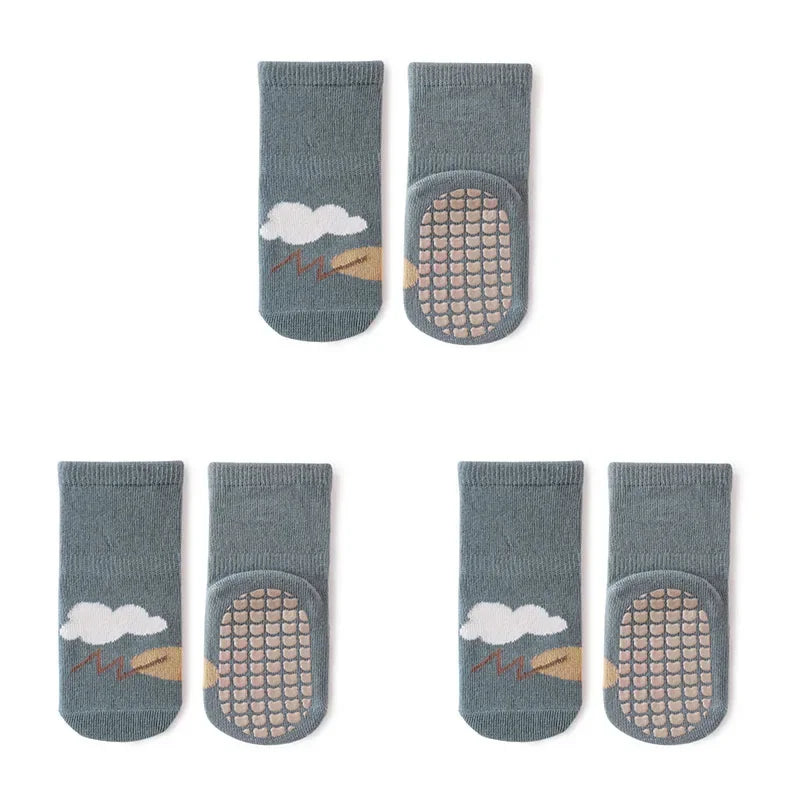3 Pairs Newborn Baby Socks Cartoon Toddler Anti Slip Cotton Floor Socks for Girl Boy Cute Unisex Accessories Four Season