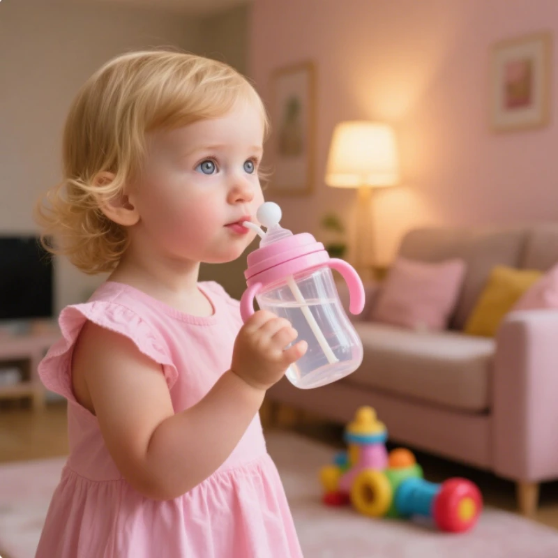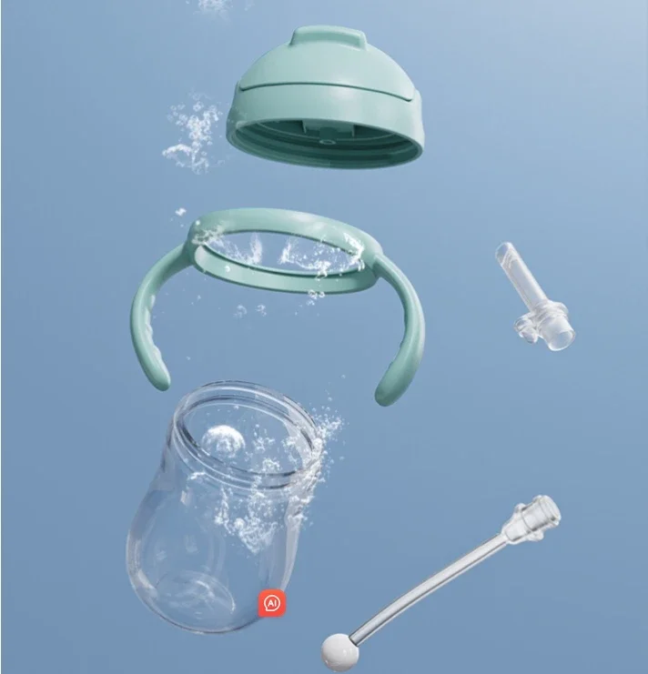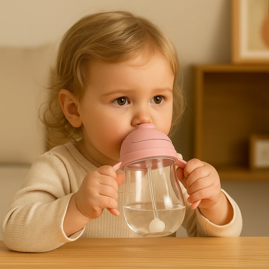 300ML Children's Drinking Water Bottle with Straw Baby Portable Bottle with Handle Outdoor Training Cup Mother Baby Products