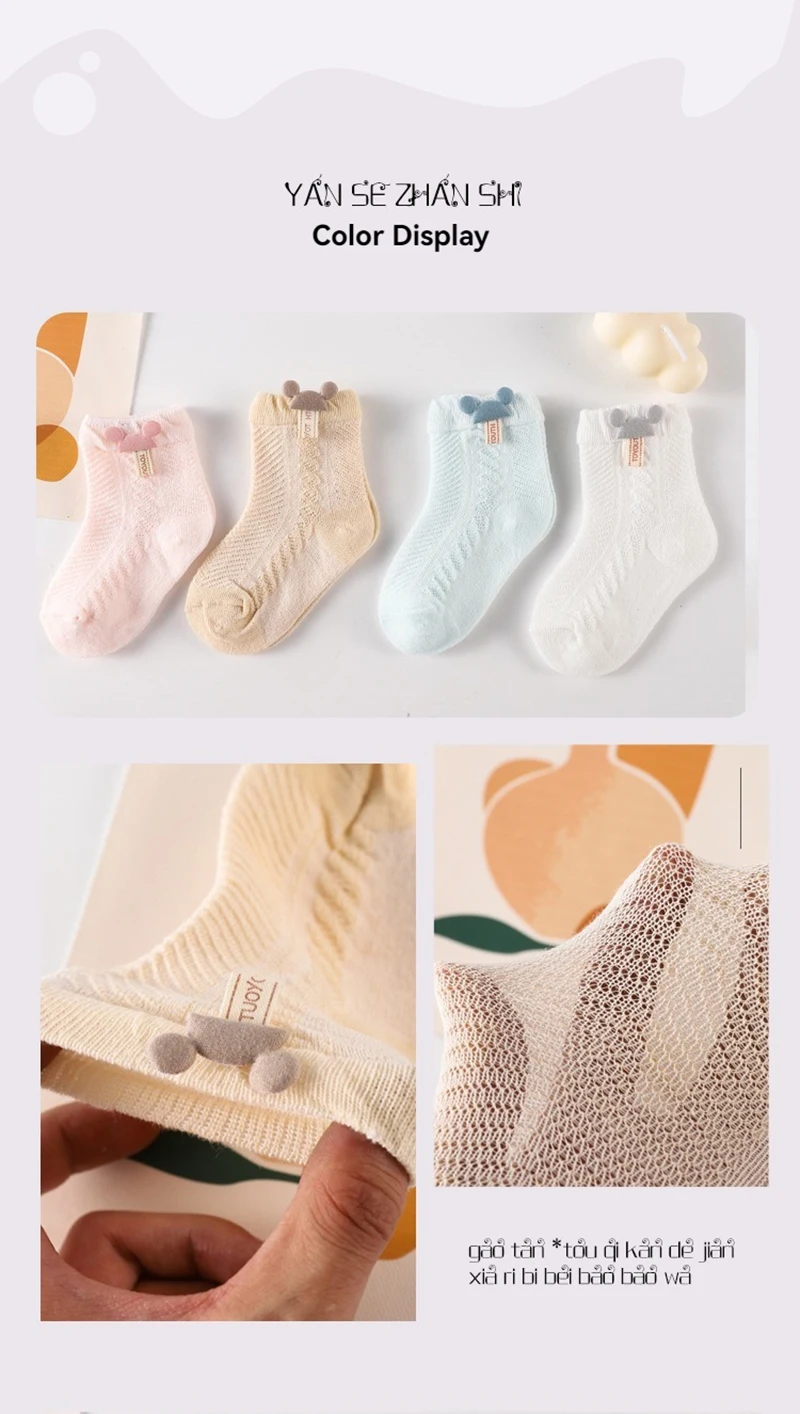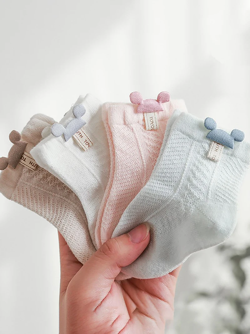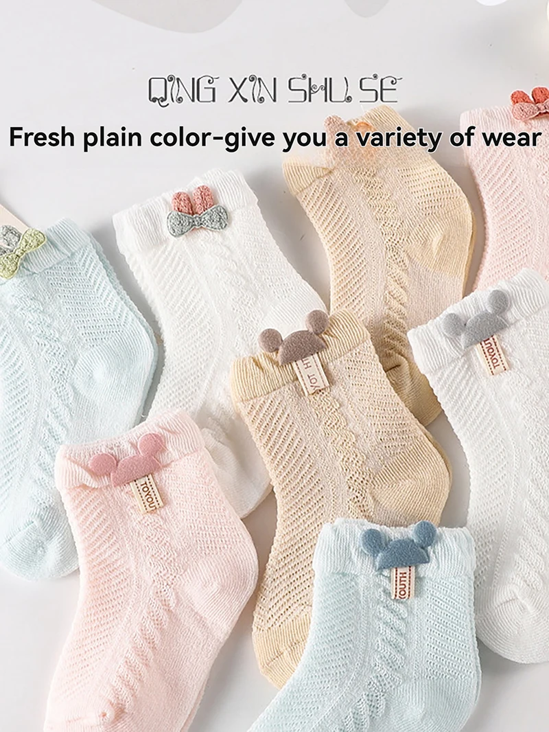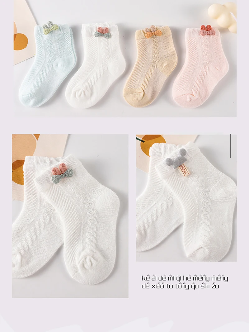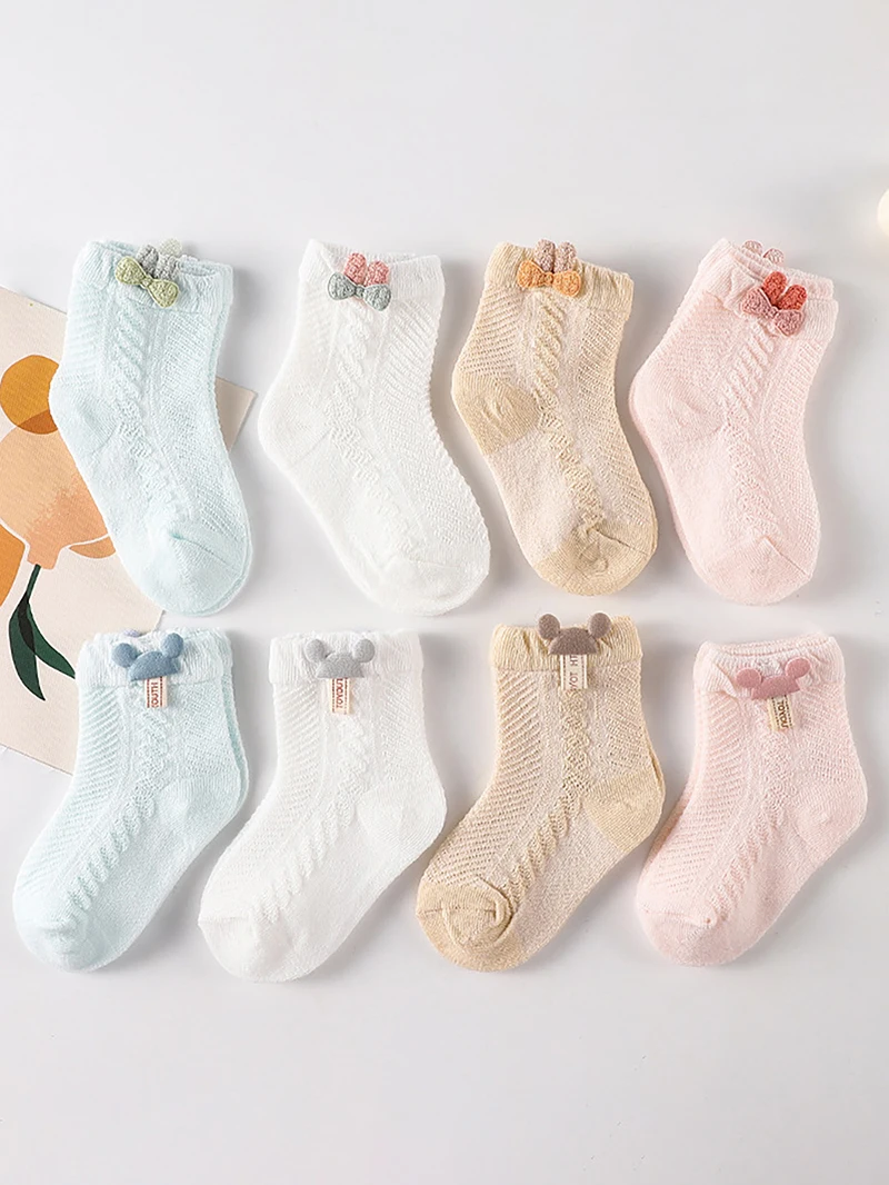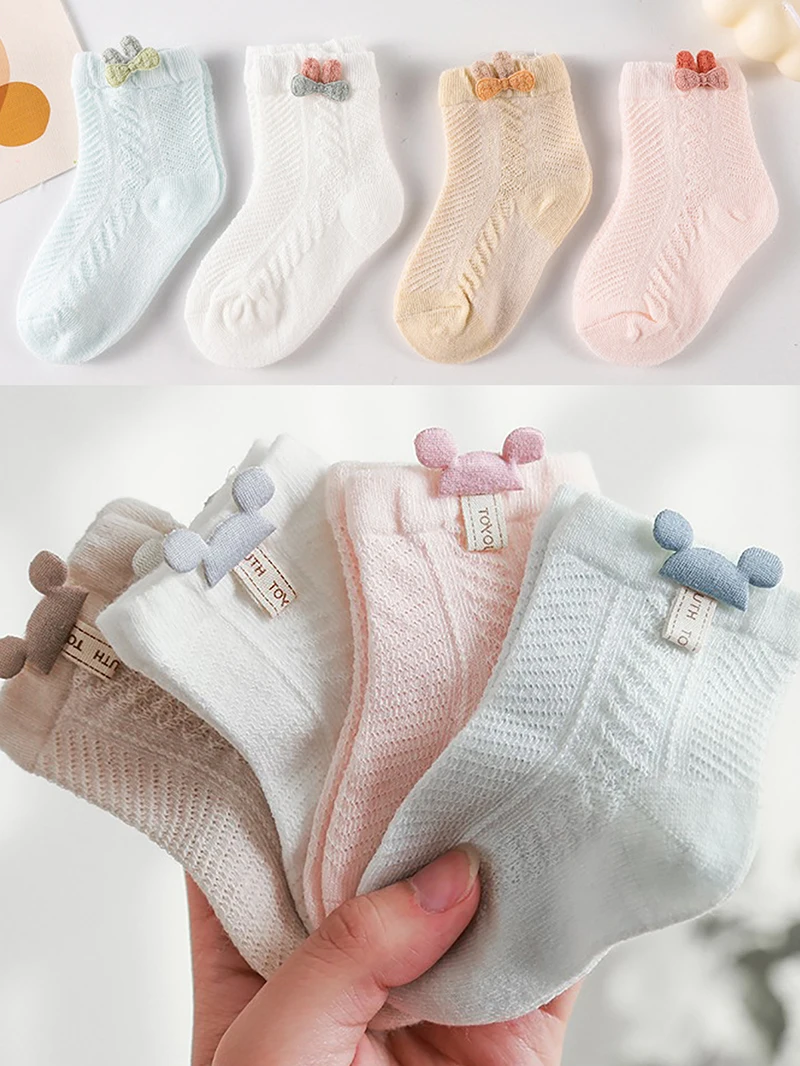 4pcs Newborn Socks Baby Summer Thin Cute Cute Mid Tube Short Socks Fashion New Baby Boneless Breathable Mid Tube Socks