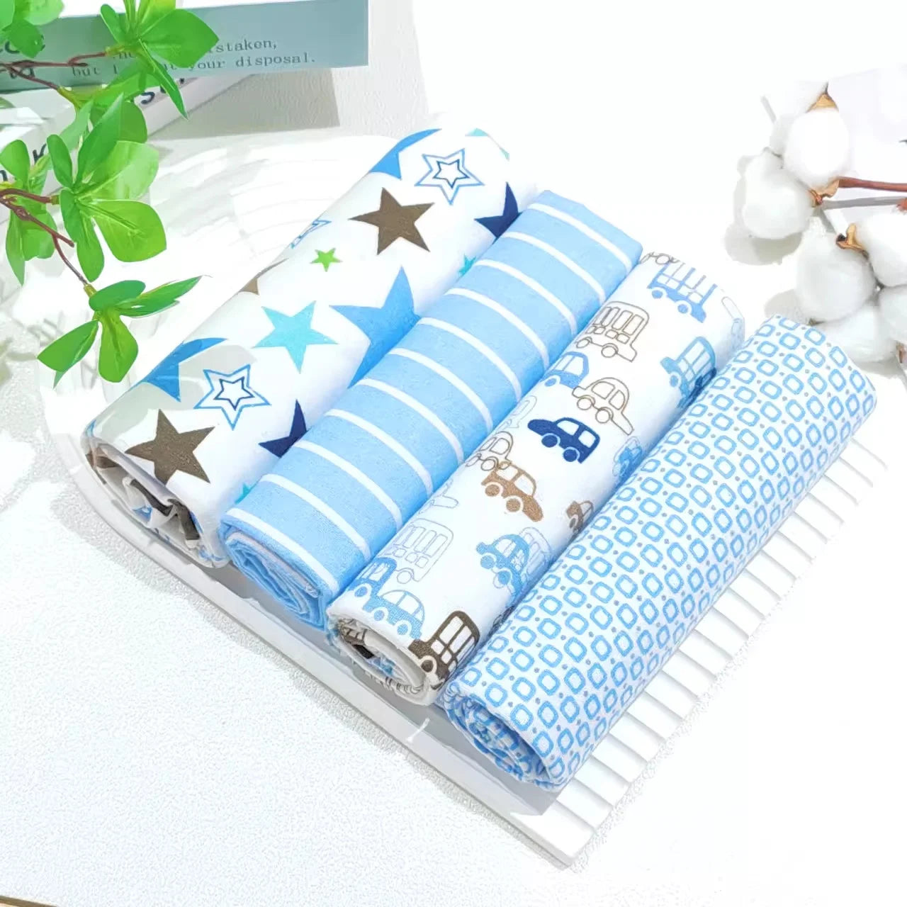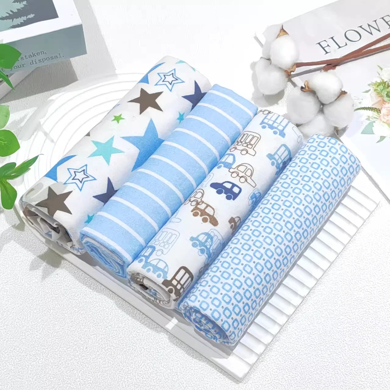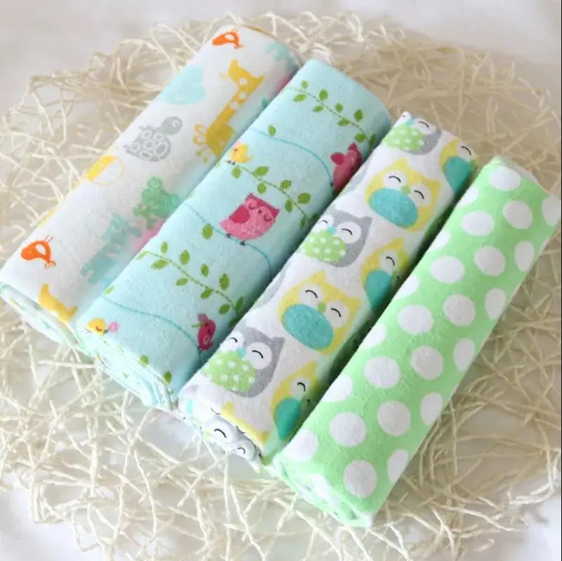 4Pcs/Pack New Color Cotton Flannel Diapers Baby Swaddles Wrap Receiving Bedsheet Print Blankets For Baby Girls Boys 76*76CM