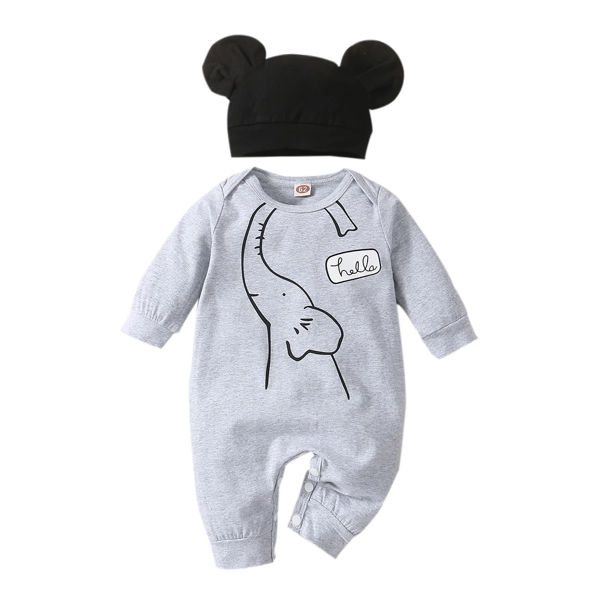Autumn and winter baby boy cute casual fashion HELLO English letter long sleeved round neck jumpsuit+hat