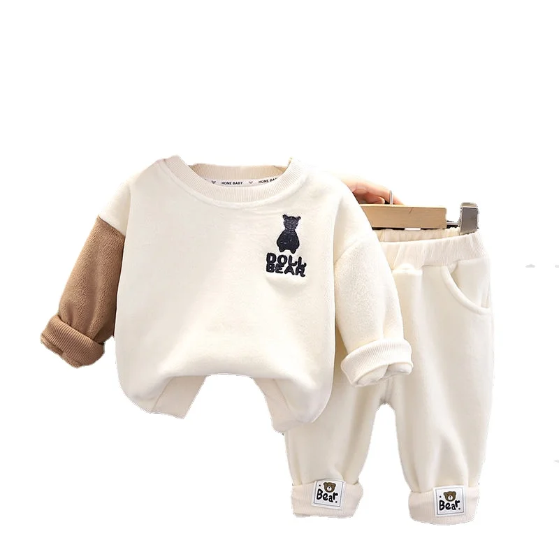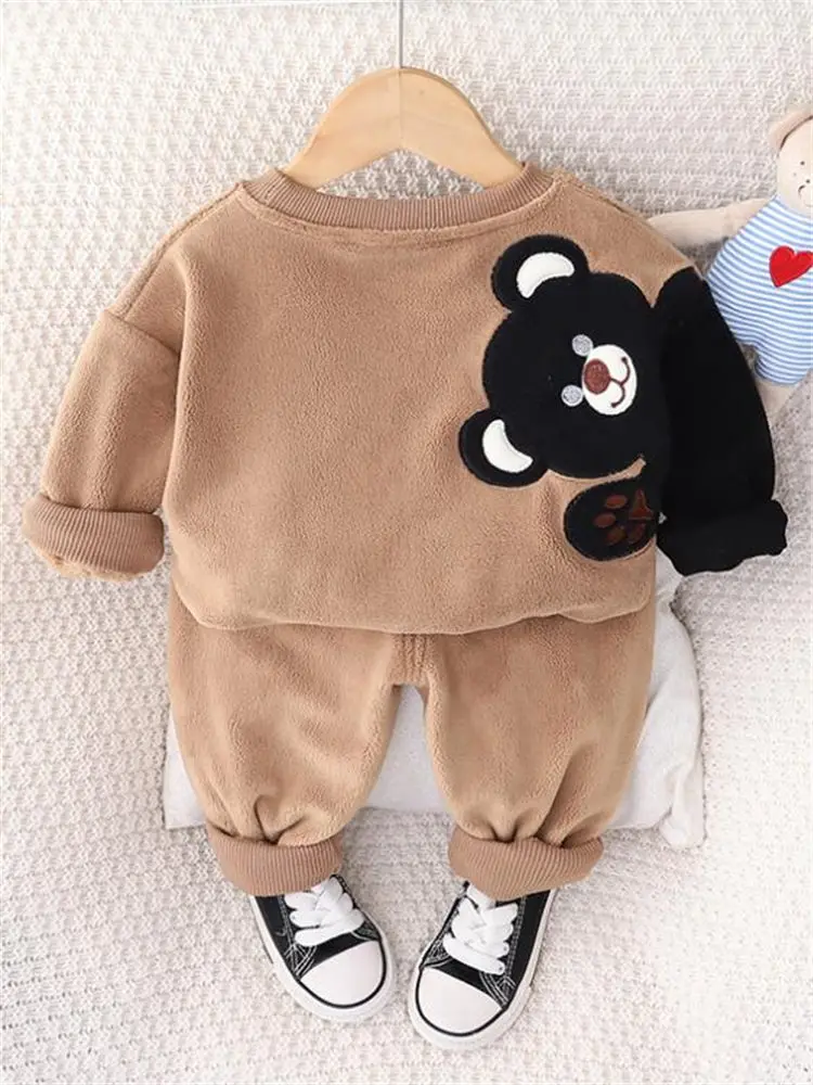Autumn Winter Kids Girls Clothing Sets Kids Cartoon Bear Casual 2pcs/set Hooded Velvet Children's Sports Suits Clothes 0-5 Years