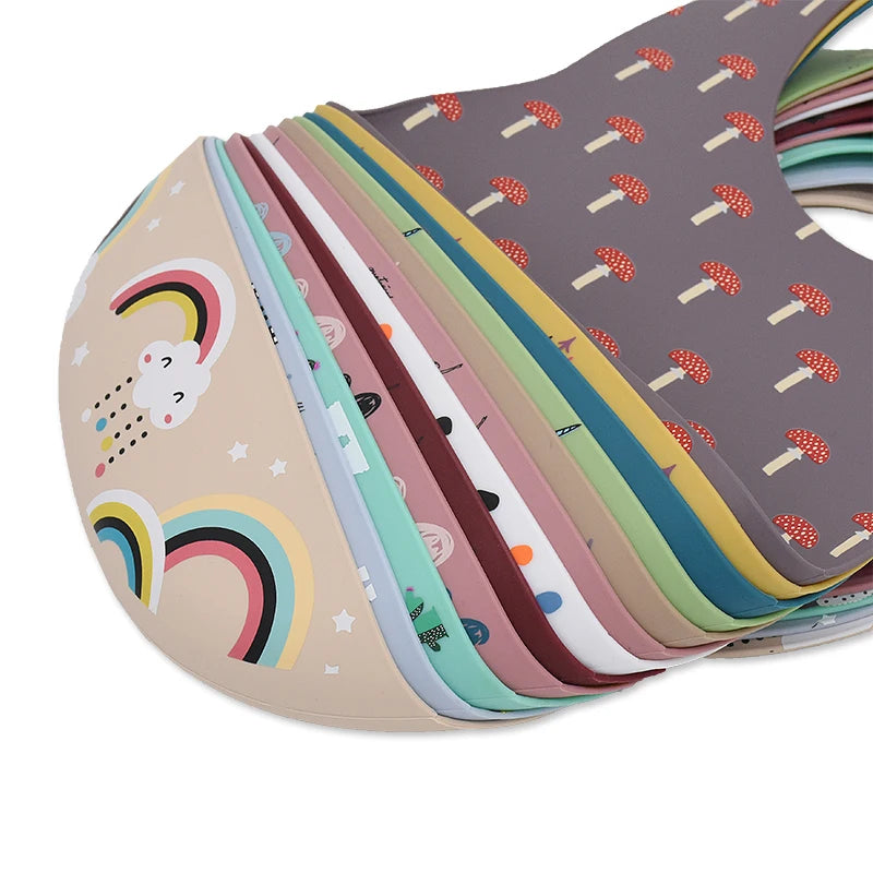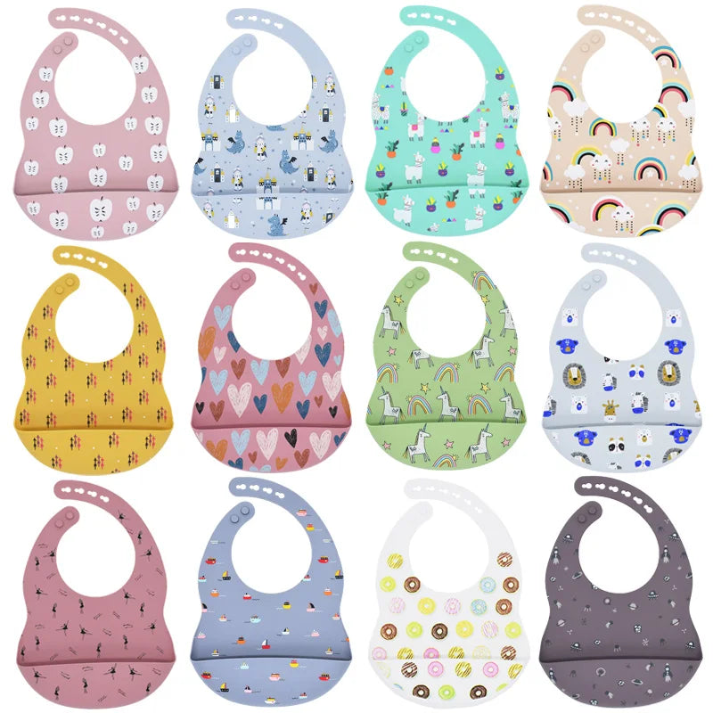 Baby Bibs Cartoon Silicone Bib Waterproof Baby Feeding Newborn Saliva Towel Toddler Aprons Adjustable Burp Cloth Dropshipping