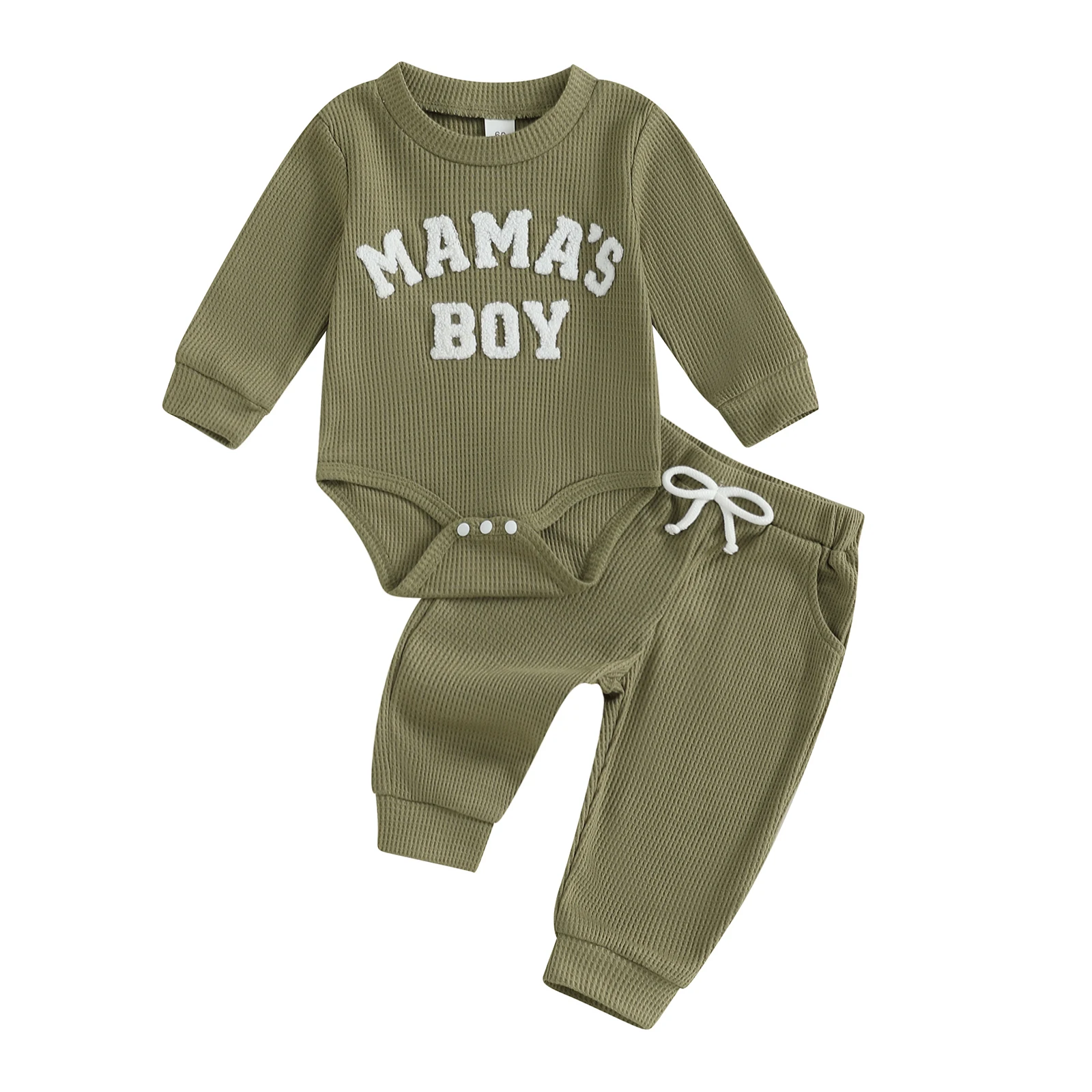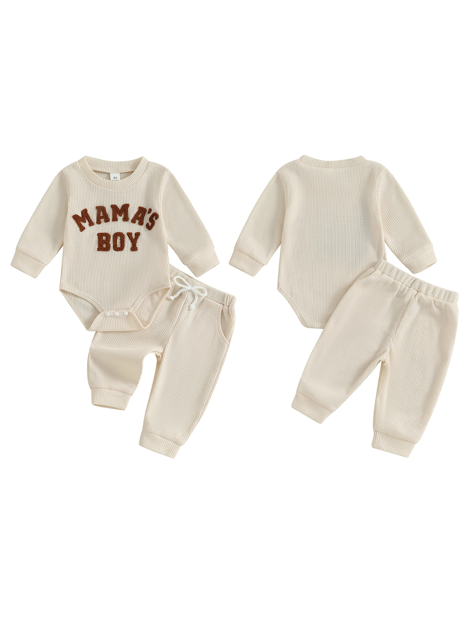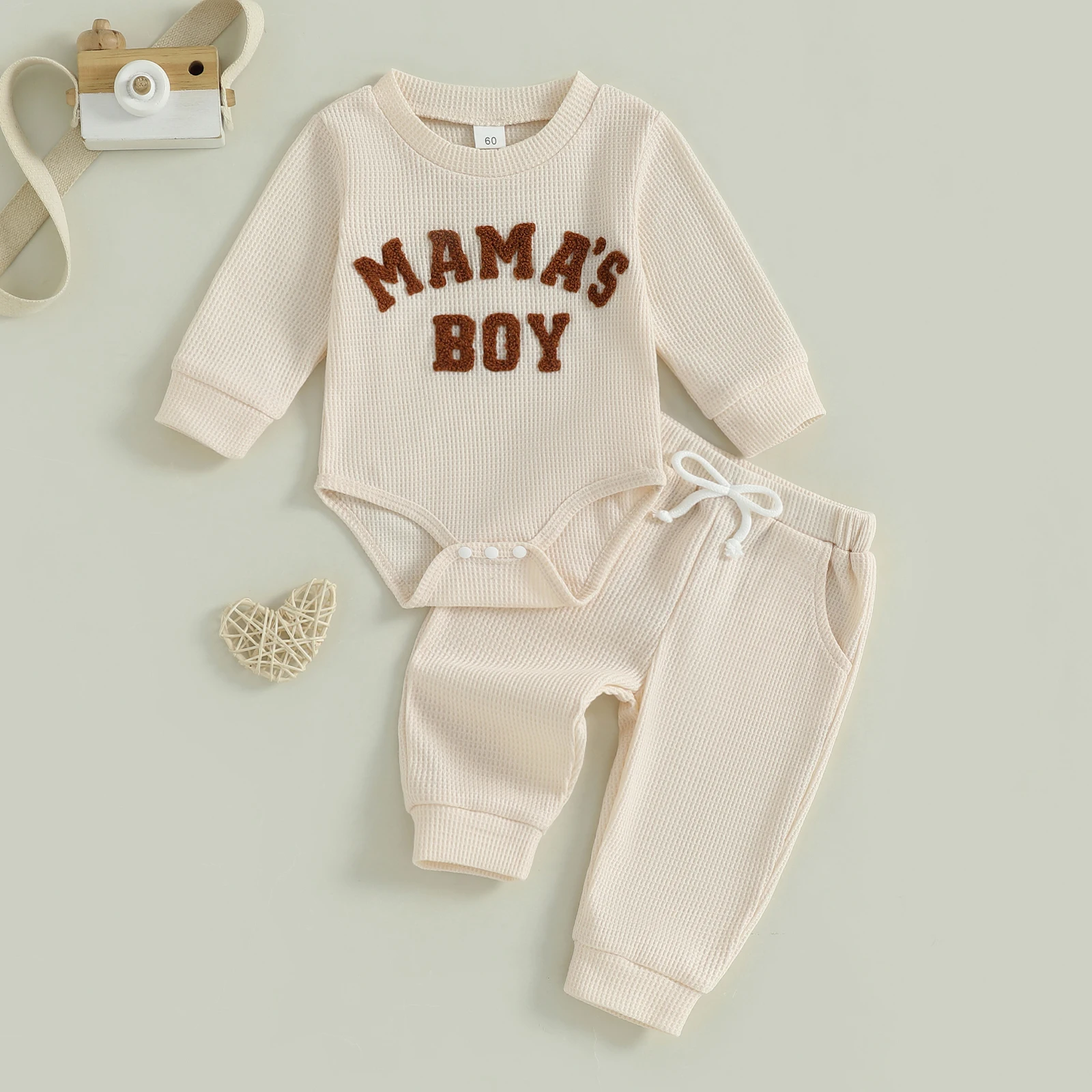 Baby Boy Fall Outfit Letter Embroidered Long Sleeve Romper Solid Elastic Waist Pants 2 Piece Set
