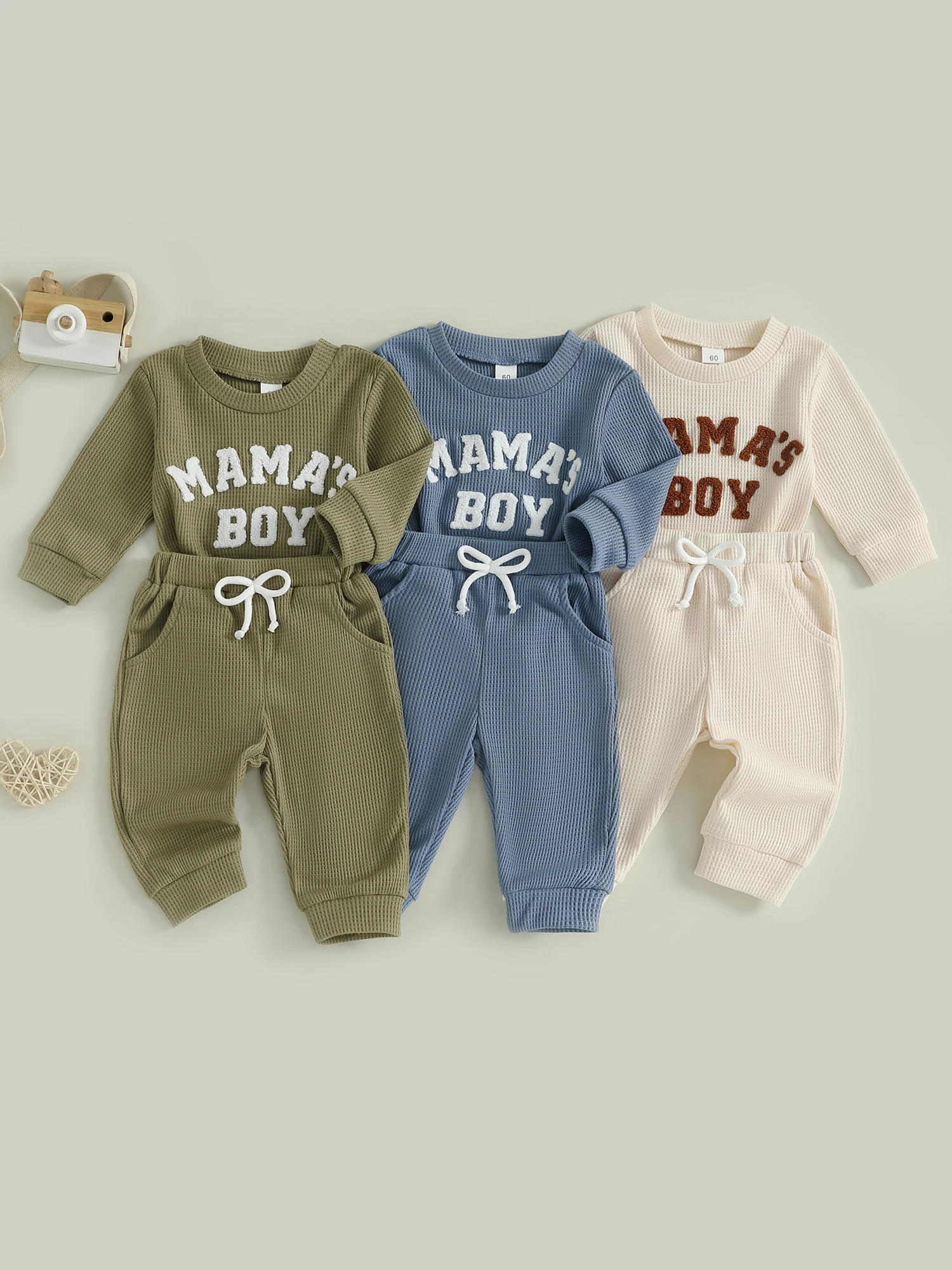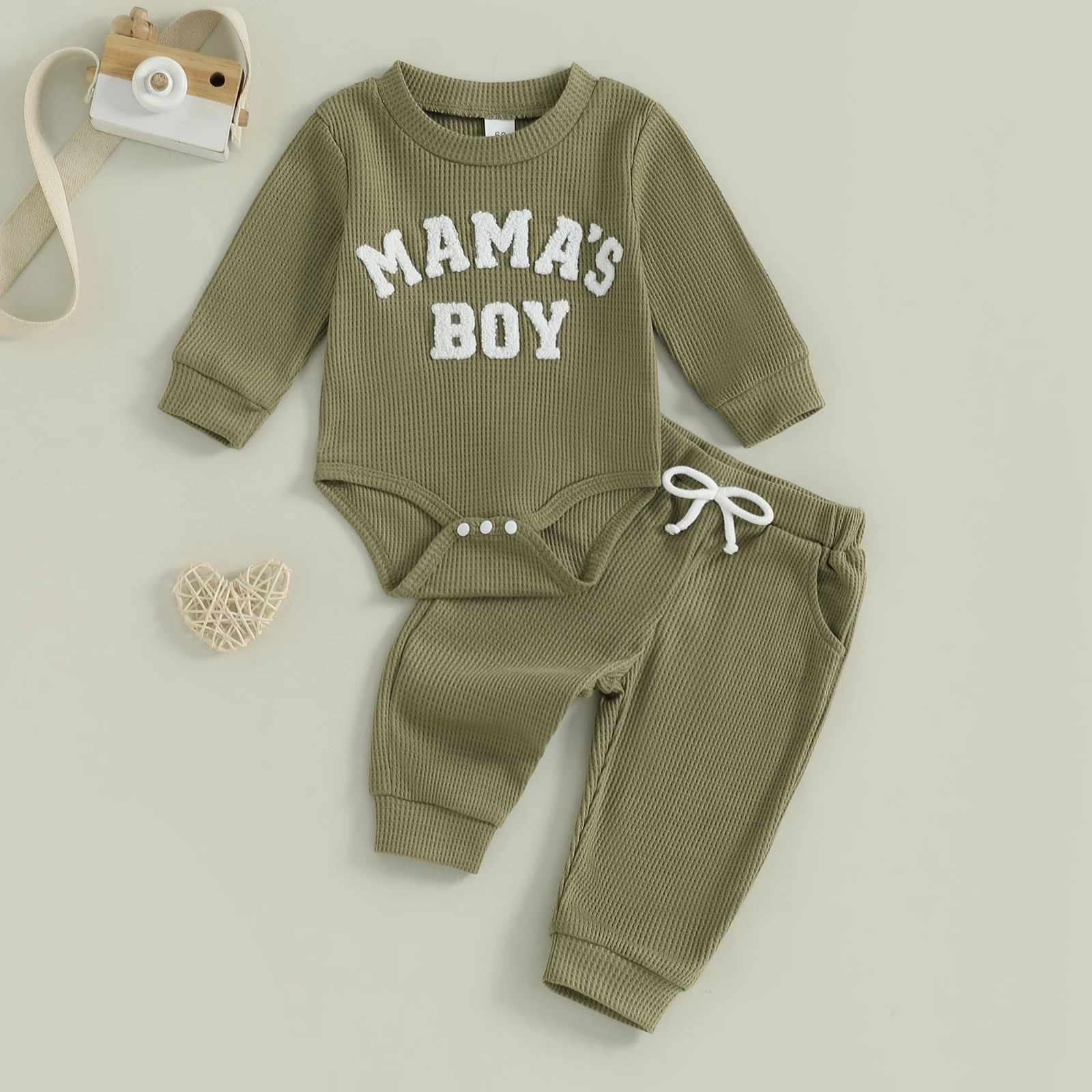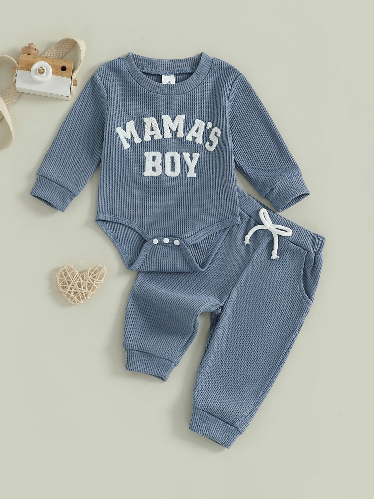 Baby Boy Fall Outfit Letter Embroidered Long Sleeve Romper Solid Elastic Waist Pants 2 Piece Set