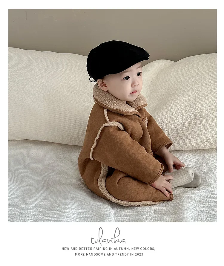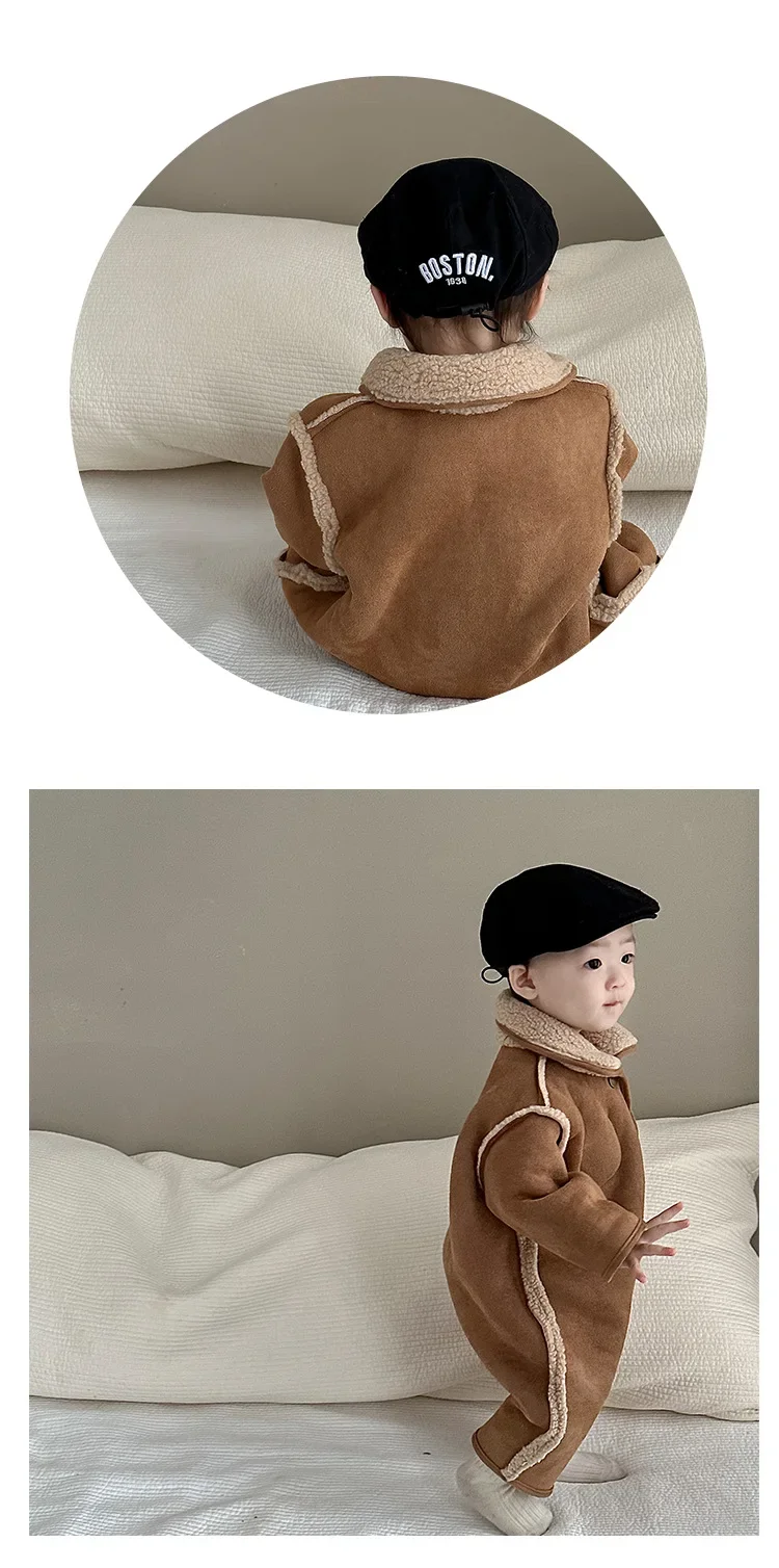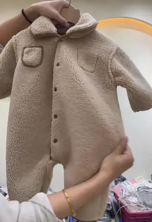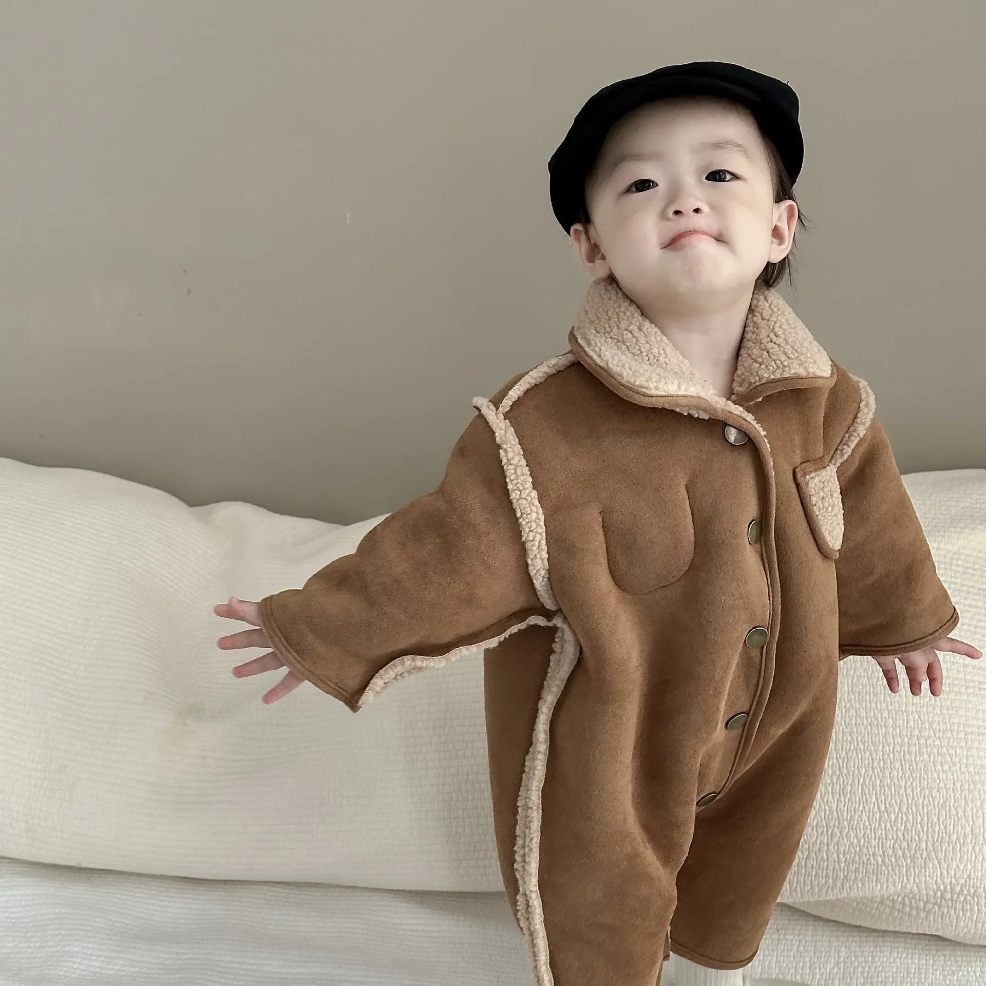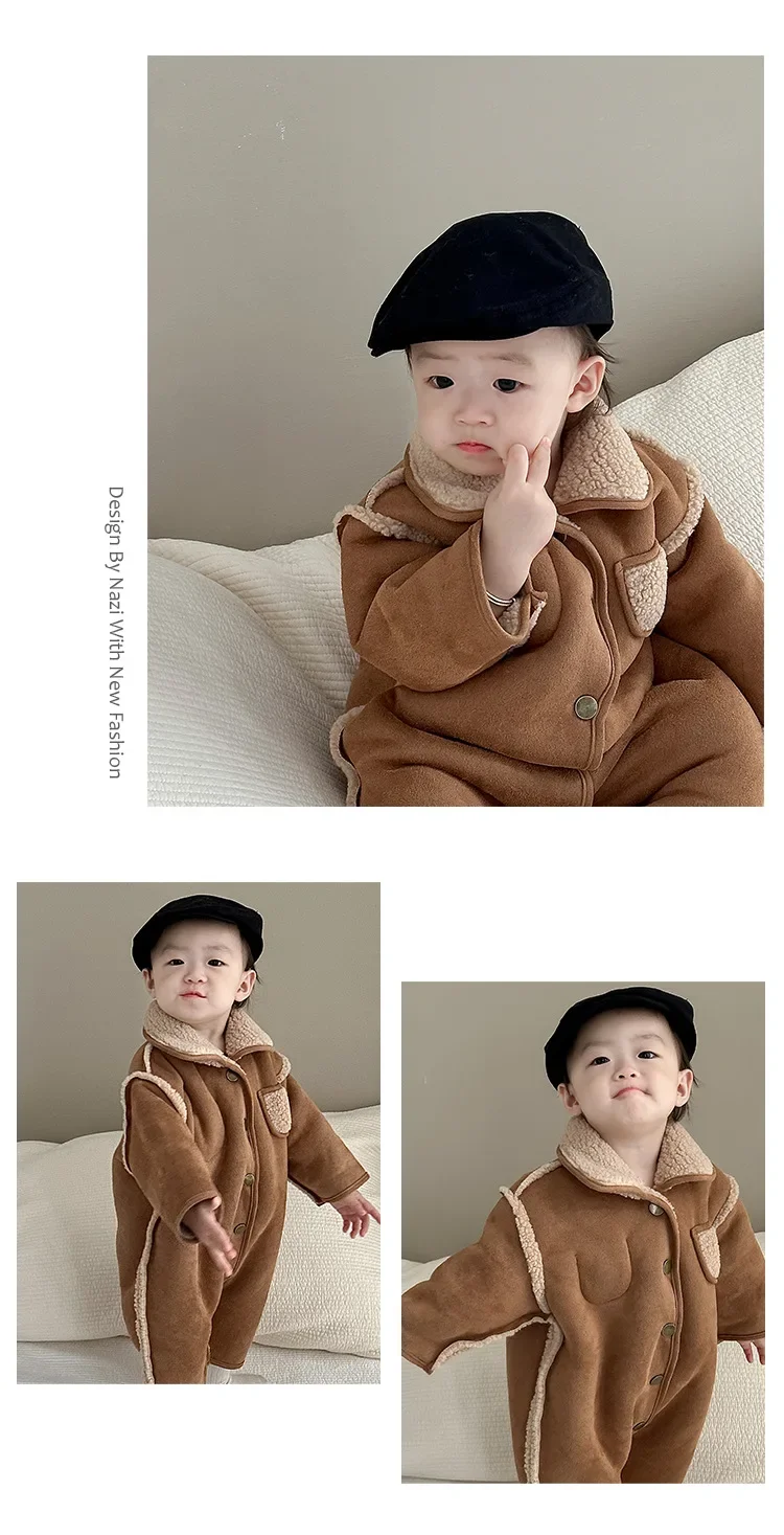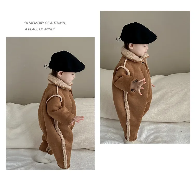 Baby boys and girls fashion Winter Reversible Lamb wool bodysuits 0-3 years infants warm thick jumpsuits