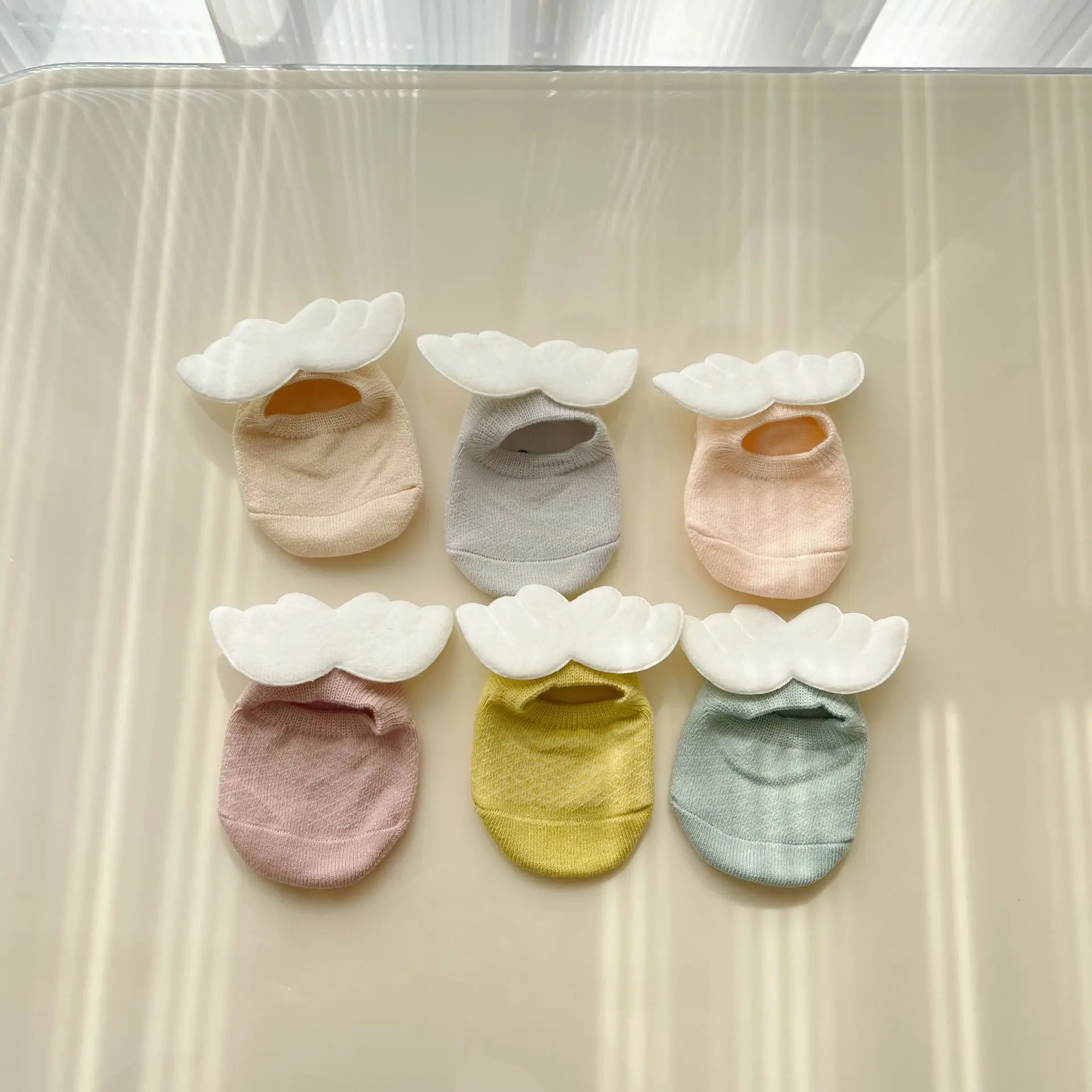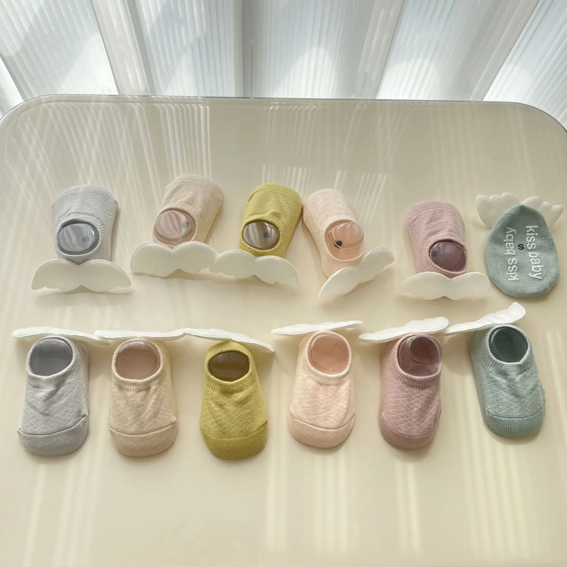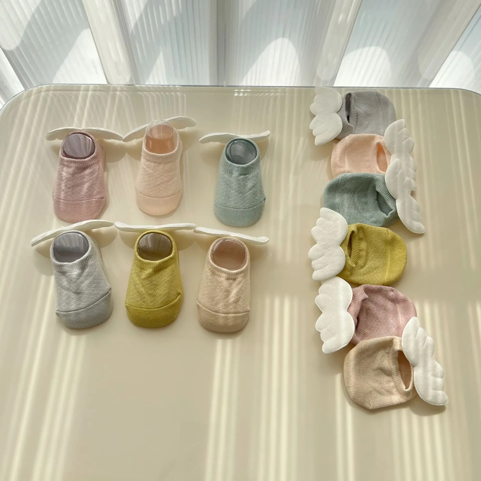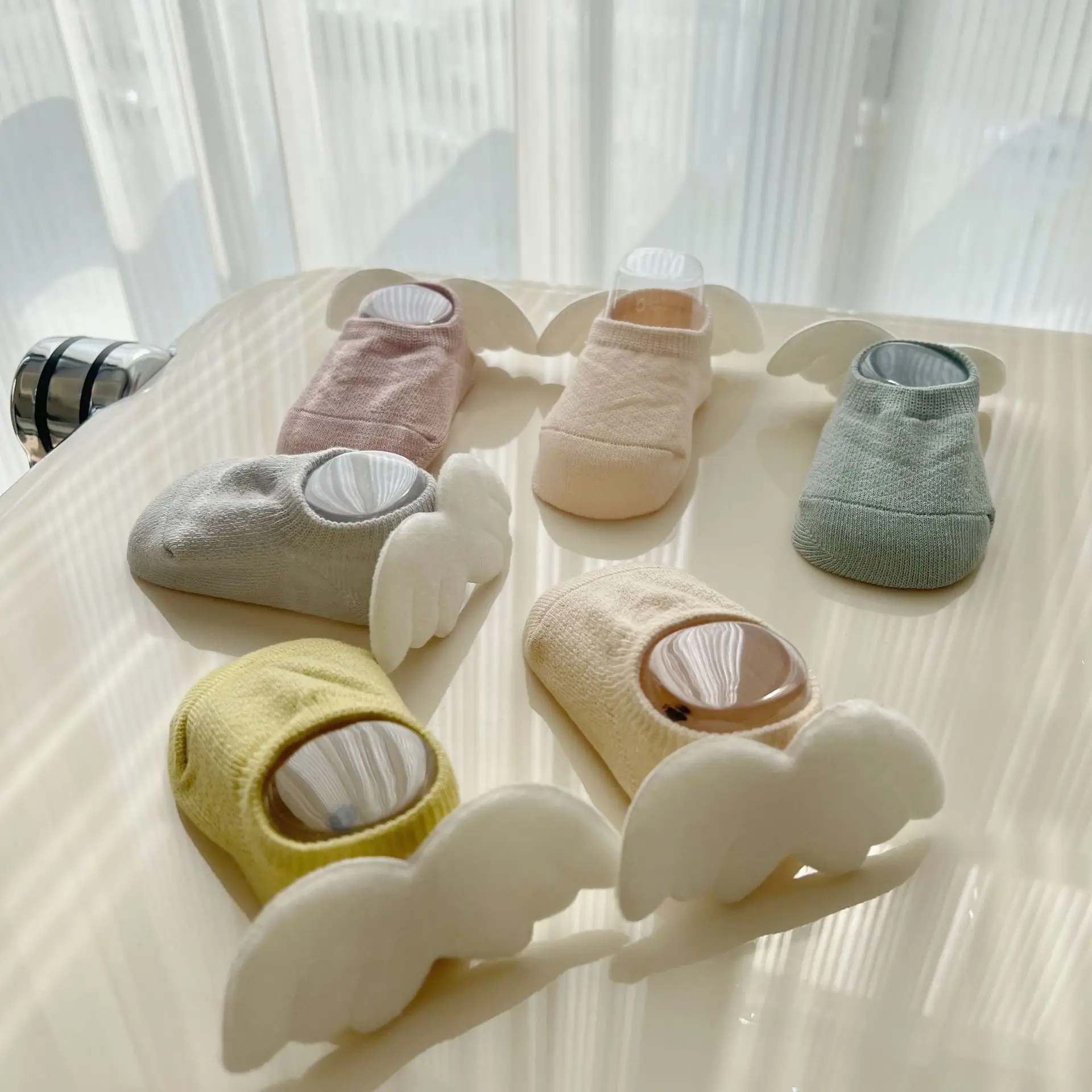 Baby Boys Angel Wing Socks Elastic Cotton Solid Color Newborn Socks Girls Spring Summer Anti-slip Floor Low-cut Socks for 0-3Yrs