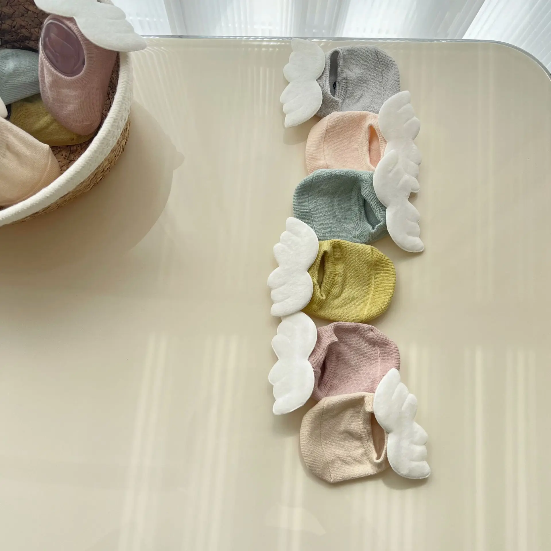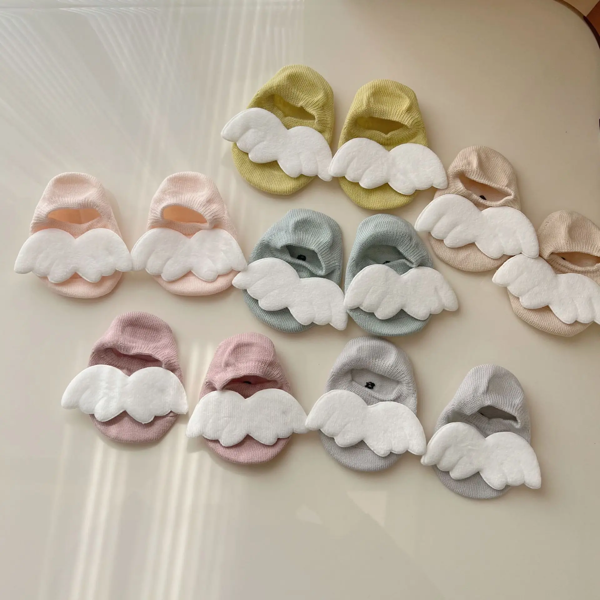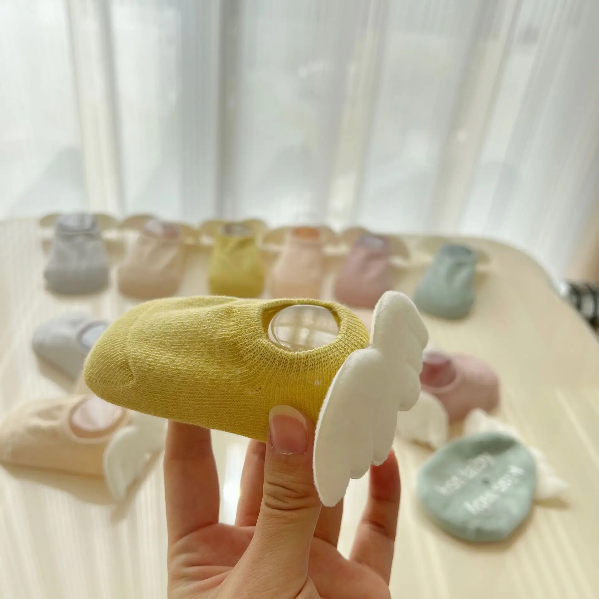 Baby Boys Angel Wing Socks Elastic Cotton Solid Color Newborn Socks Girls Spring Summer Anti-slip Floor Low-cut Socks for 0-3Yrs