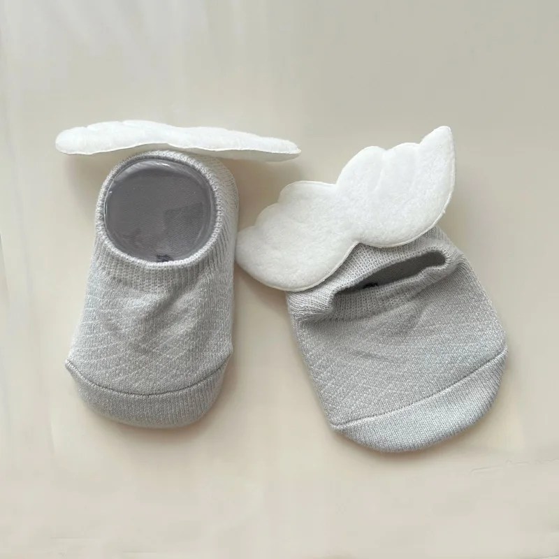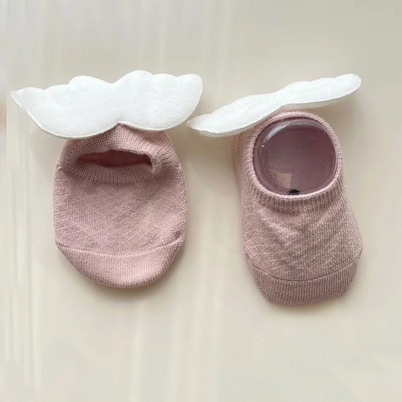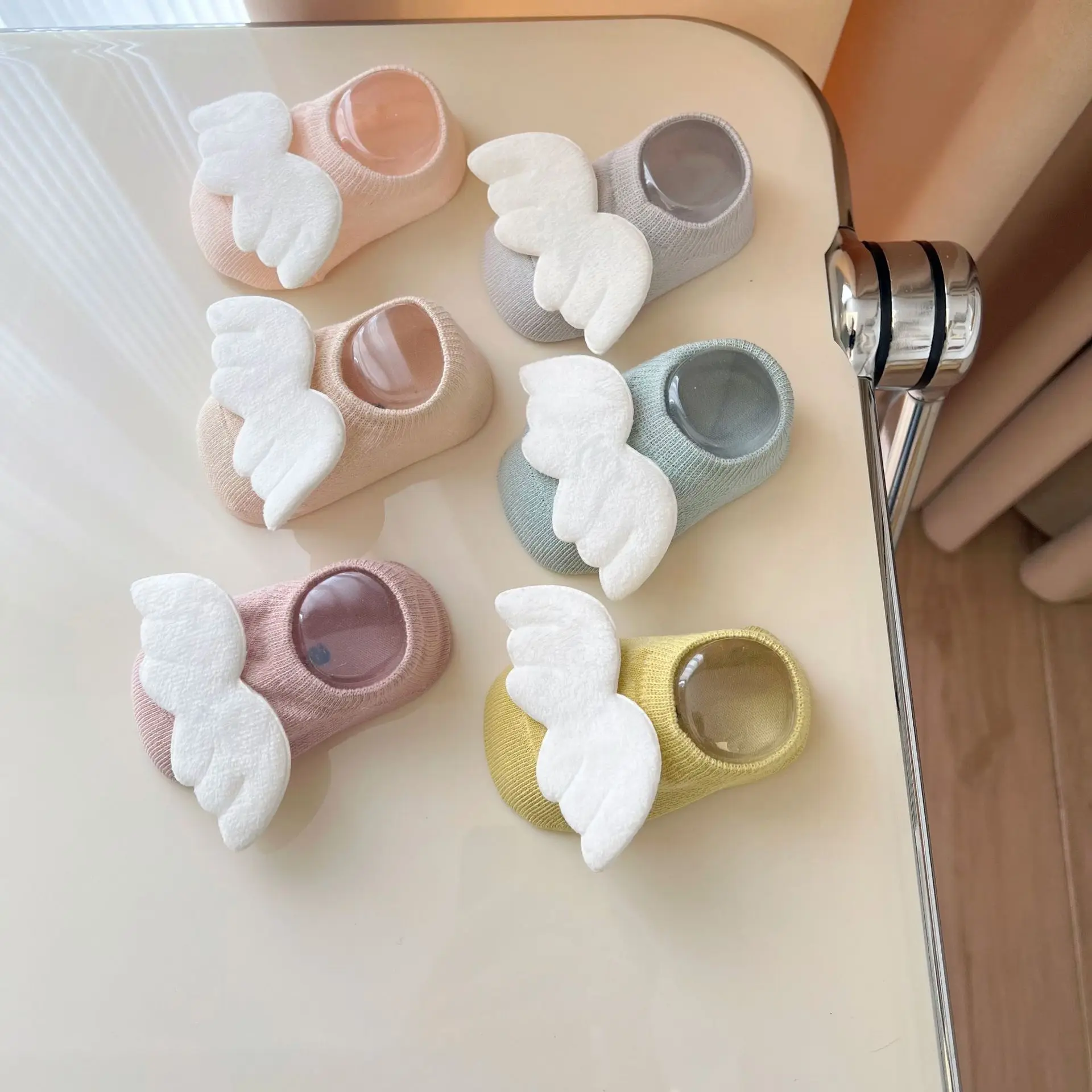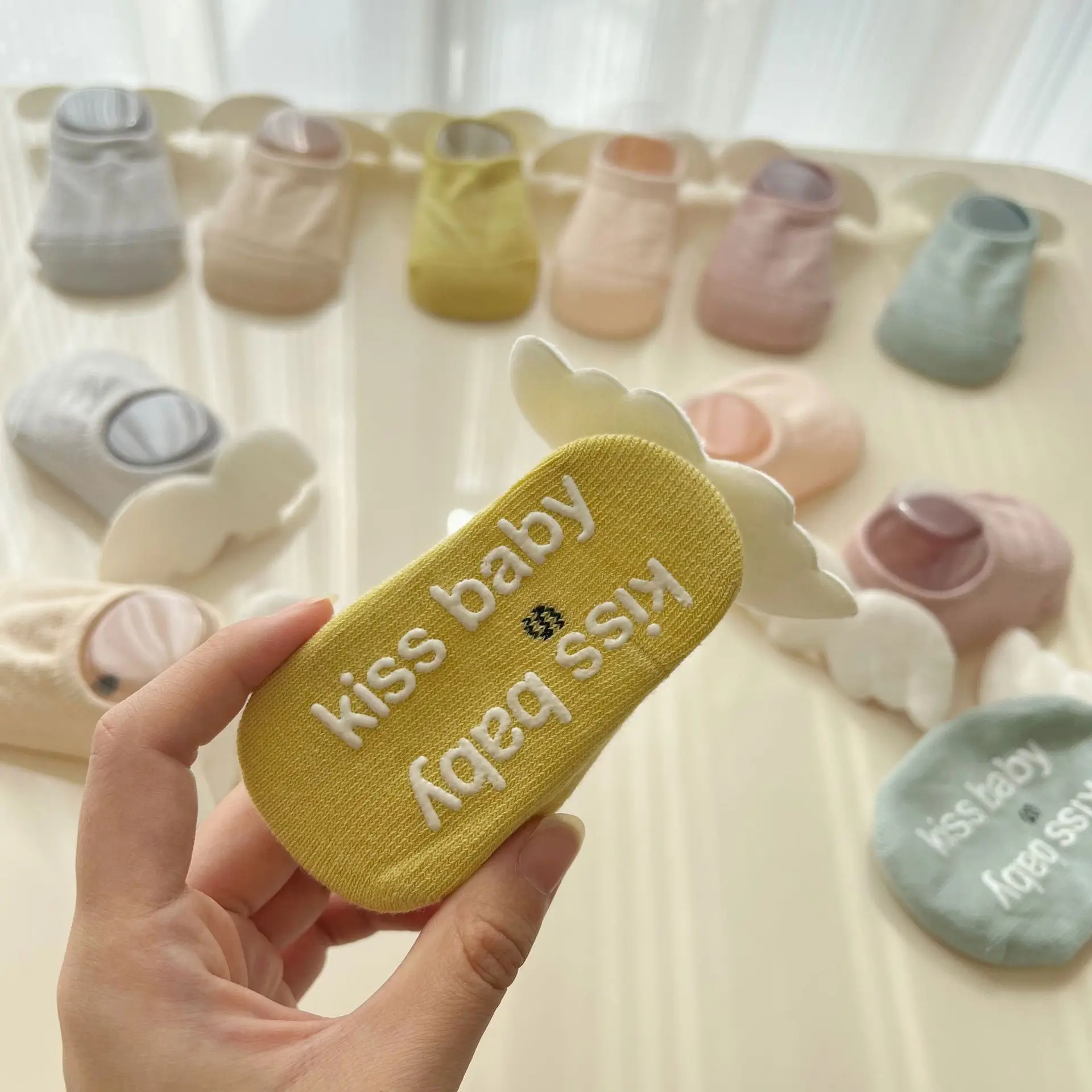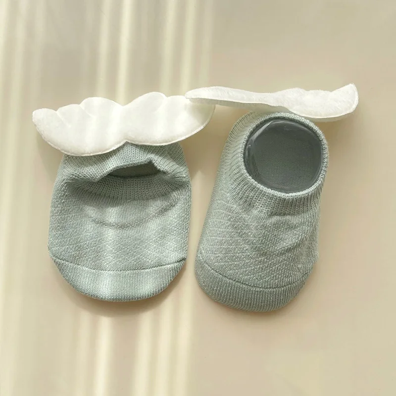 Baby Boys Angel Wing Socks Elastic Cotton Solid Color Newborn Socks Girls Spring Summer Anti-slip Floor Low-cut Socks for 0-3Yrs