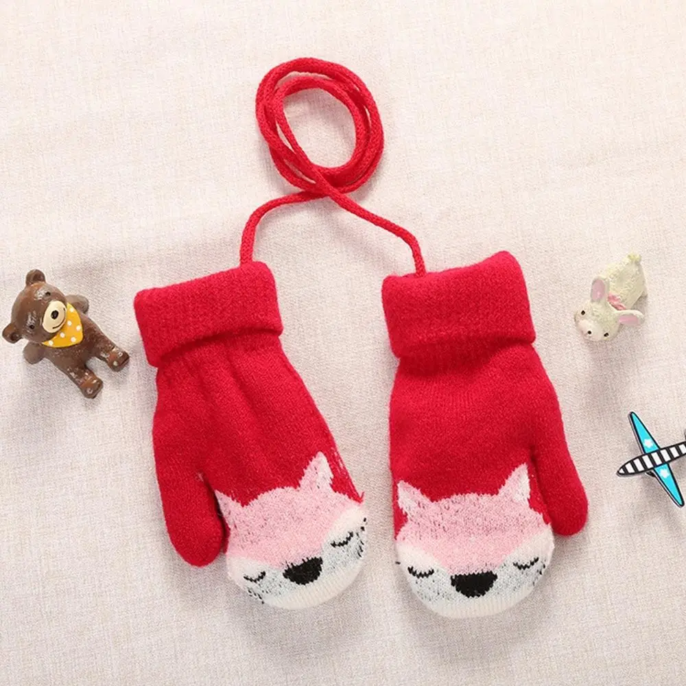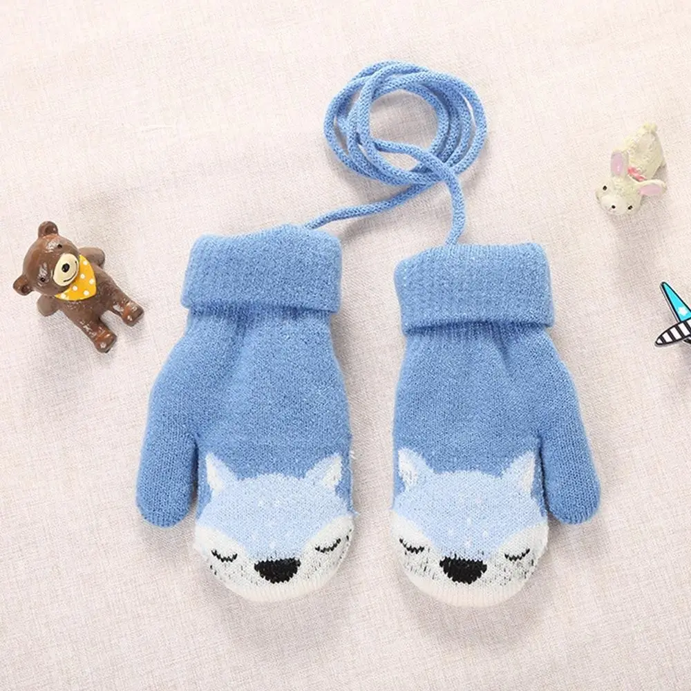 Baby Boys Girls Plush Hanging Neck Knitted Mittens Cute Thick Warm Kids Gloves For 1-3 Years Old