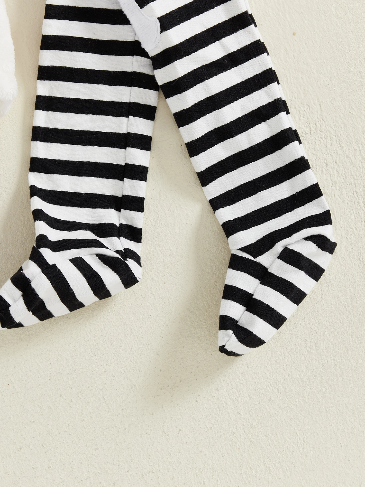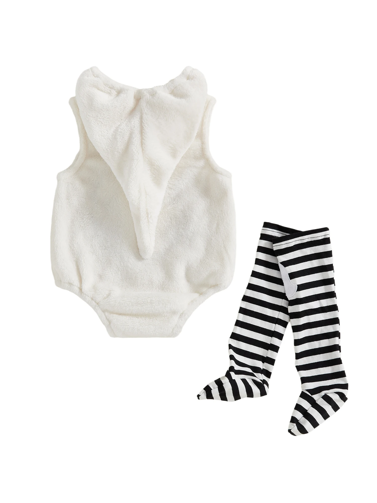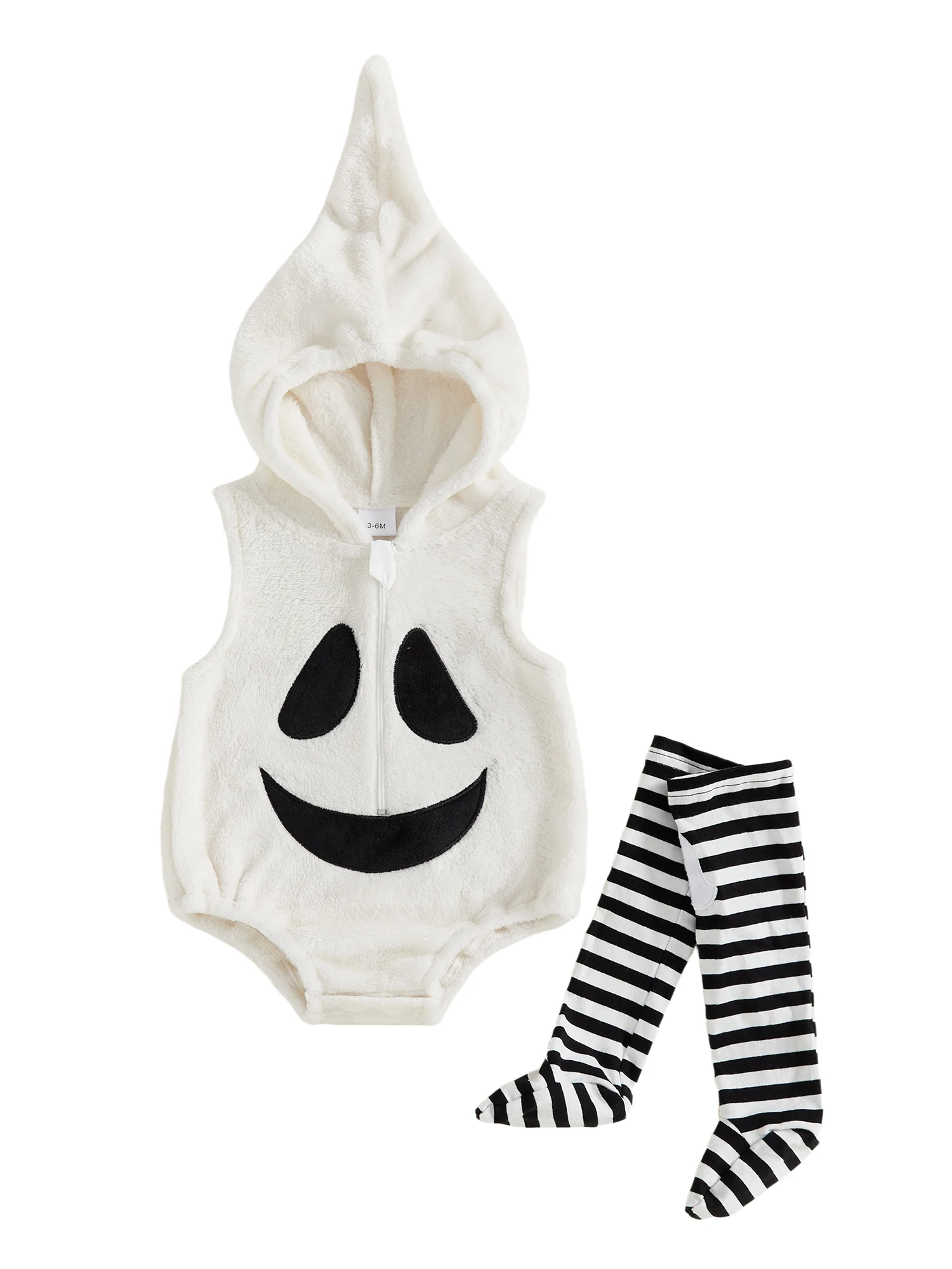 Baby Cosplay Costume Sleeveless Hooded Ghost Romper with Striped Stockings Halloween Clothes for Girls BoysA great present for your baby girl/boy, the bodysuit will make your little one more lovely, she/he will get a lot of compliments.