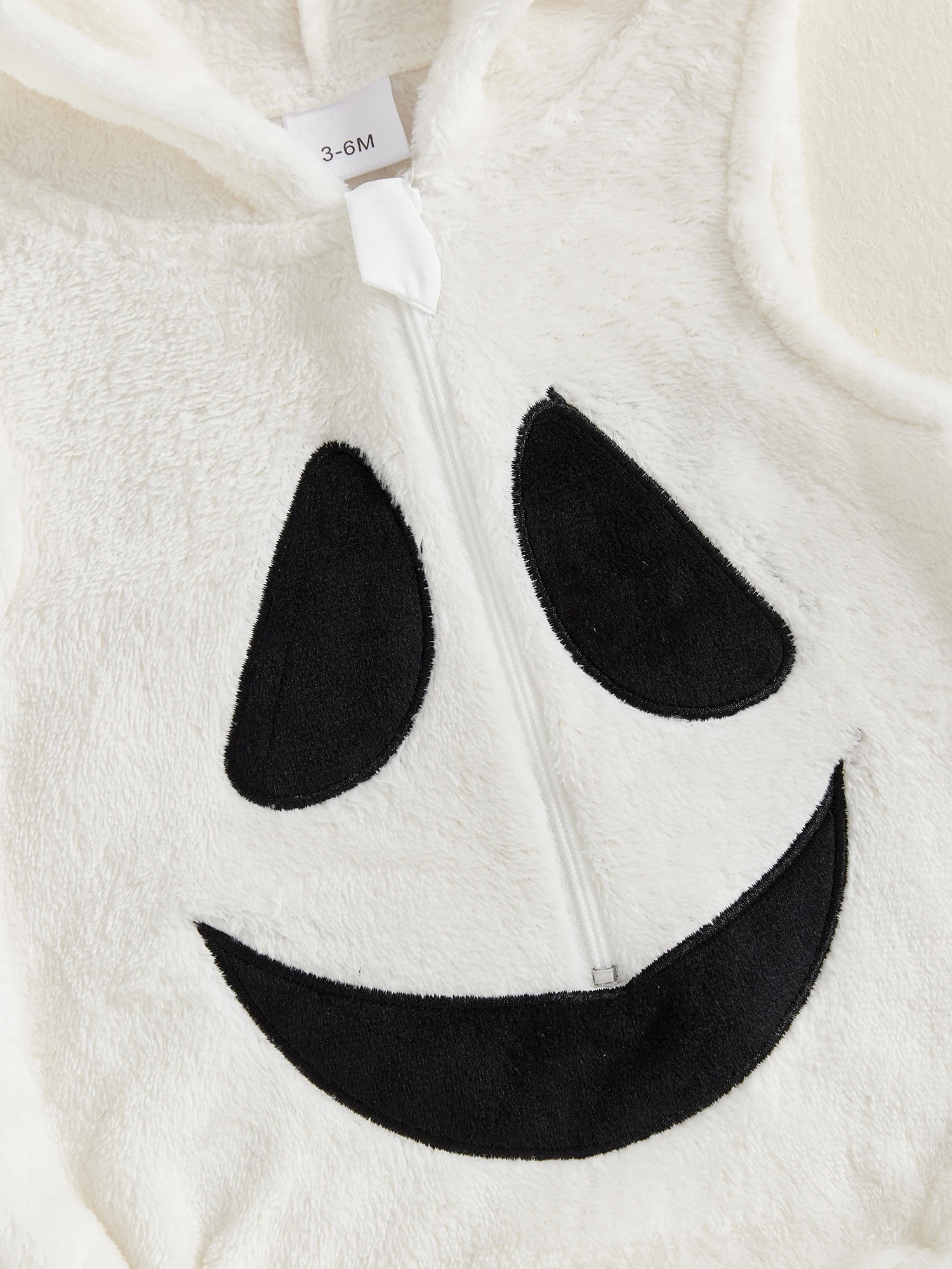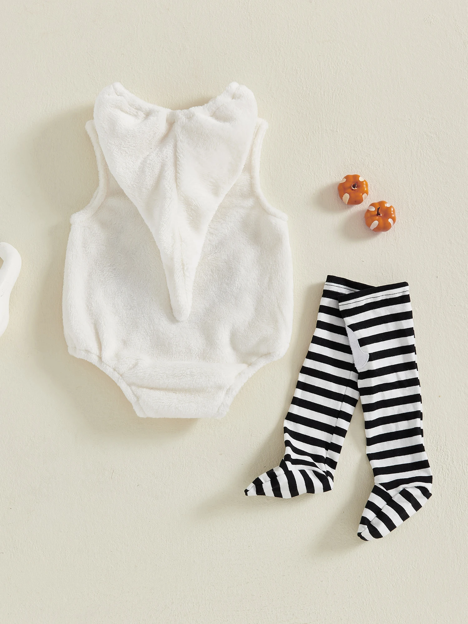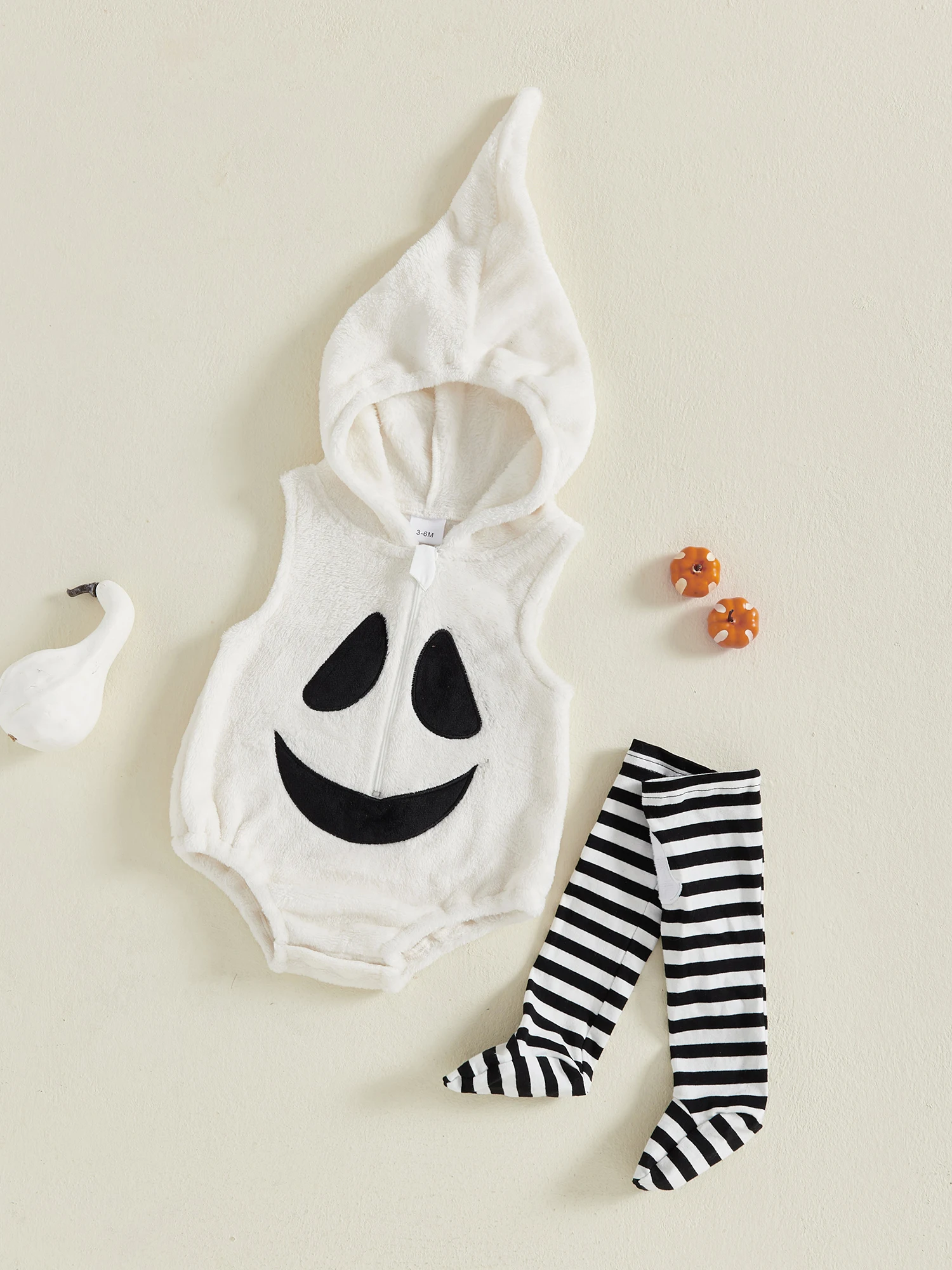 Baby Cosplay Costume Sleeveless Hooded Ghost Romper with Striped Stockings Halloween Clothes for Girls Boys