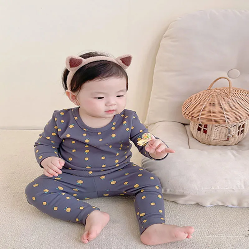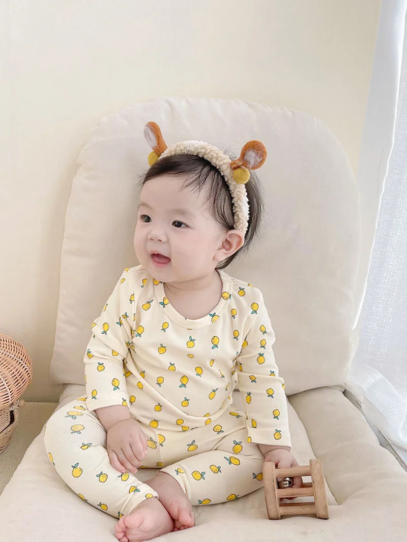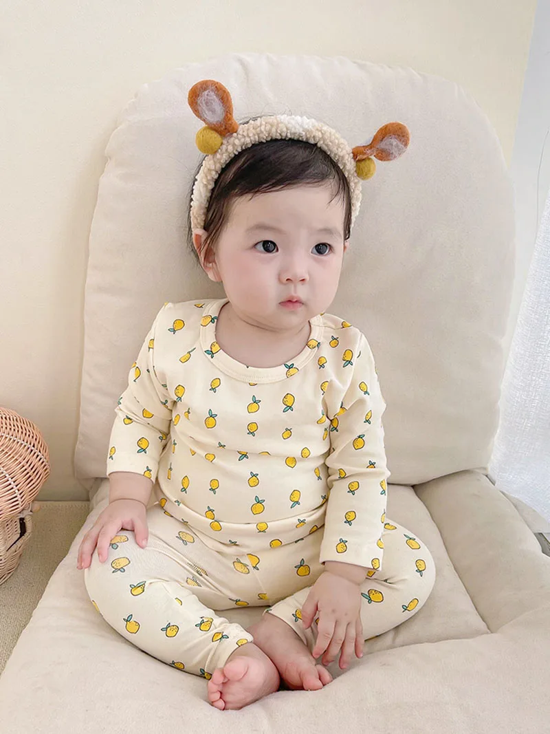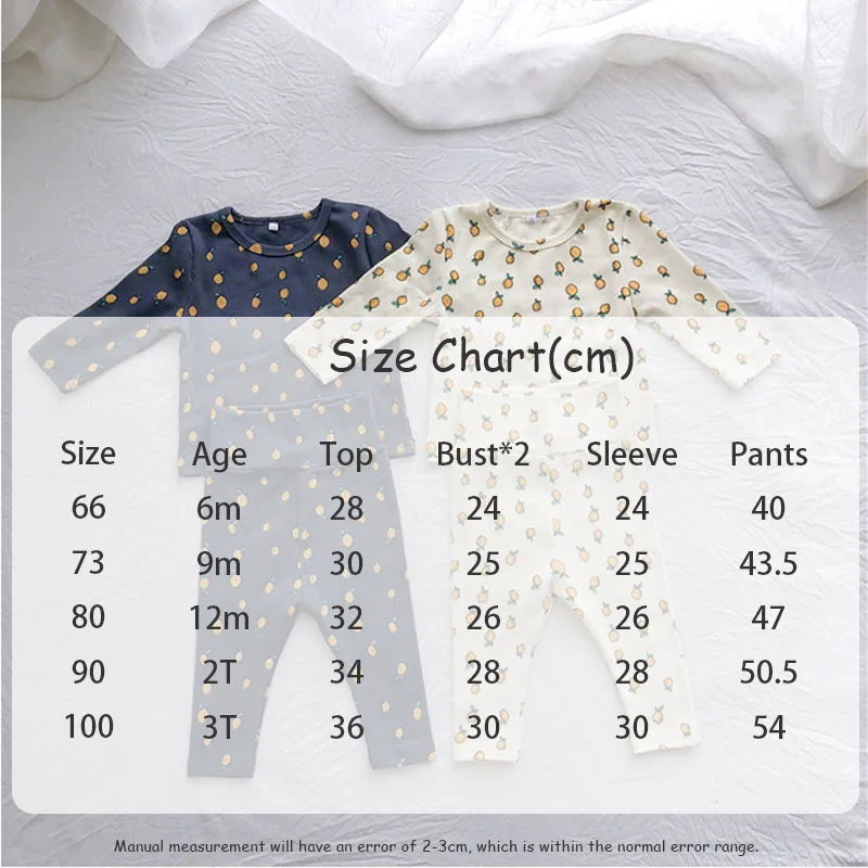 Baby Kid's Pajamas Set 0-3Y Spring Autumn Lemon Printed Home Clothing 2Pcs Boys Underwear Toddler Girls Cotton Sleep Wear