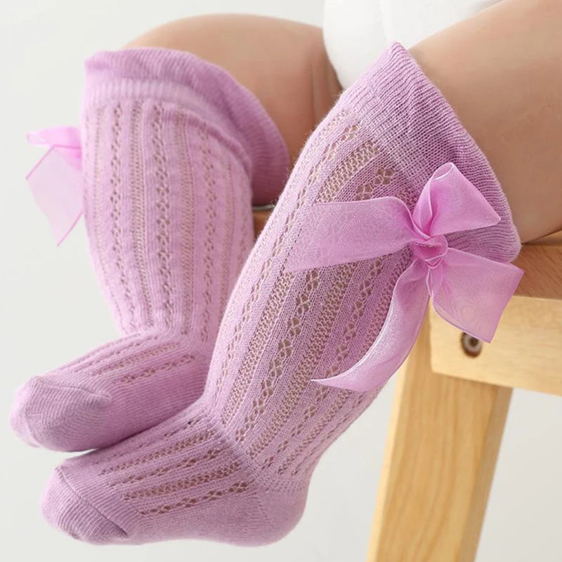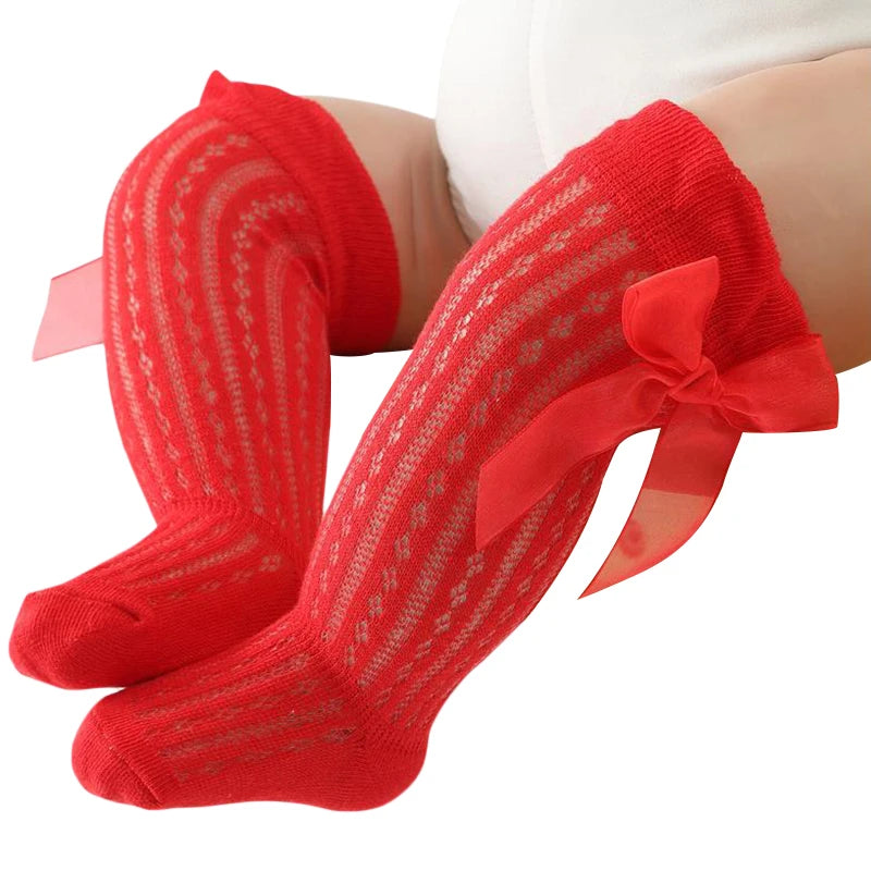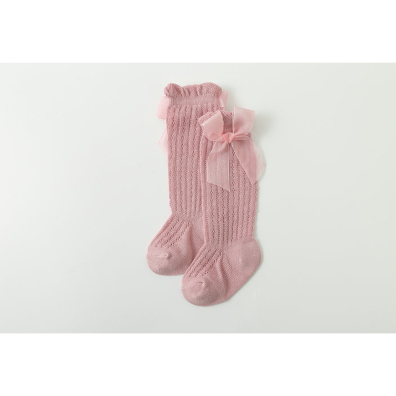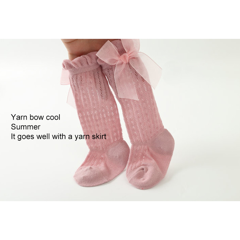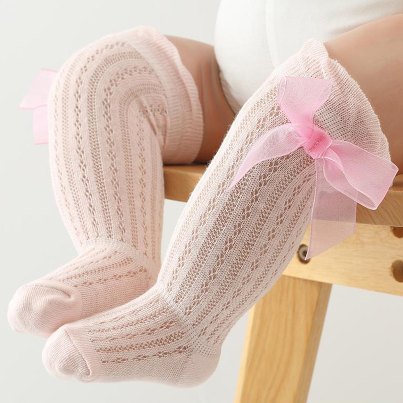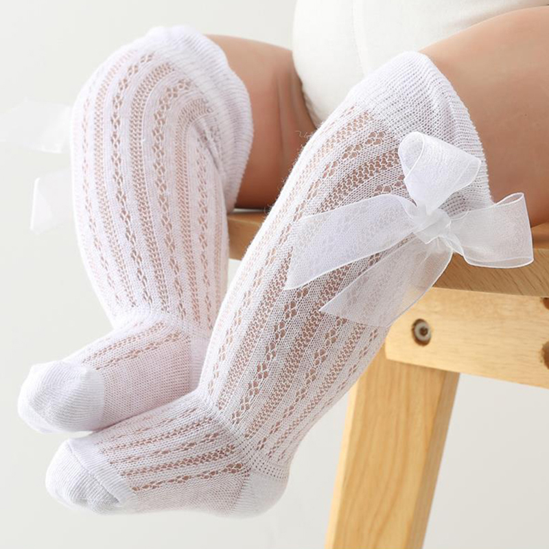 Baby Knee High Socks Toddler Long Socks Girls Bow Ruffled Knee Socks Bow Mesh Tube Stockings Infant Dress Socks