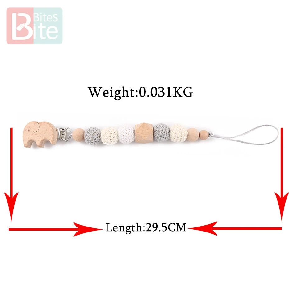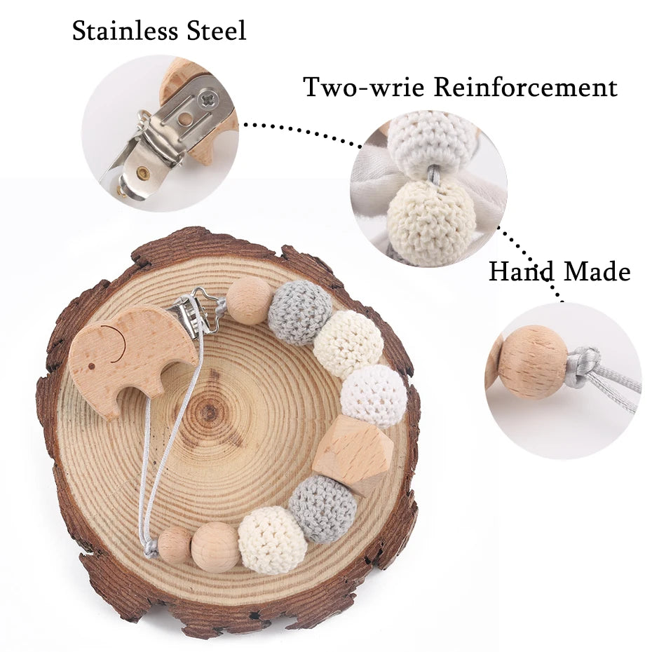 Baby Pacifier Chain Elephant Wooden Clip Geometric Crochet Beads Bag Wood Teether Tiny Rod Dummy Clips Baby Pacifier Holder
