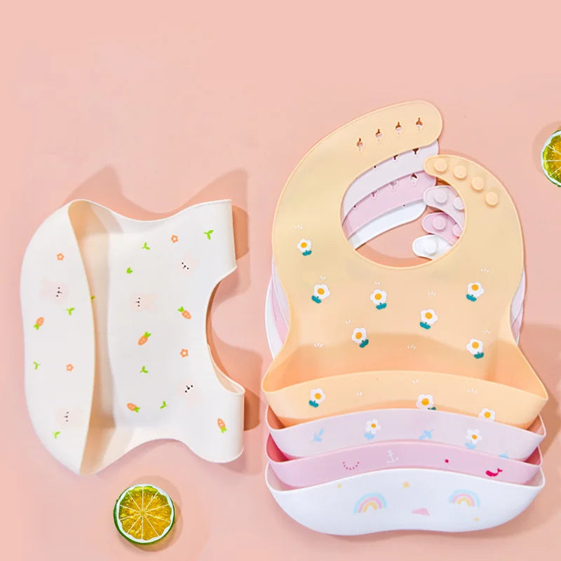 Baby Silicone Bibs Infant Toddler Feeding Saliva Towel Cartoon Adjustable Children Apron with Pocket Baby Waterproof Things