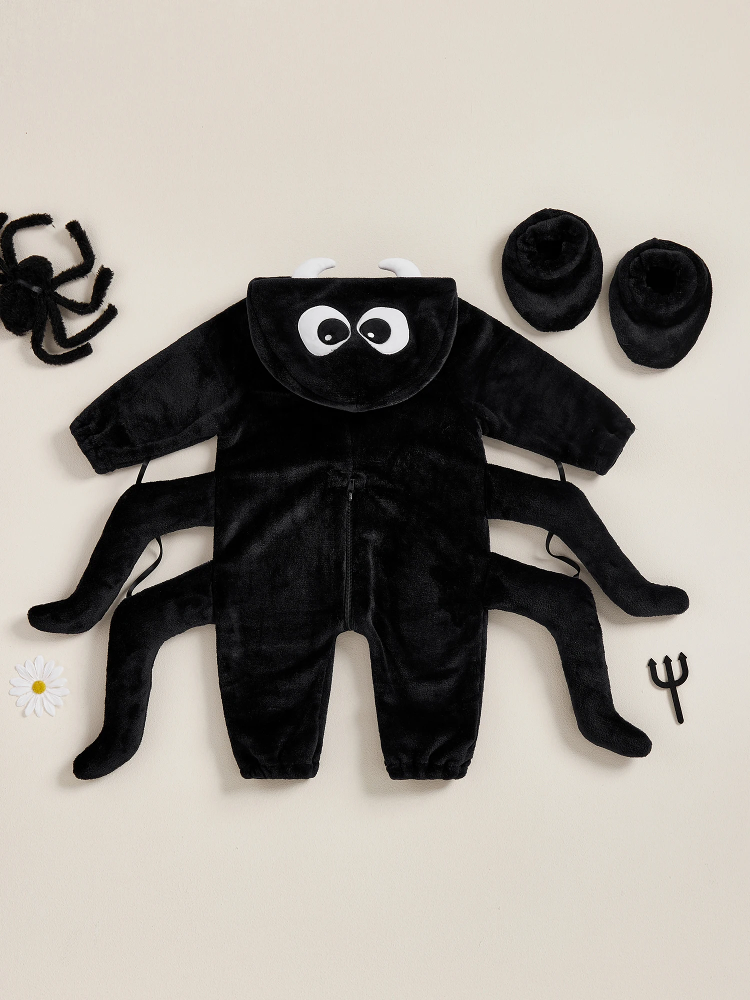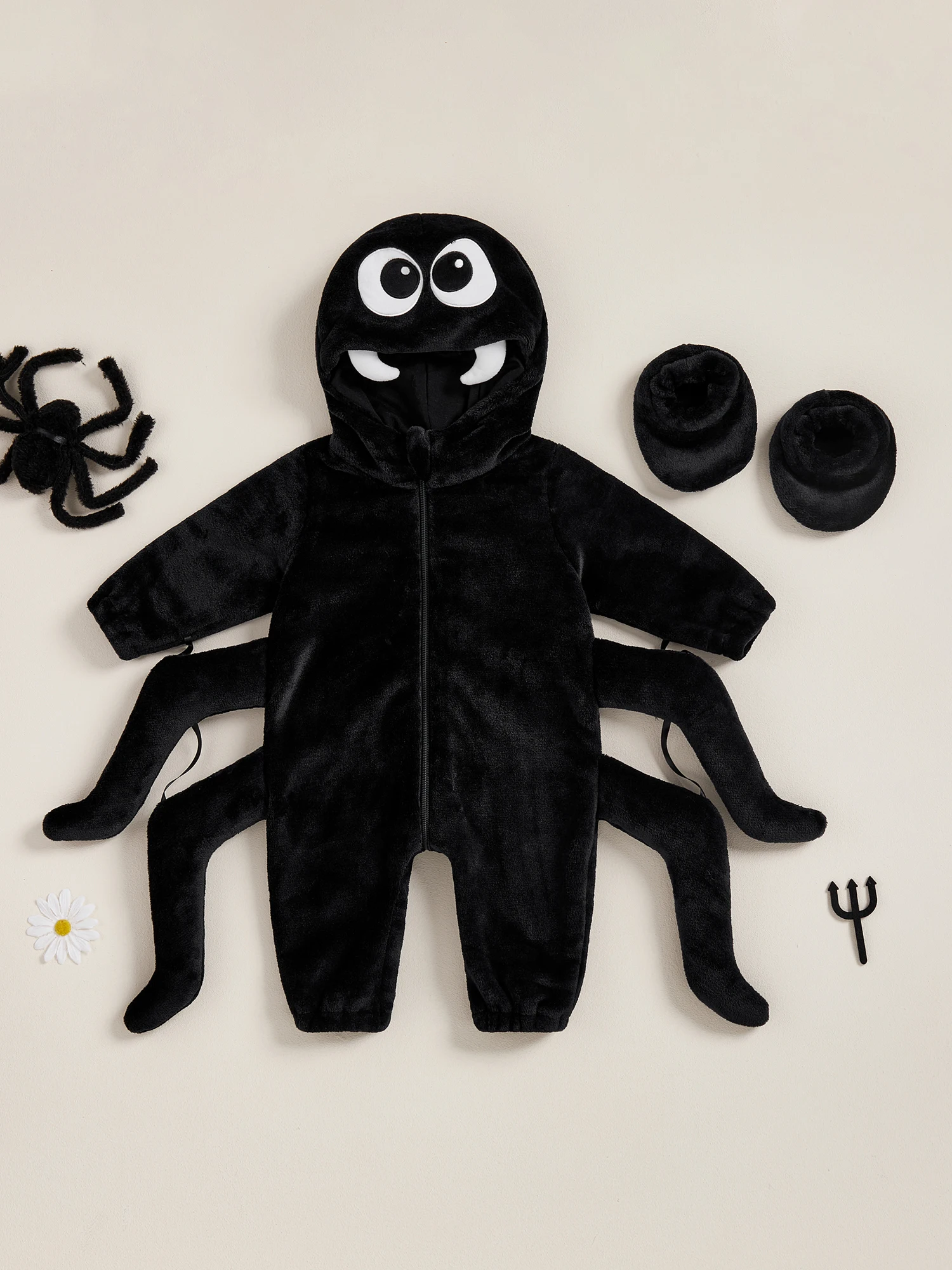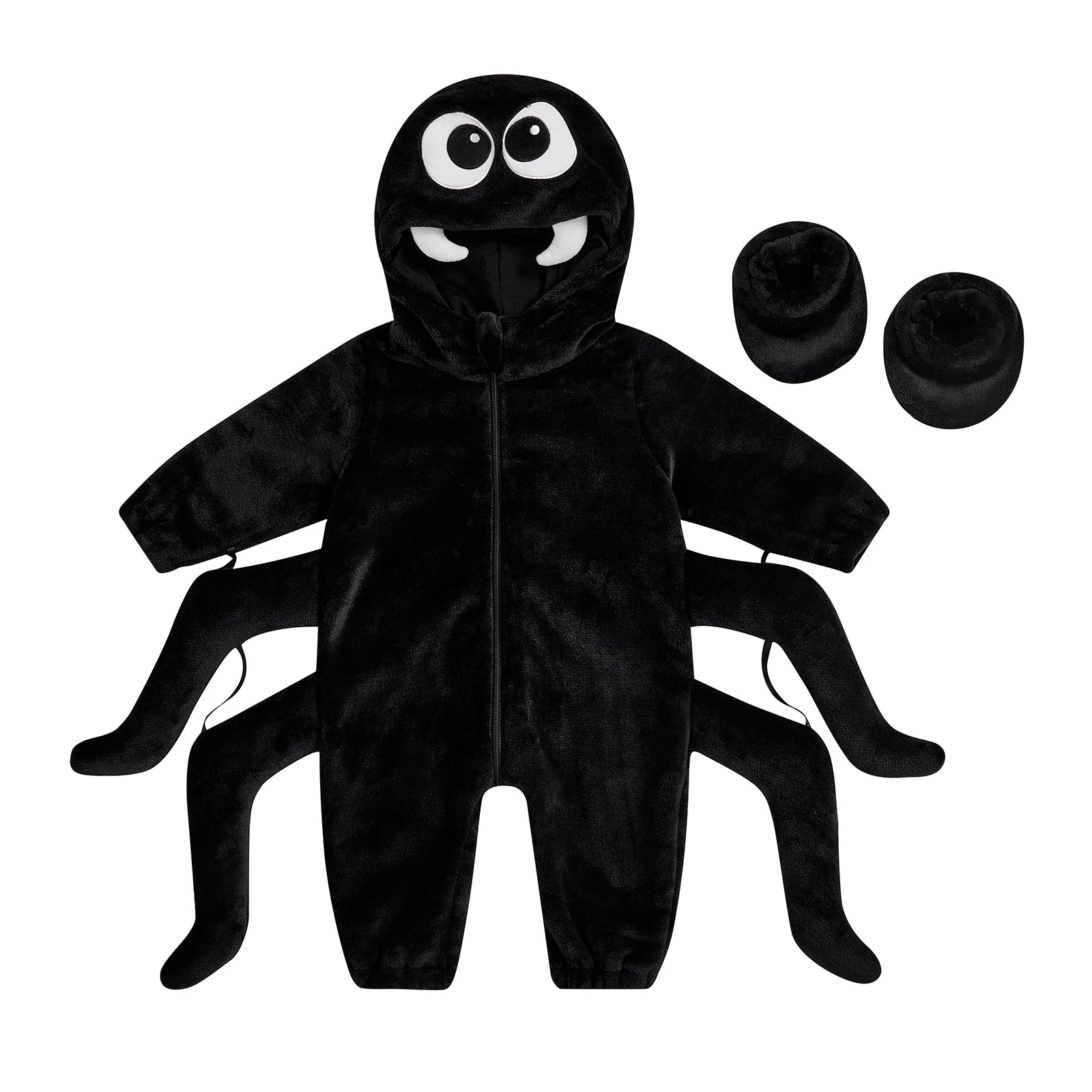 Baby Spider Costume Creative Halloween Zipper Up Cosplay Hooded Jumpsuit with Foot Covers for Party