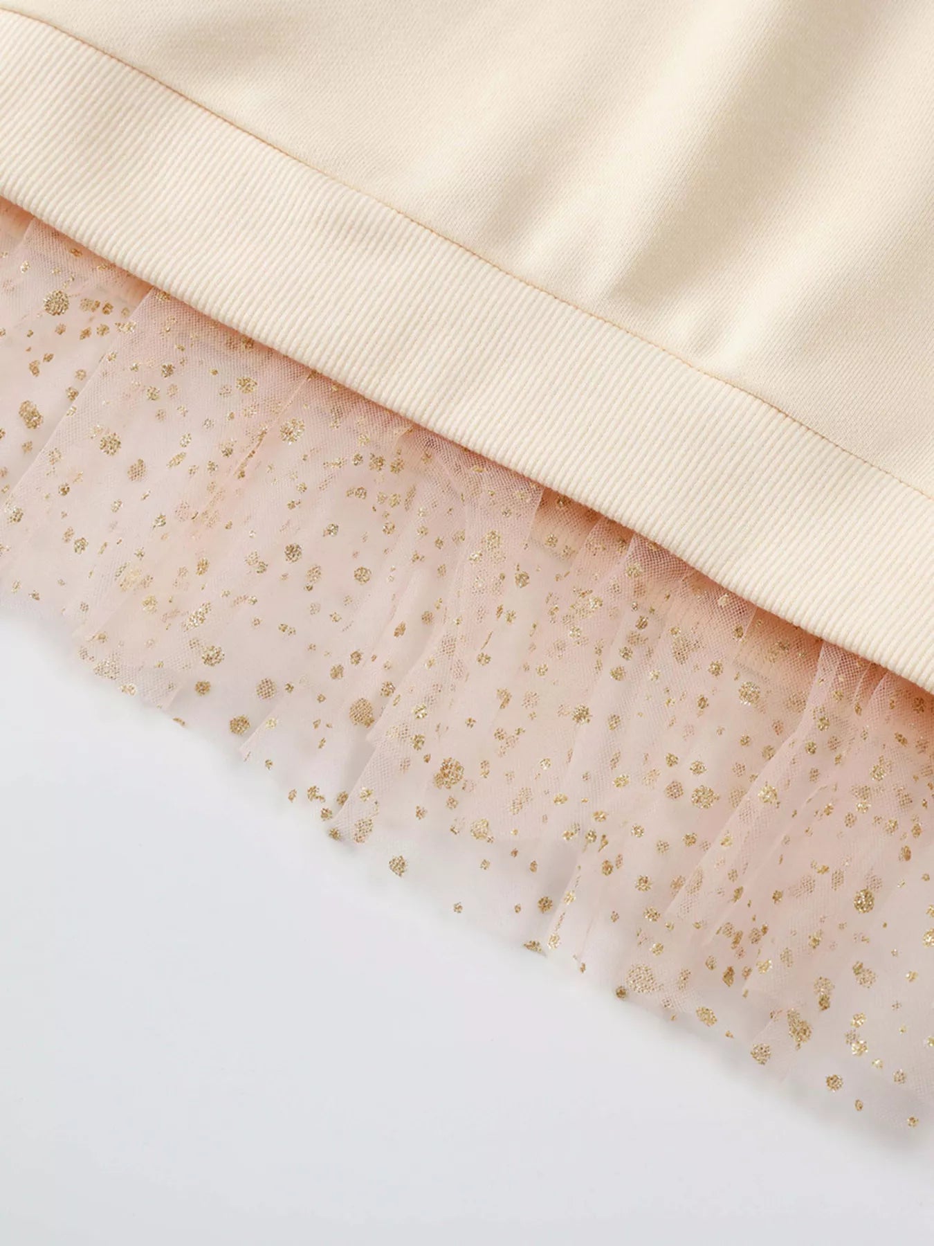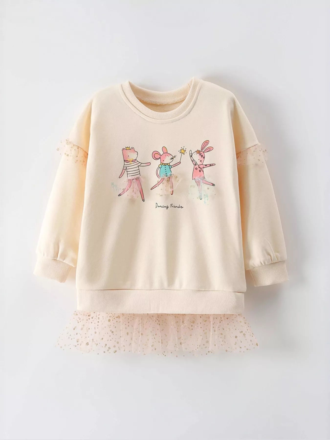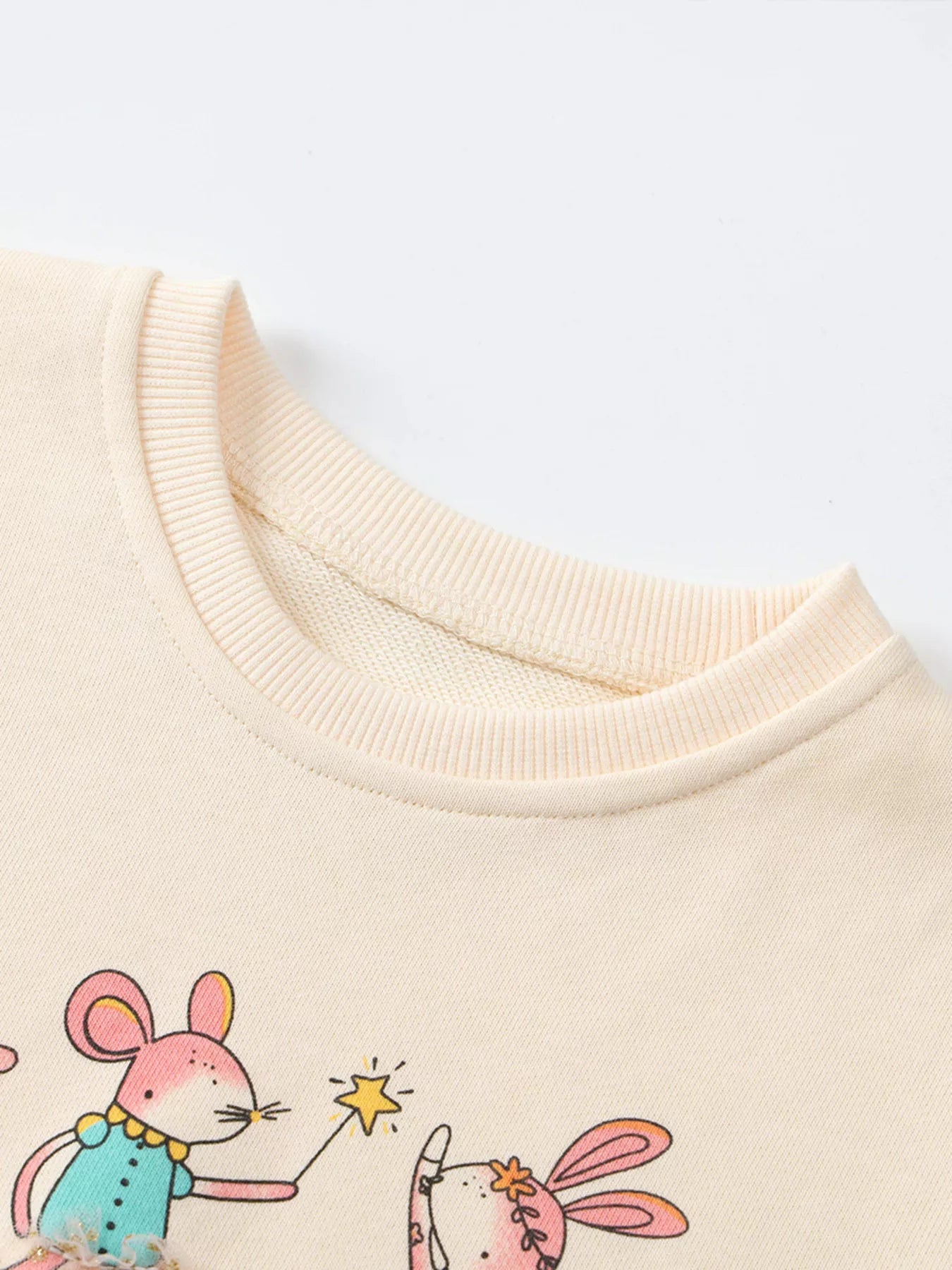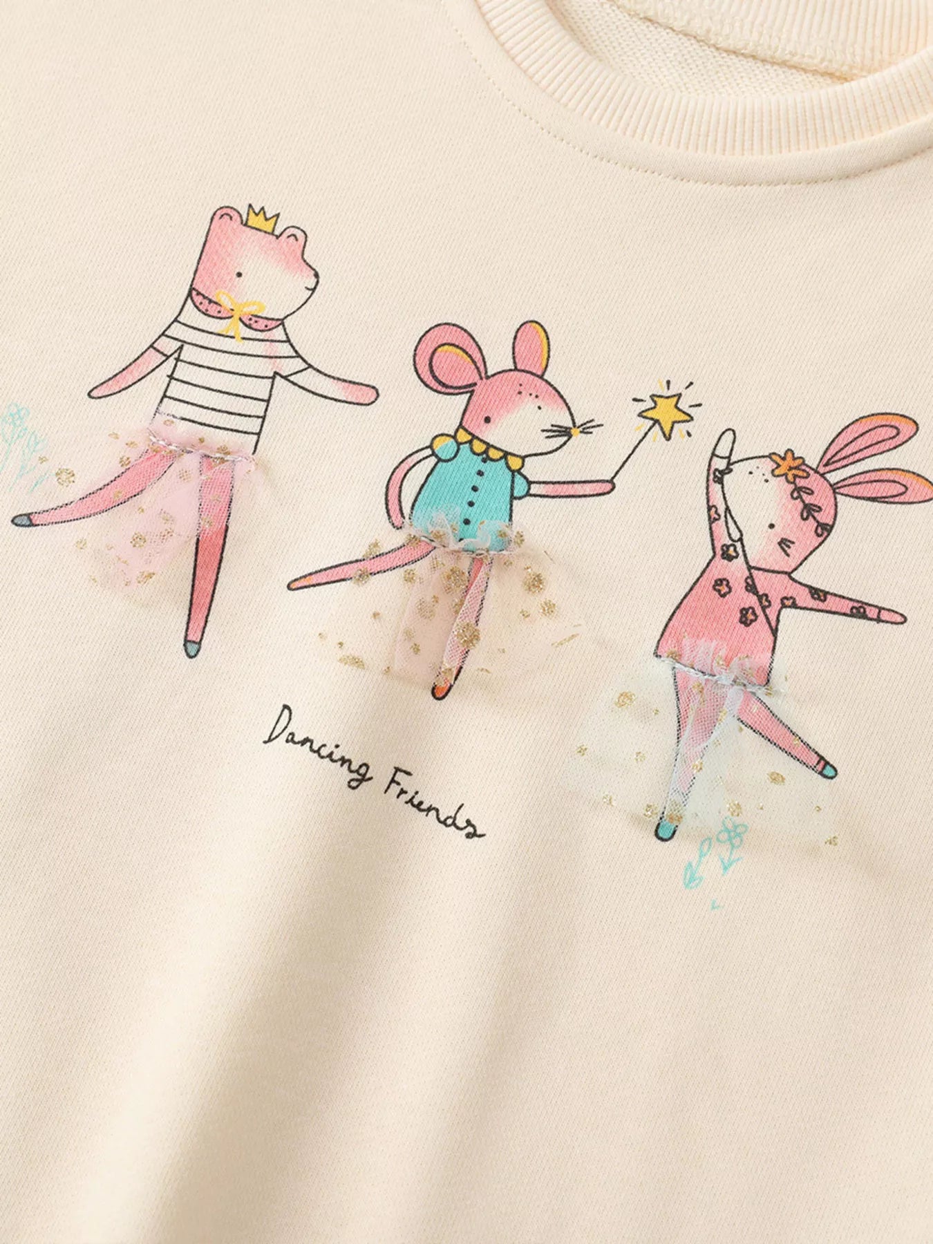 Children's Cartoon Animal Mesh Trim Sweatshirt