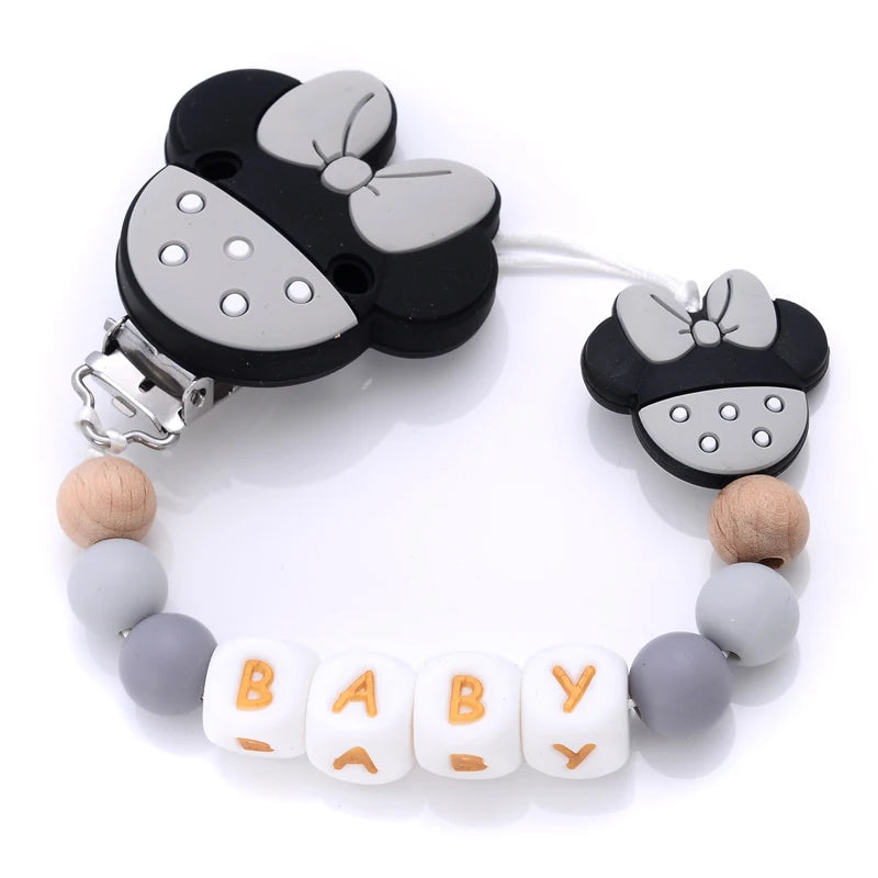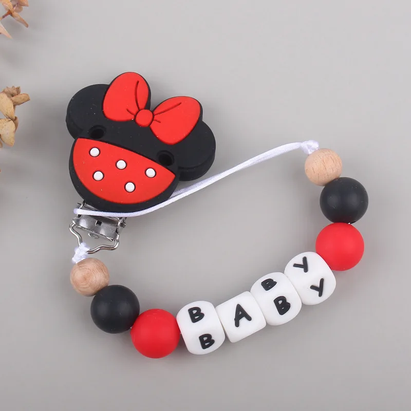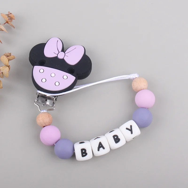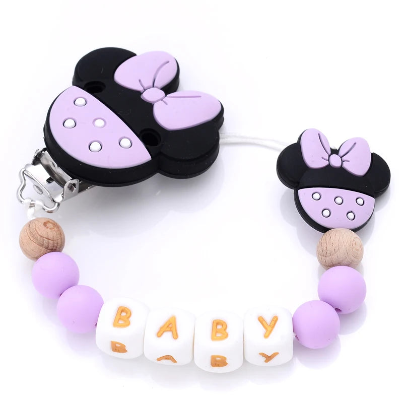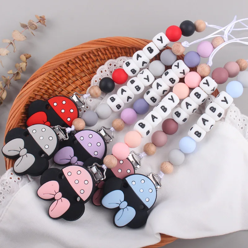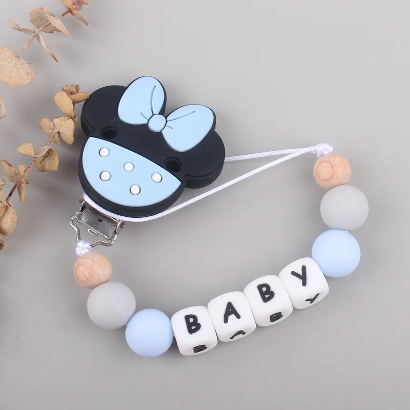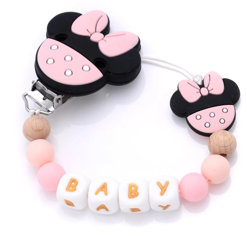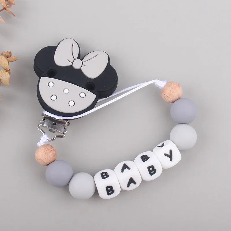 Custom Personalized Name Pacifier Chain English Letters Silicone Clips Mouse Teether Holder Soother Baby Teething Toy Chew Gift