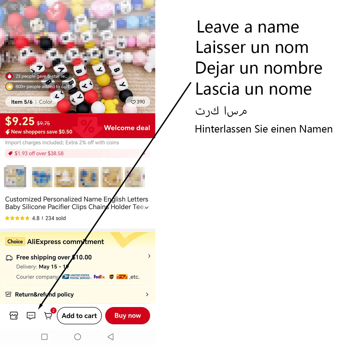 1.If you want to Personalized English Russian Silicone letters name, please leave your baby's name under the order.