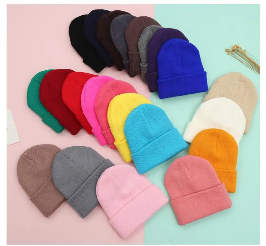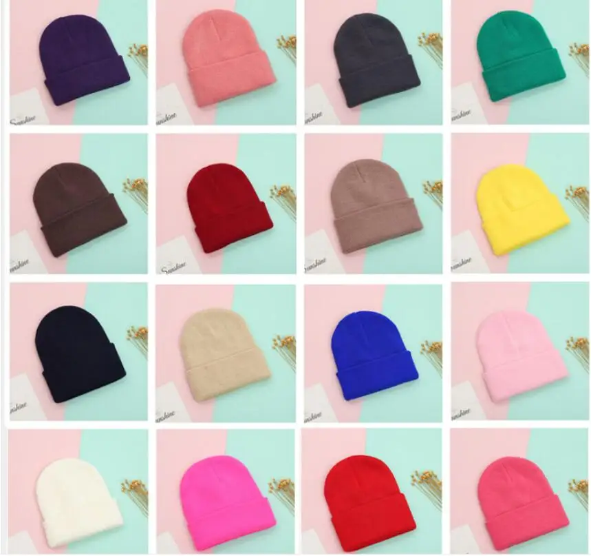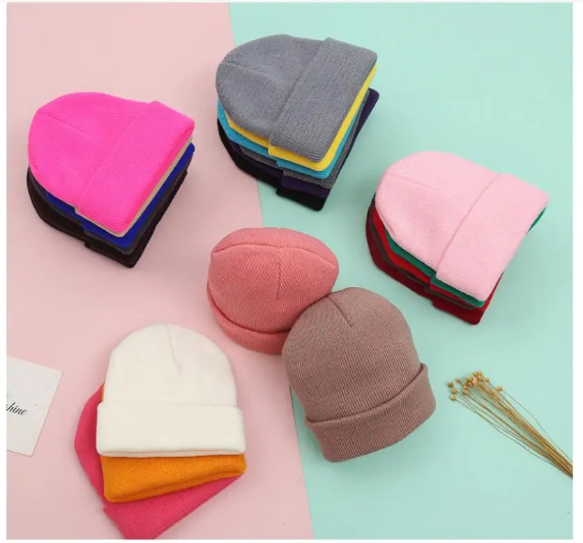 Dad Mother Kids Baby Hats for Girl Boy Newborn Beanie Infant Candy Color Winter Autumn Family Warm Knitted Parent Children Hat