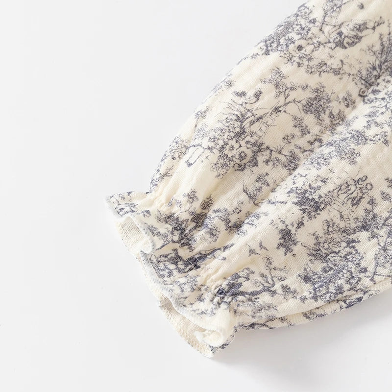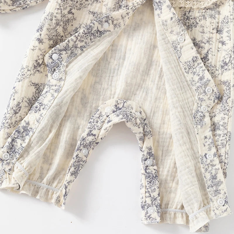 Ink Painting Newborn Baby Girl Jumpsuits Cotton Toddler Girls Onesie Clothes for Spring Autumn Infant Rompers +Hats
