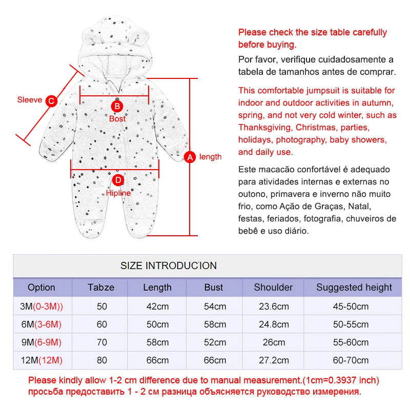 Ircomll Newborn Baby Rompers Spring Autumn Warm Fleece Cute Infant Costume Kids Playsuit Jumpsuits Baby Clothes 0-1Y Outwear