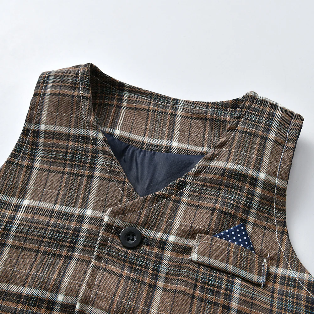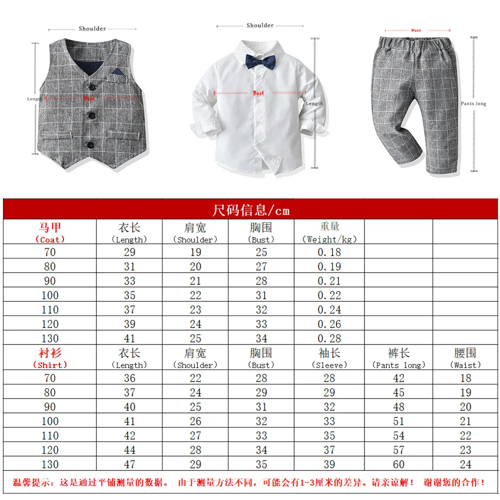 Korean Boy Autumn Plaid Vest+White Shirt+Trousers Suit Children Clothing Baby Boy 2-10 Years Old Suit Kids Boy Clothes 70-130cm