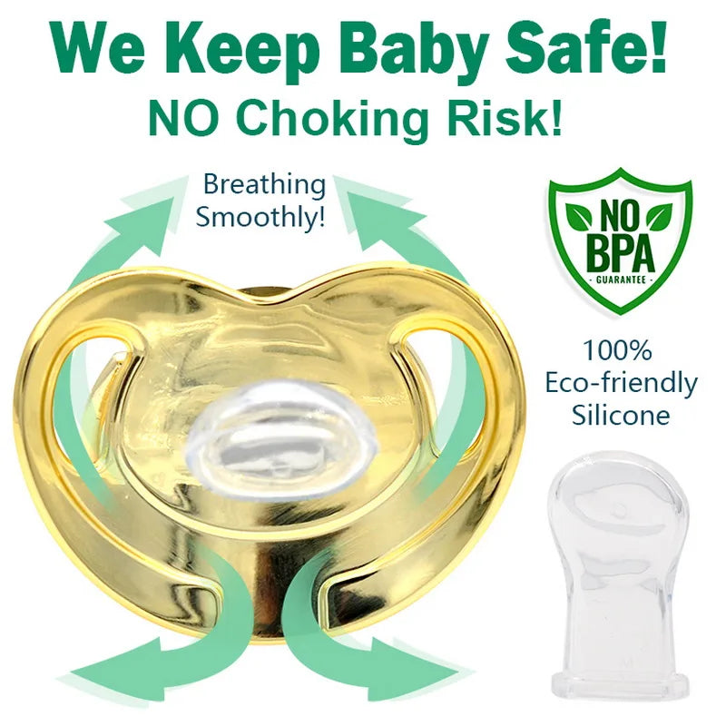 2. The super soft silicone pacifier is carefully designed to make your baby feel comfortable. The outward curve keeps the nipple away from the delicate skin, while features such as air holes and safety handles ensure that your baby stays safe. Odor free silicone, free of BPA, PVC and phthalates.
