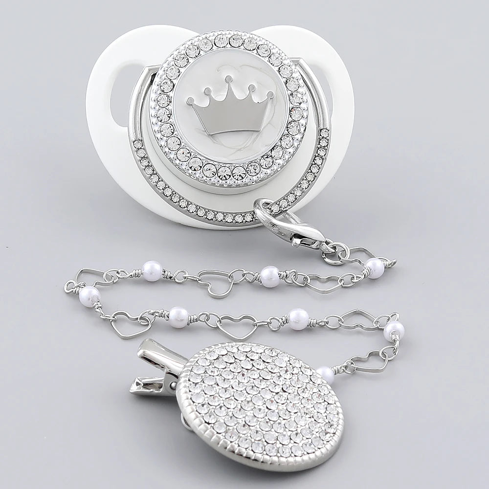 Luxury Baby Corwn Pacifier Gold With Clips Hot Sell BPA Free Silicone Infant White Pacifier For Baby Shower Gift Chupetes