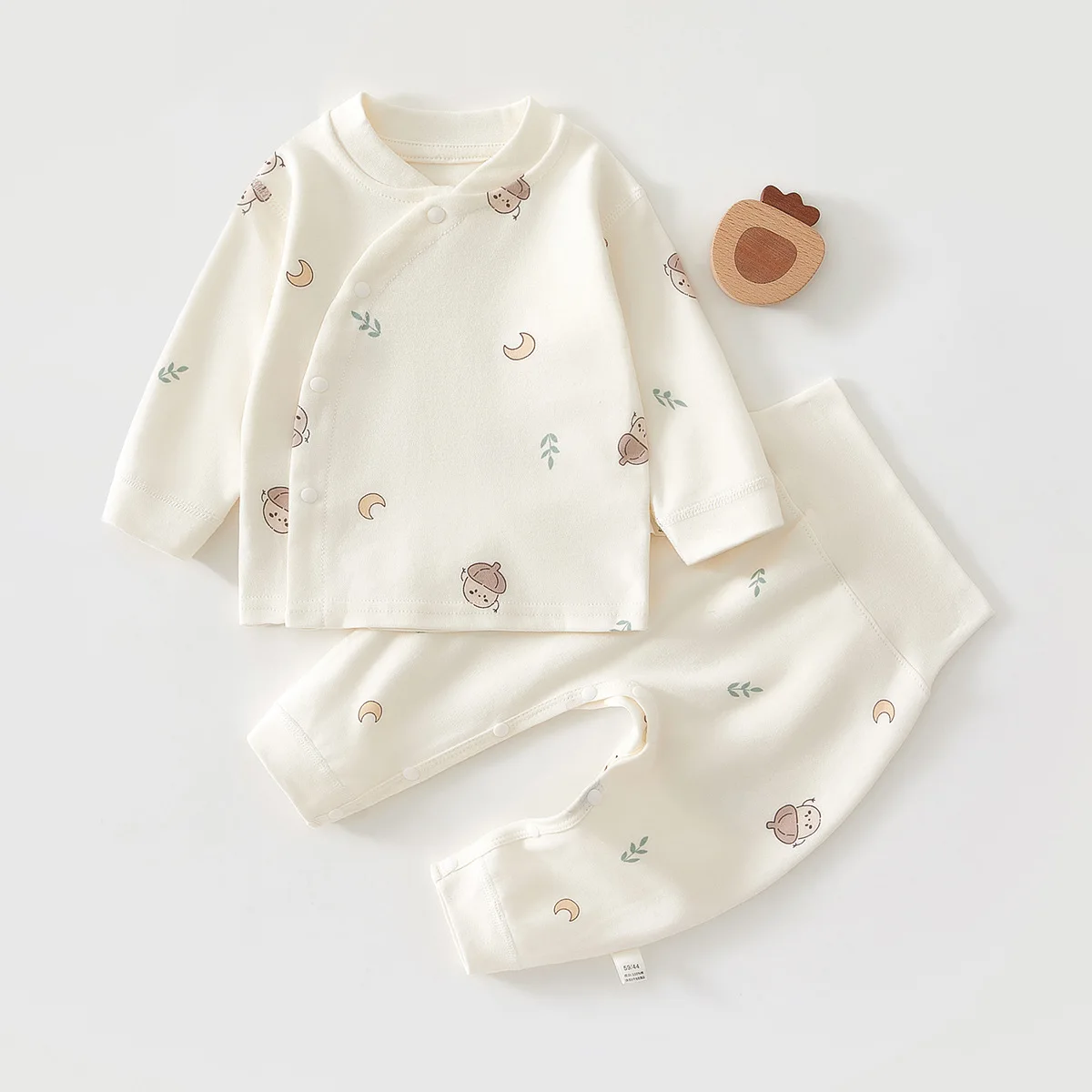 Newborn Baby Base Shirt+pants 2-piece Set Autumn and Winter Cartoon Pure Cotton Top+pants 0-18M Newborn Baby Pajamas