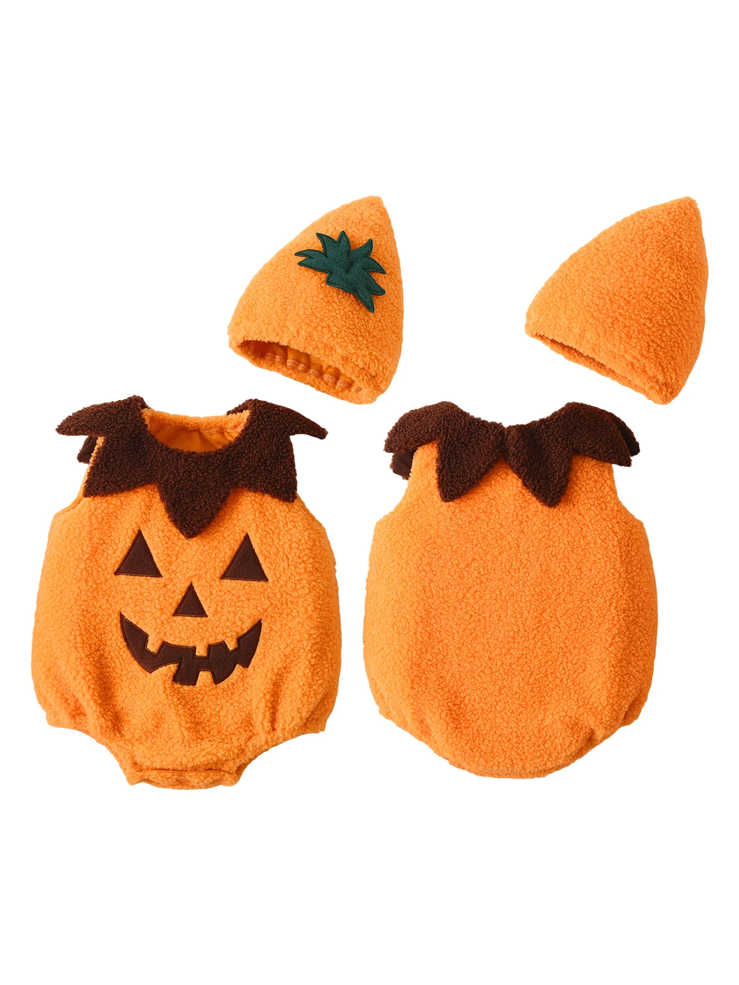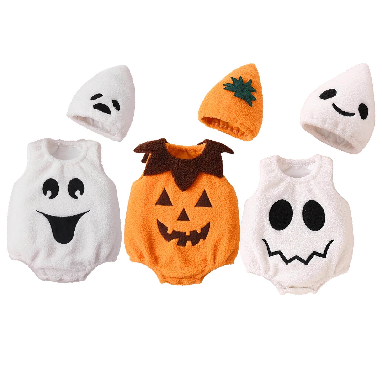 Newborn Baby Boy Girl Halloween Costume Pumpkin Ghost Face Embroidery Romper Hat Infant Halloween Pumpkin Photography Clothes