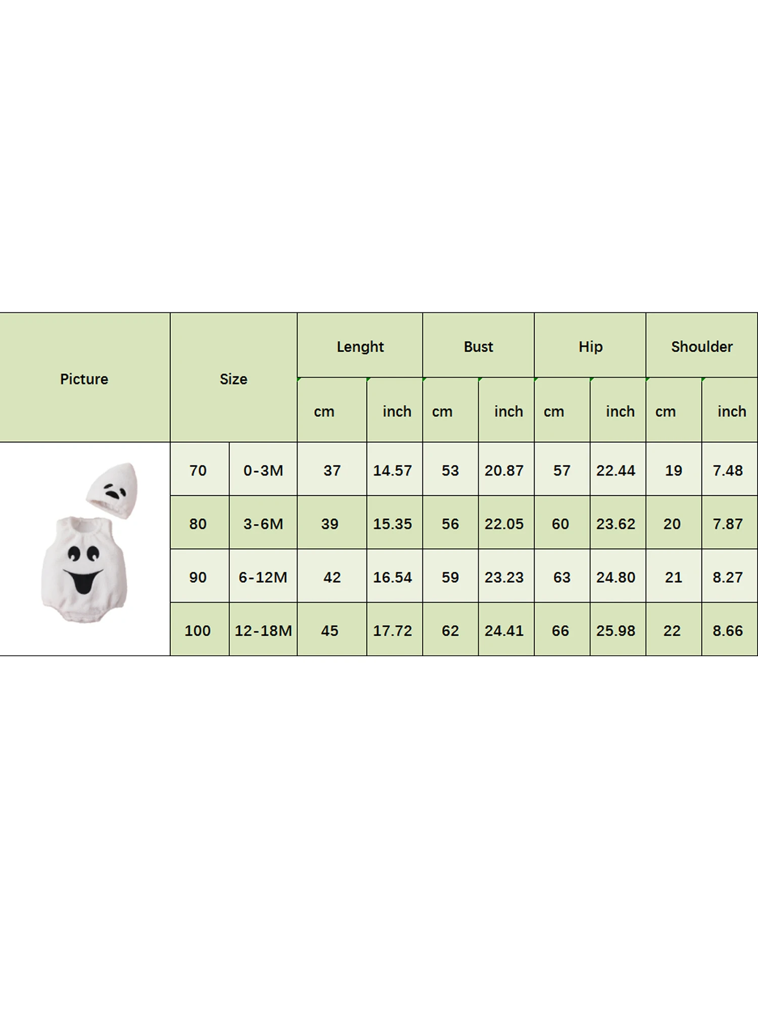 3-6M Length: 15.35 Bust: 22.05 Shoulder: 7.87 Hip: 23.62 Suggest Age: 3-6 Months
