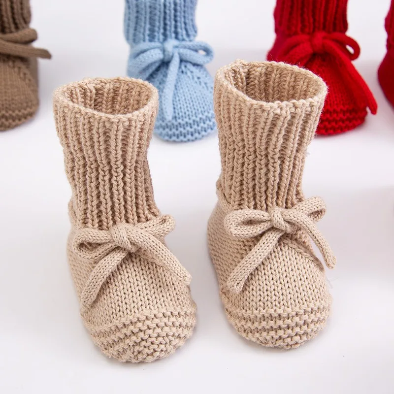 Newborn Baby Cute Bow Tie Knitted Walking Shoes Autumn Winter New Baby Soft Knitted Woolen Floor Crawling Socks for 0-12Months