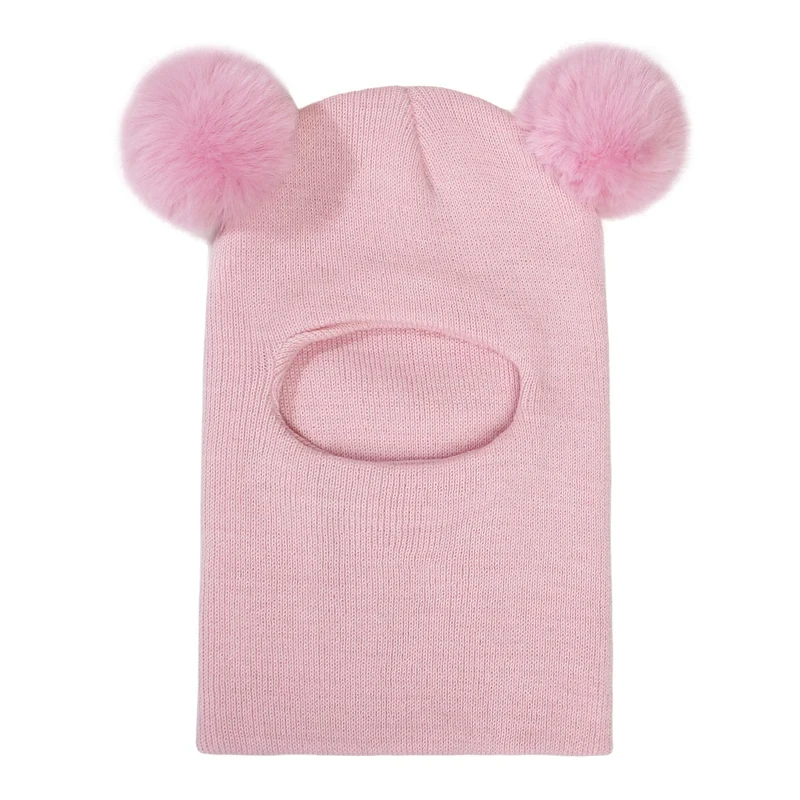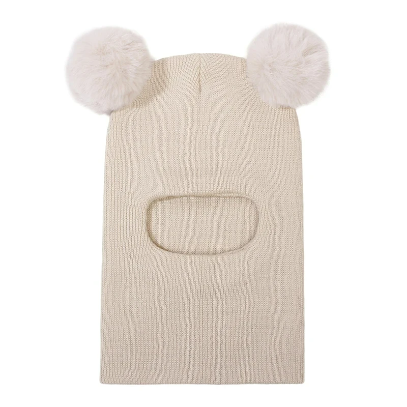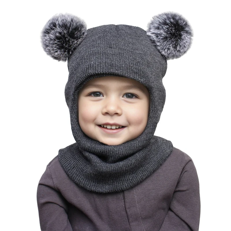 One-Piece Baby Hat Scarf for Boys Cute Pompom Kids Knitted Beanie Winter Infant Girls Cap Ears Neck Warm Protection Bonnet 1-5Y