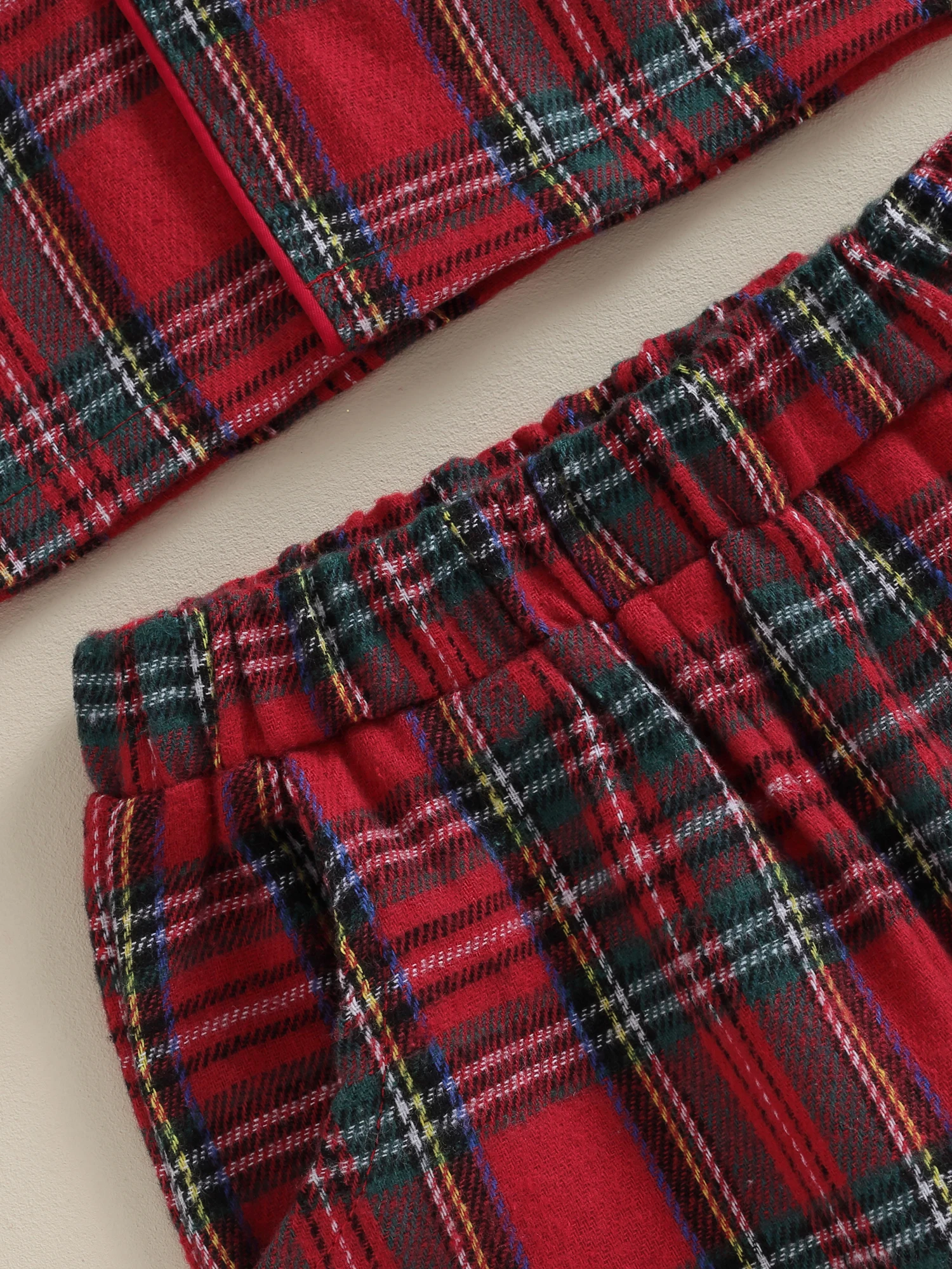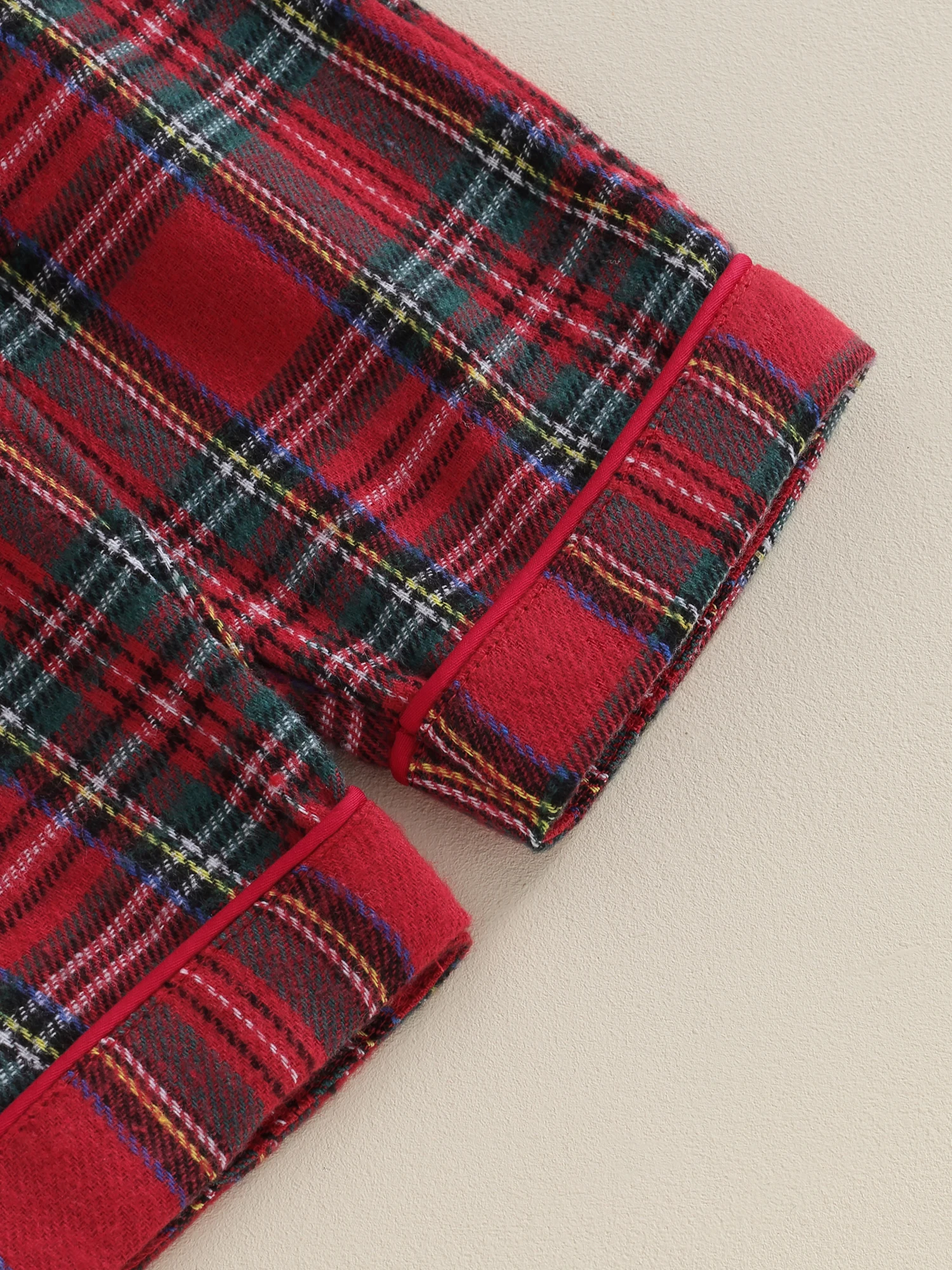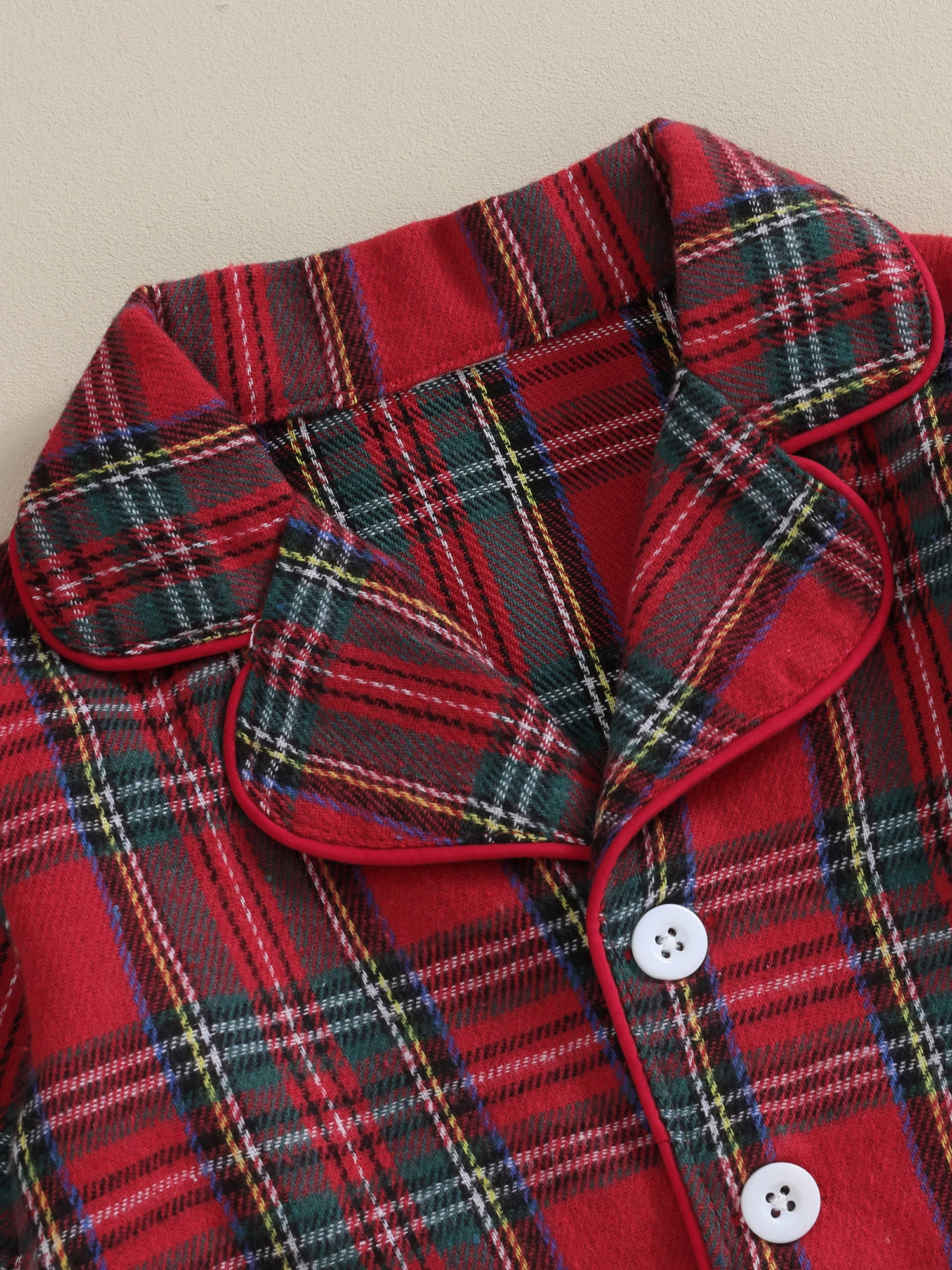 Christmas pajamas for kids, plaid print, unisex design, very cute. Baby pajama top features long sleeves, button closure and lapel collar for easy on and off. The elastic waist of the pants ensures a snug fit, making it a cute and comfy sleepwear.