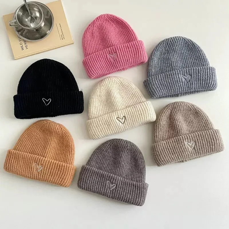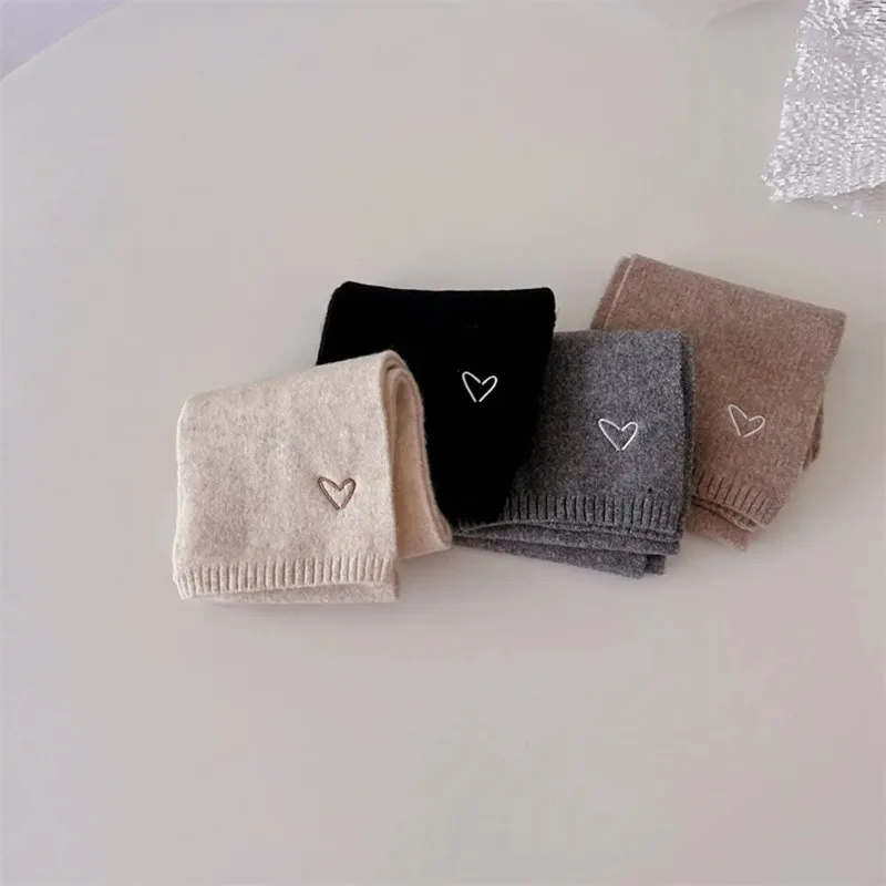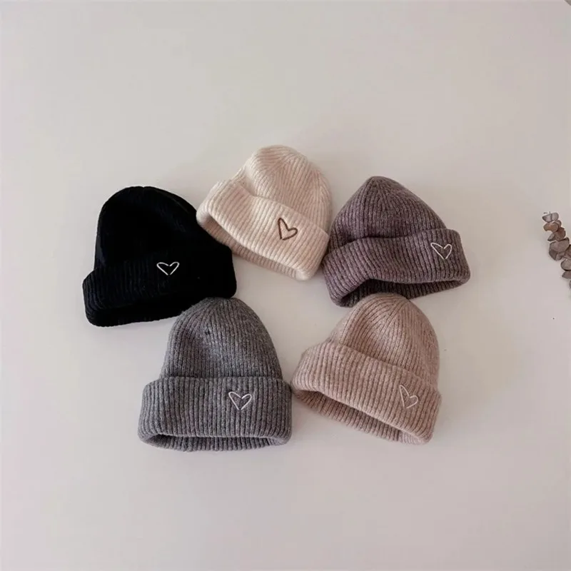 Solid Color Kids Knitted Hat Scarf Love Heart Embroidery Autumn Winter Warm Baby Beanie Outdoor Anti-cold Boys Girls Cap Scarves